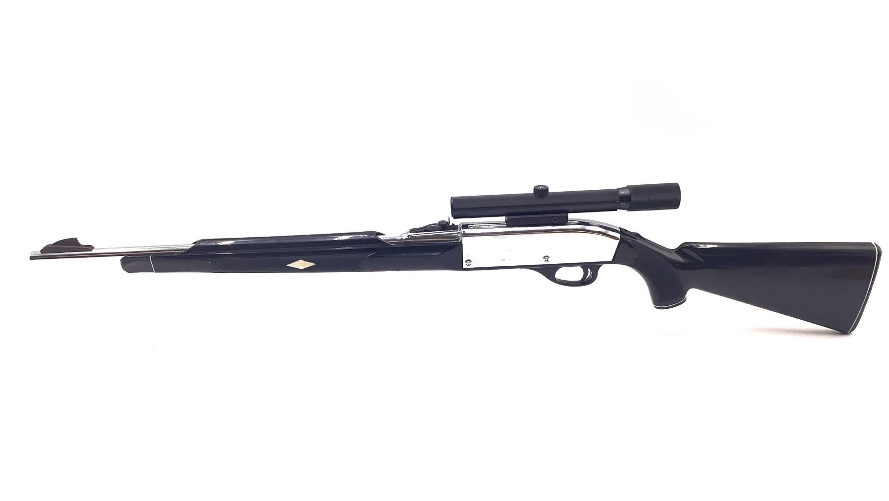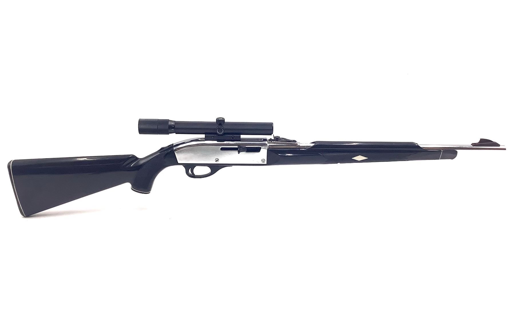 Remington Nylon 66 22 LR Semi Auto Rifle, Stainless/ Black with Bushnell Scopechief 3-8 X Scope, 14 Round Tubular Magazine. Very good condition. This is a non restricted firearm.