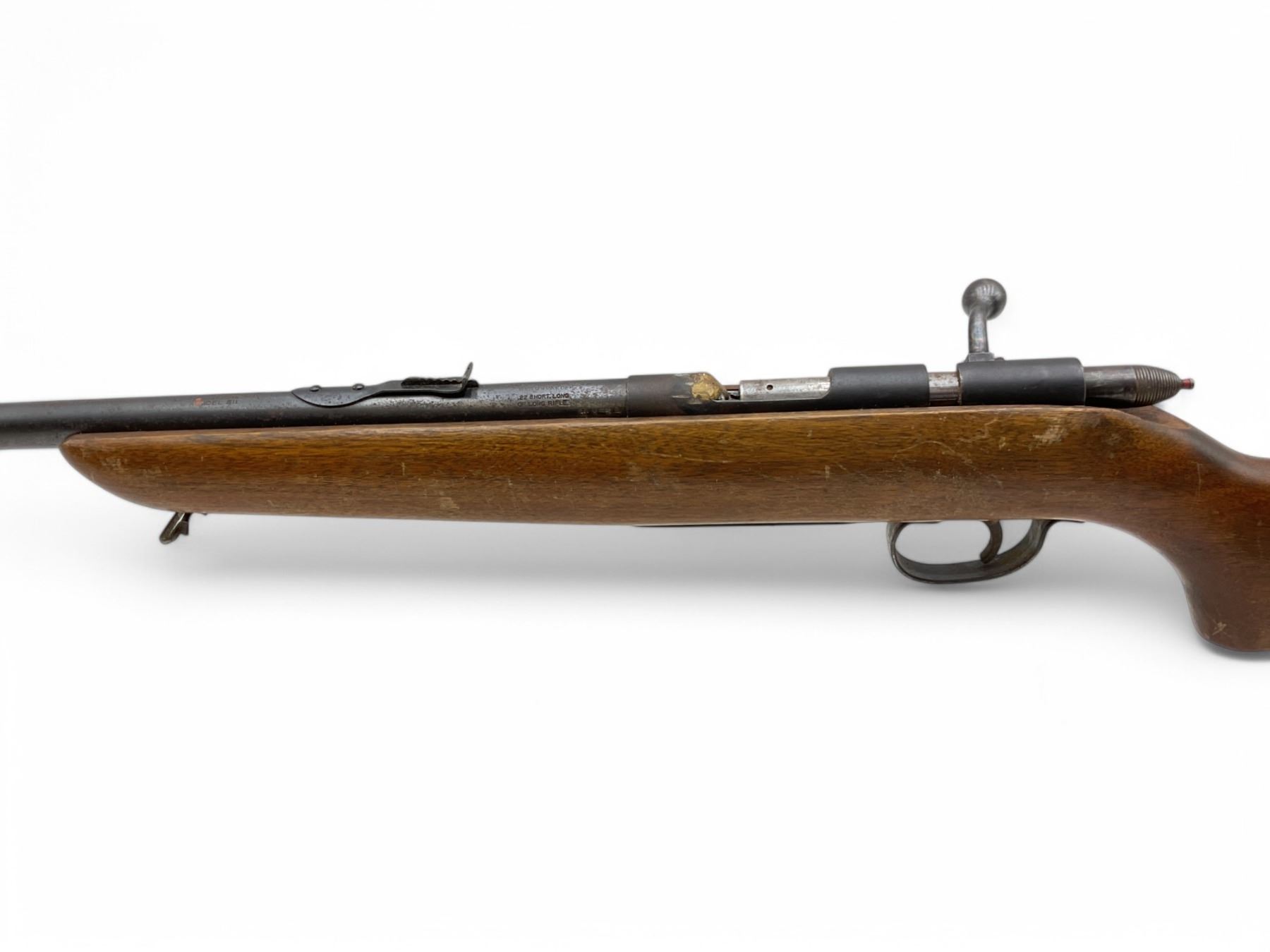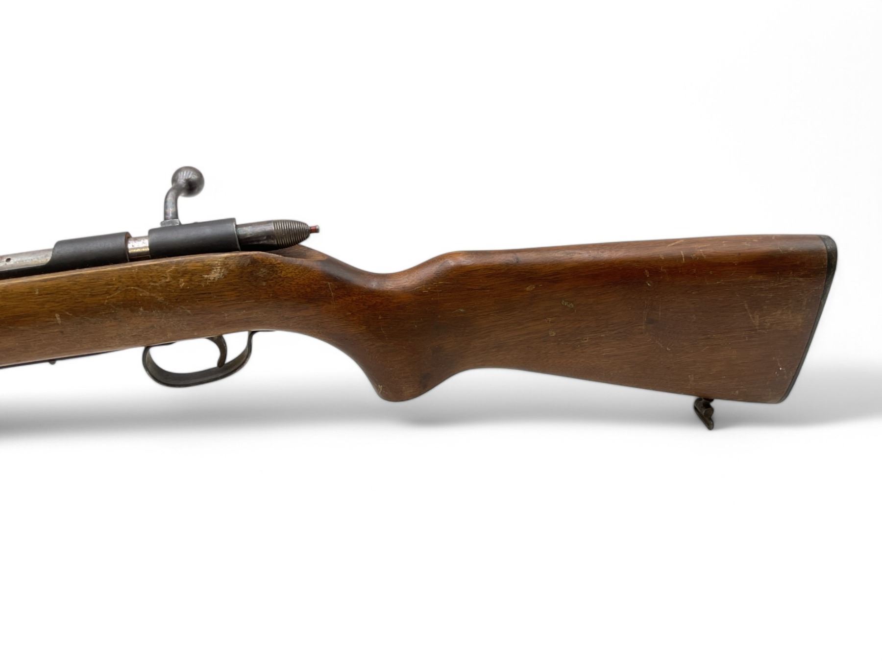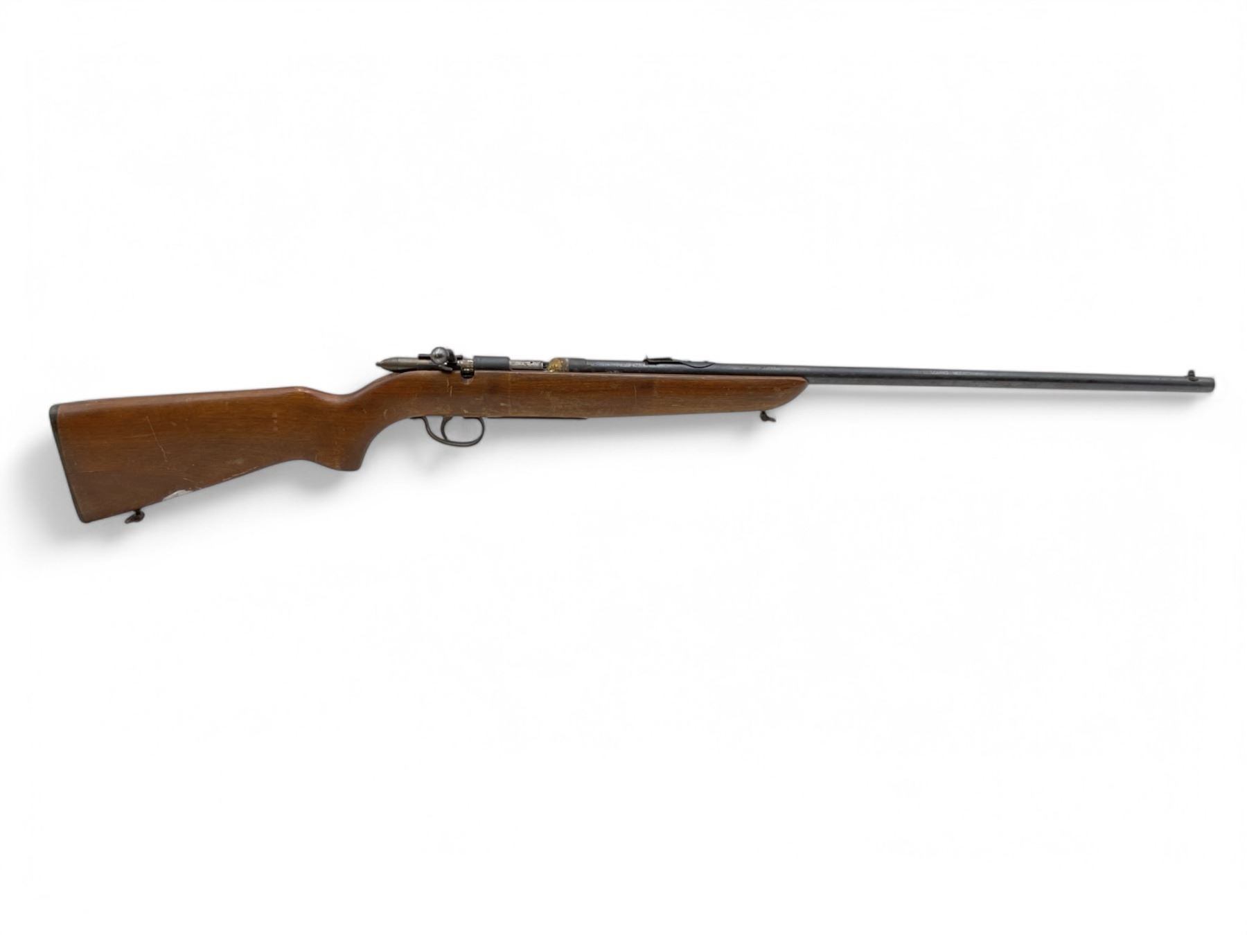 Remington Scoremaster Model 511 Bolt Action Rifle 22S/L/LR 25" Plugged Barrel Wood Stock. Barrel has been plugged and soldered shut at breech; bolt will not close. No magazine included. Fixed front sight, adjustable rear sight. This is a non-restricted firearm.