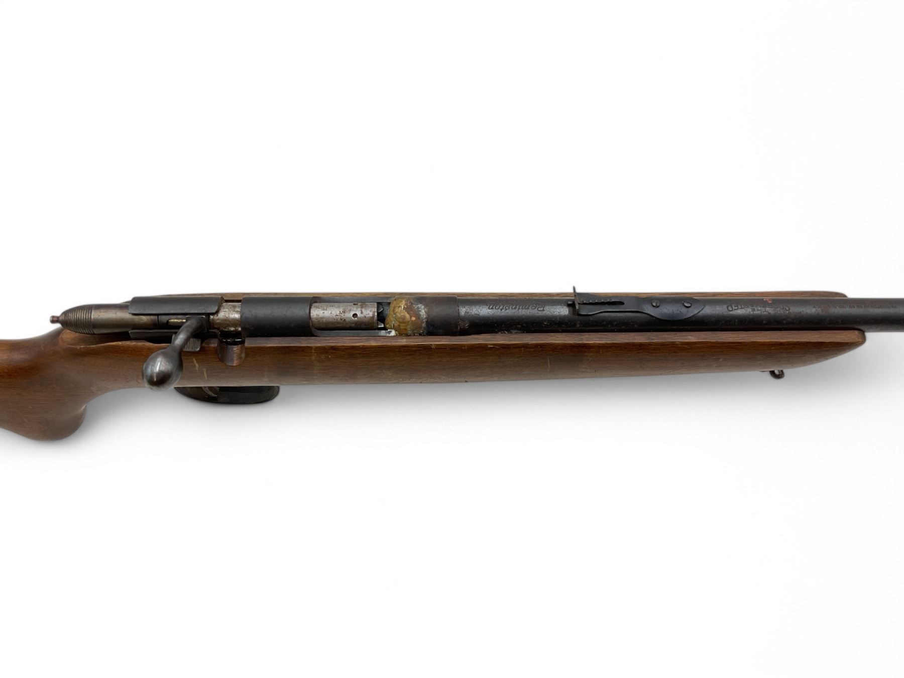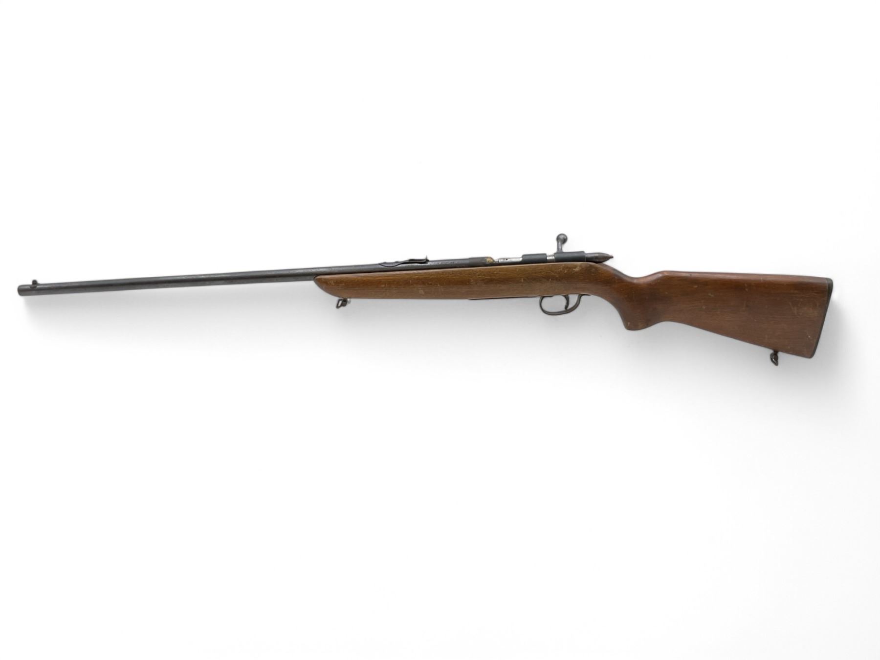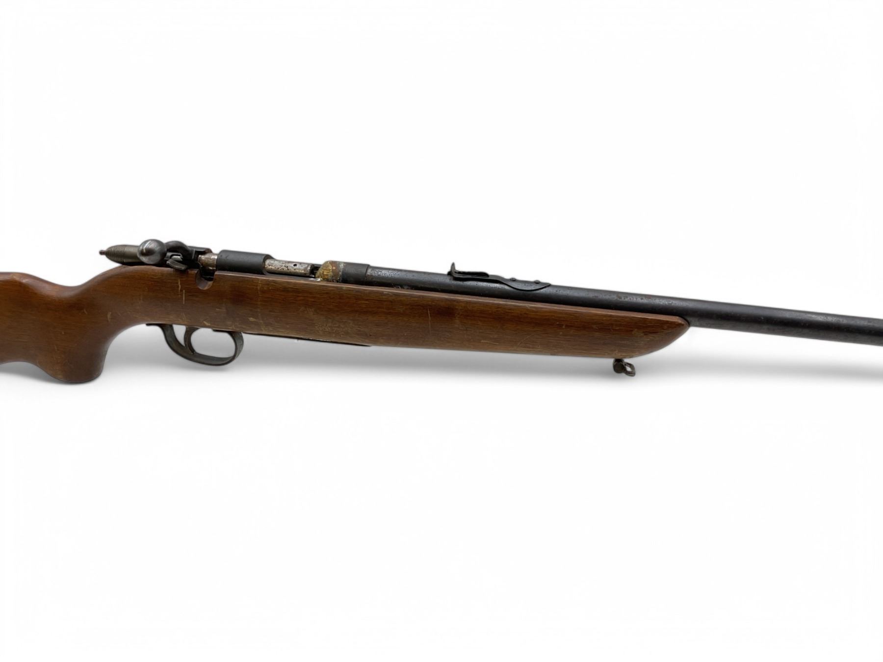 Remington Scoremaster Model 511 Bolt Action Rifle 22S/L/LR 25" Plugged Barrel Wood Stock. Barrel has been plugged and soldered shut at breech; bolt will not close. No magazine included. Fixed front sight, adjustable rear sight. This is a non-restricted firearm.