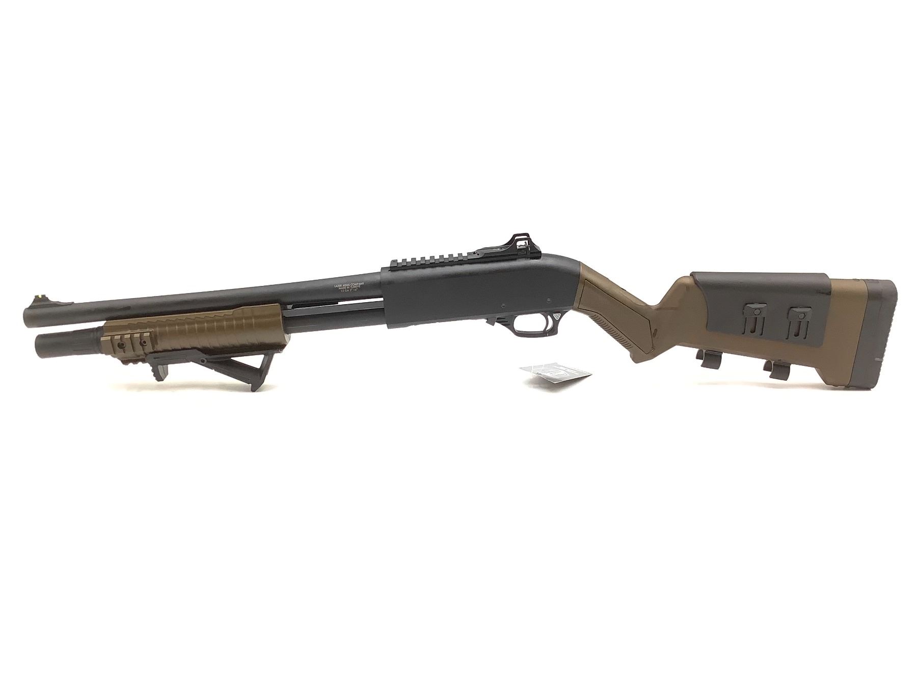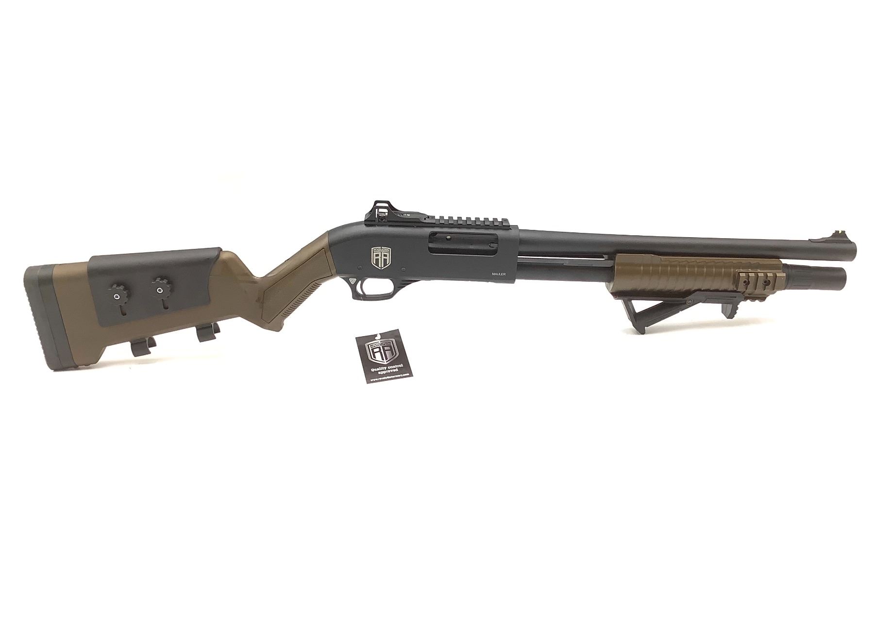 Revolution Armory Mauler Pump Action Shotgun 12Ga 3" Chamber 16" Barrel Bronze Stock, New. Adjustable cheek riser, rail on receiver with rear sight. Front fiber optic sight. Interchangeable chokes; includes pistol grip and angled forend grip. This is a non-restricted firearm.