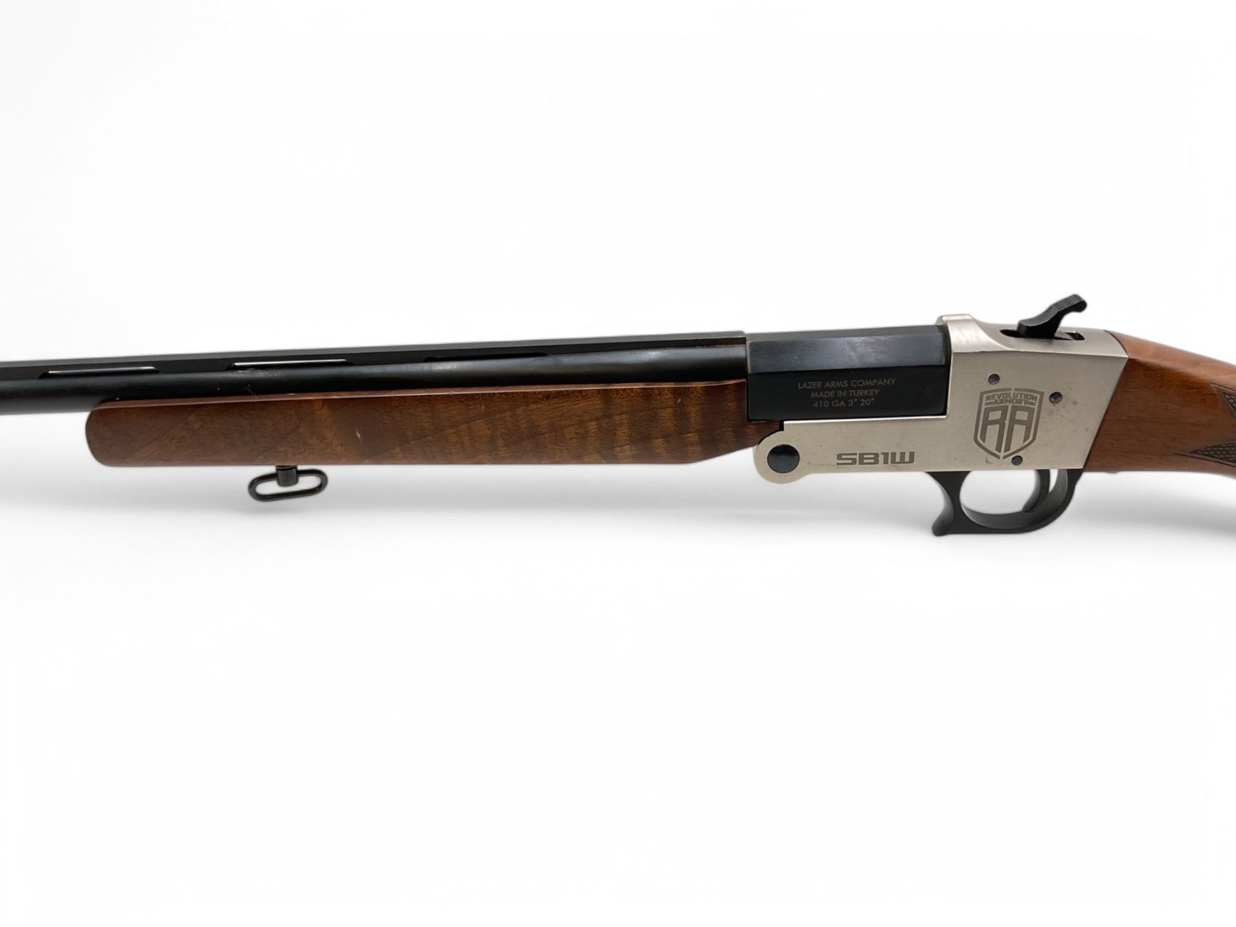 Revolution Armory SB1W Single Shot .410 Shotgun 3" Chamber 22" Vent Rib Barrel Wood Stock. Bead sight, comes with a removable choke. This is a non-restricted firearm.