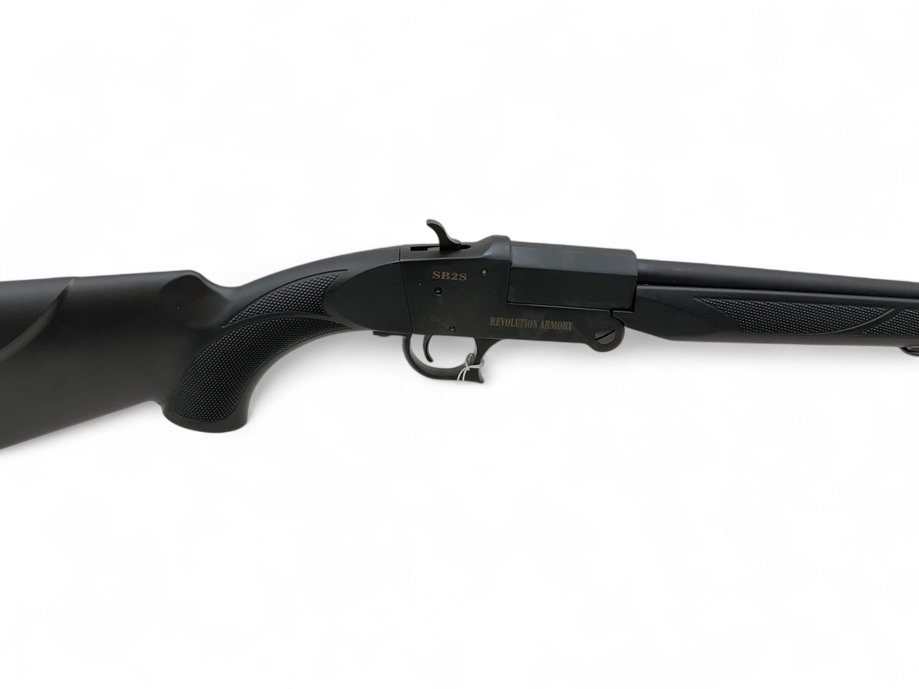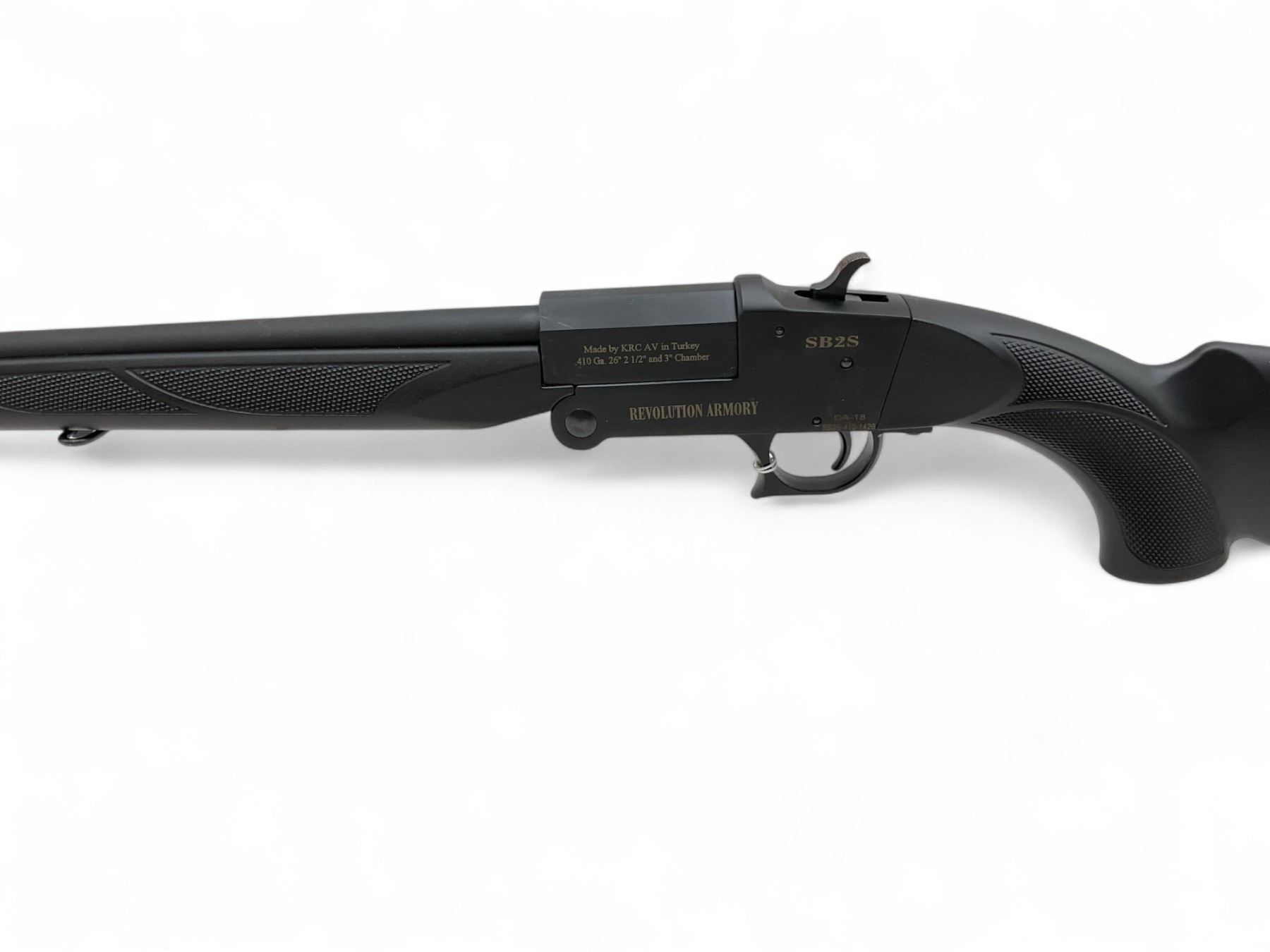 Revolution Armory SB2S Single Shot .410 Shotgun 3" Chamber 20.75" Barrel Black Synthetic Stock. Barrel has been shortened by hand. No choke, no sight. This is a non-restricted firearm.