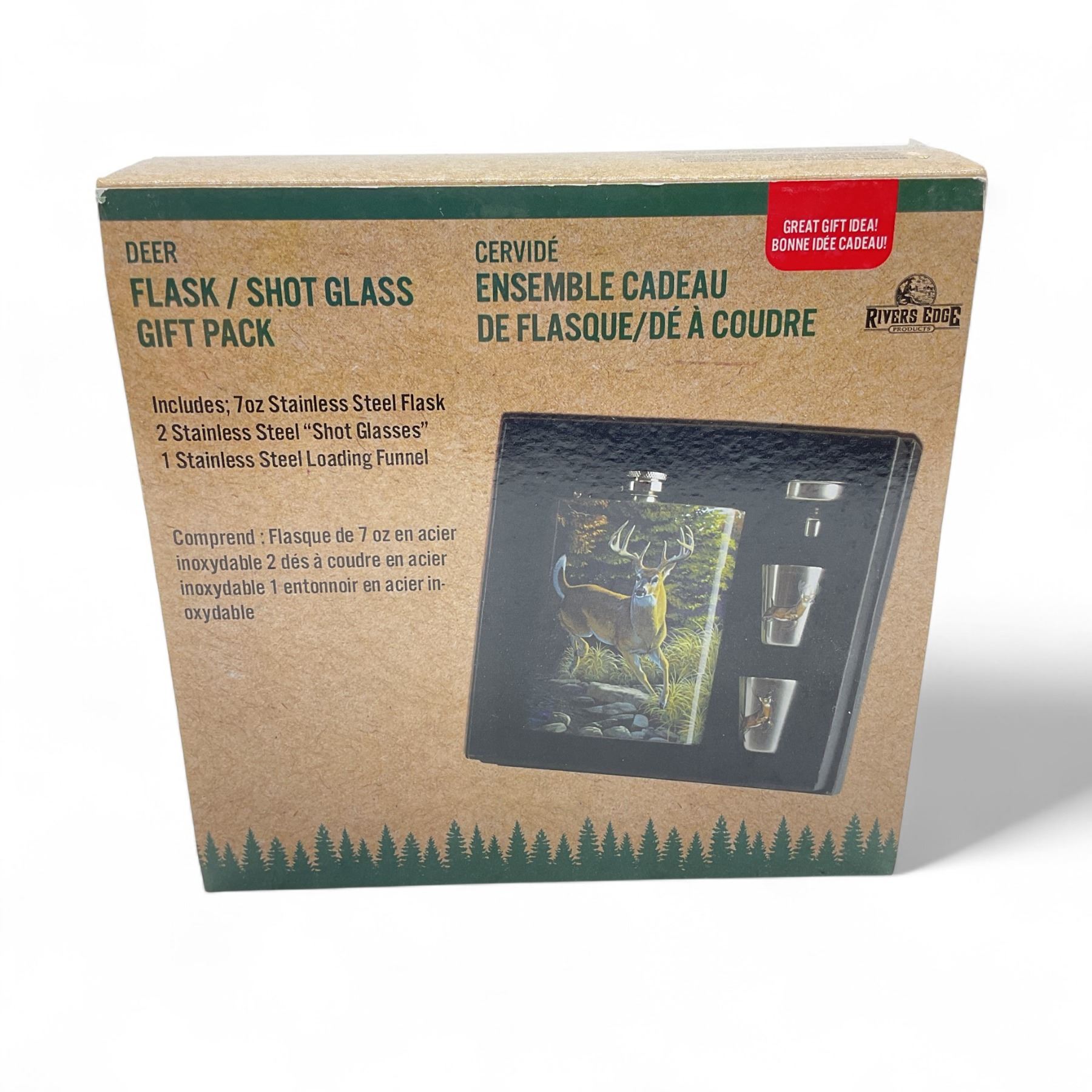 River's Edge Deer Flask/ Shot Glass Gift Pack, New