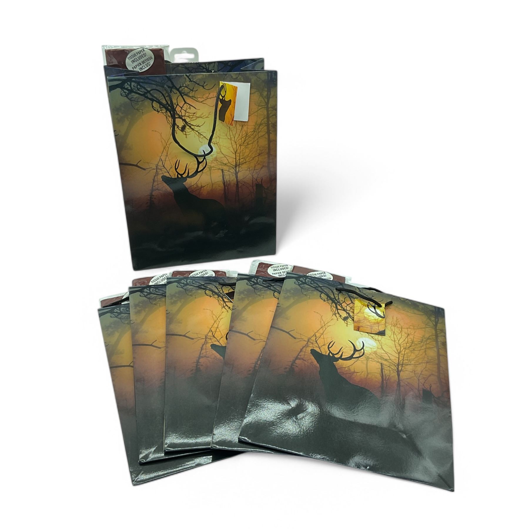 River's Edge Deer Silhouette Gift Bags with Tissue Paper, 13" X 10" 6 Qty