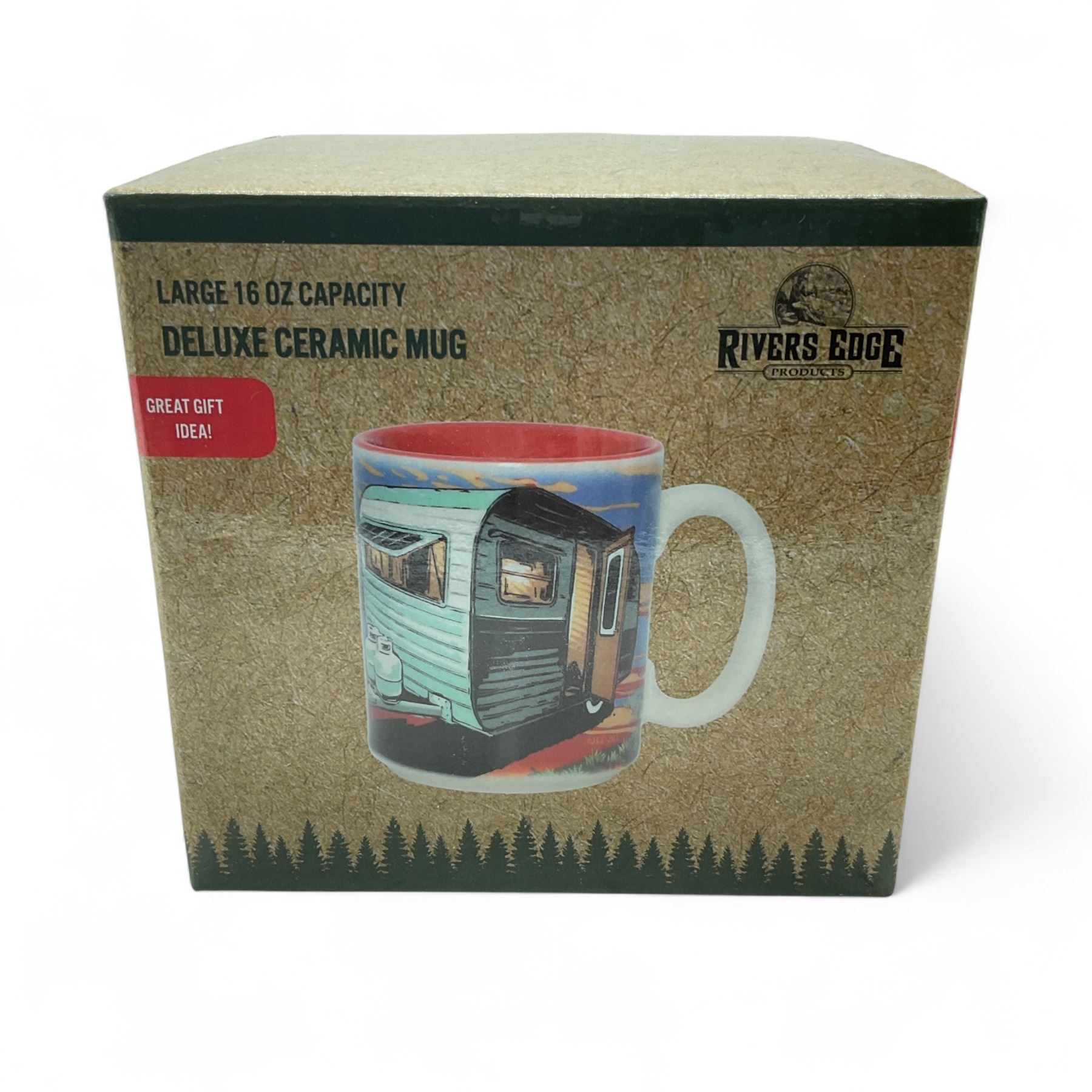 River's Edge Deluxe Ceramic 'Camper' 16 Oz Mug, New