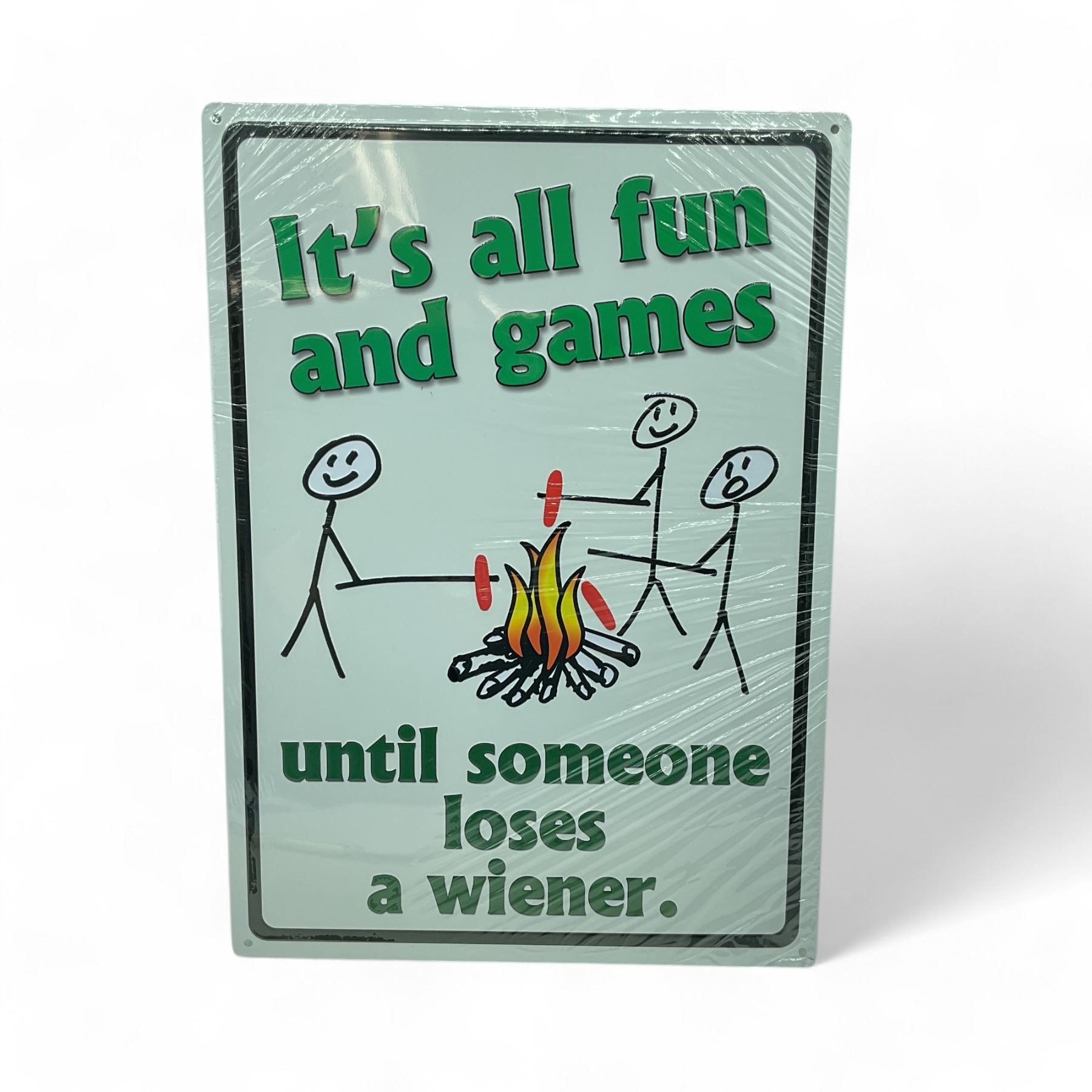 River's Edge Metal 17" X 12" Sign, 'It's All Fun and Games', New