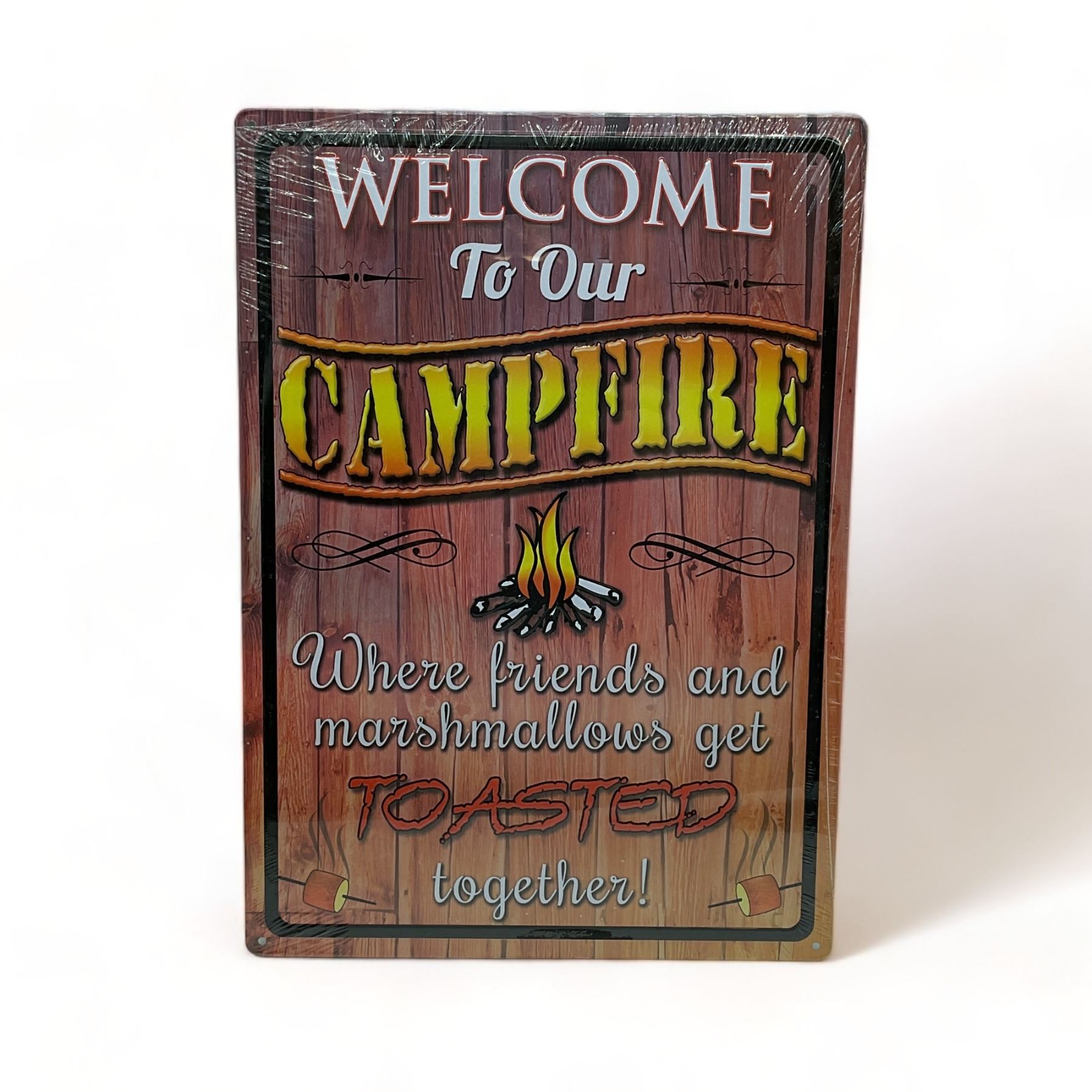River's Edge 'Welcome to Our Campfire' 17" x 12" Metal Sign, New