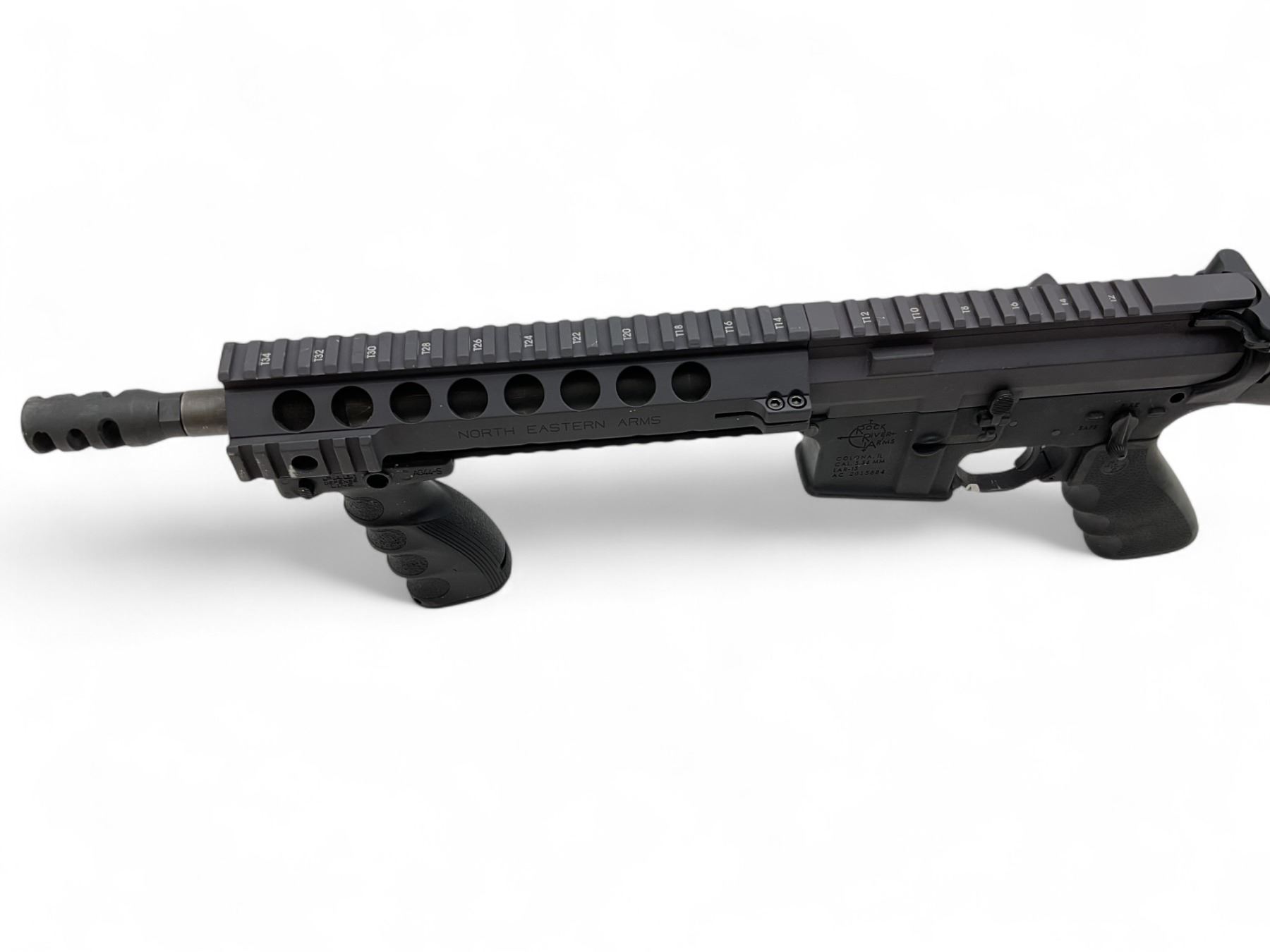 Rock River Arms LAR-15 Semi Auto Rifle With NEA Upper .223 Rem 10" Threaded Barrel Fixed Stock, Prohibited. No magazine included. Missing bolt carrier group. Includes Fab Defense Vertical grip.