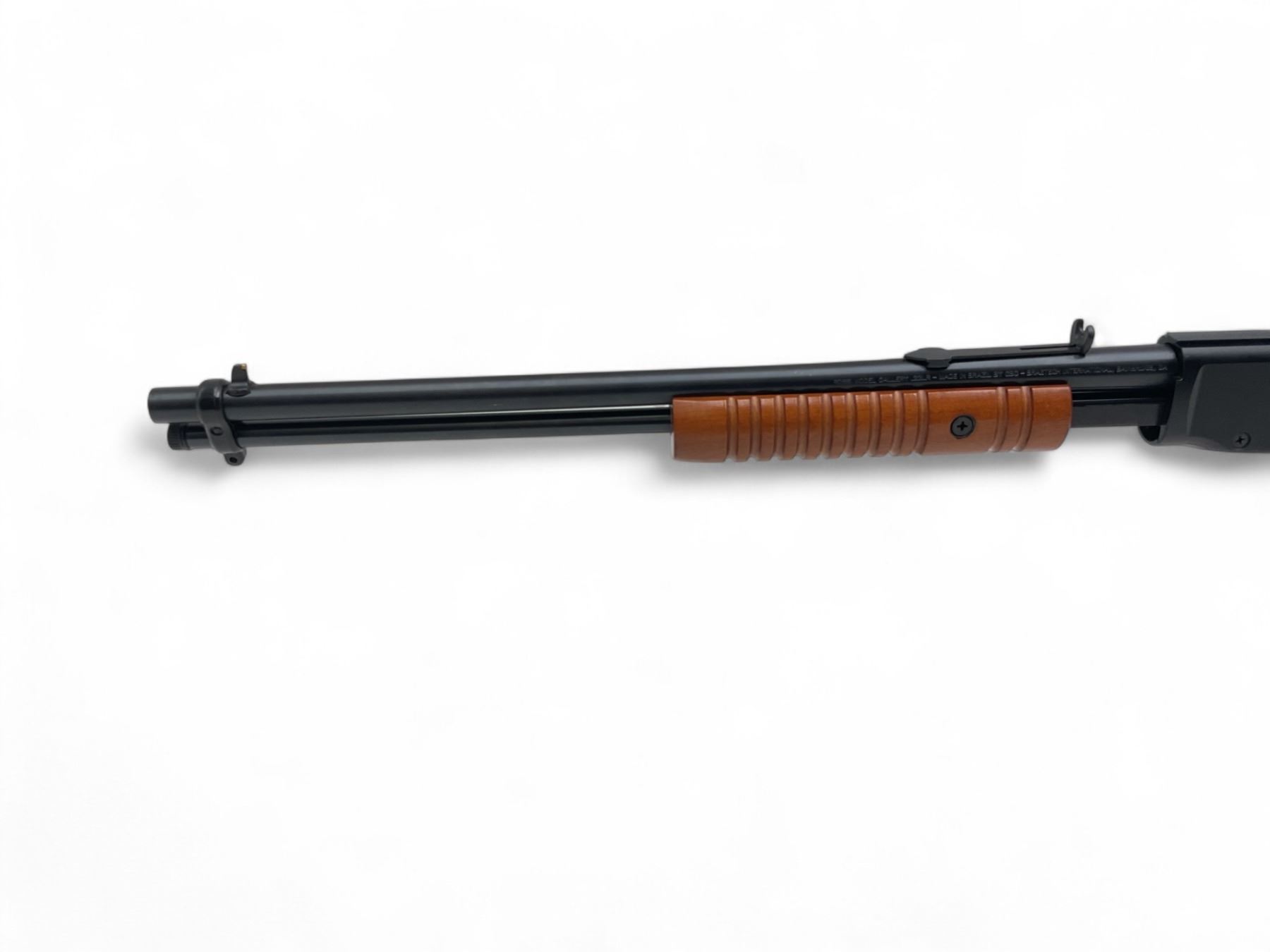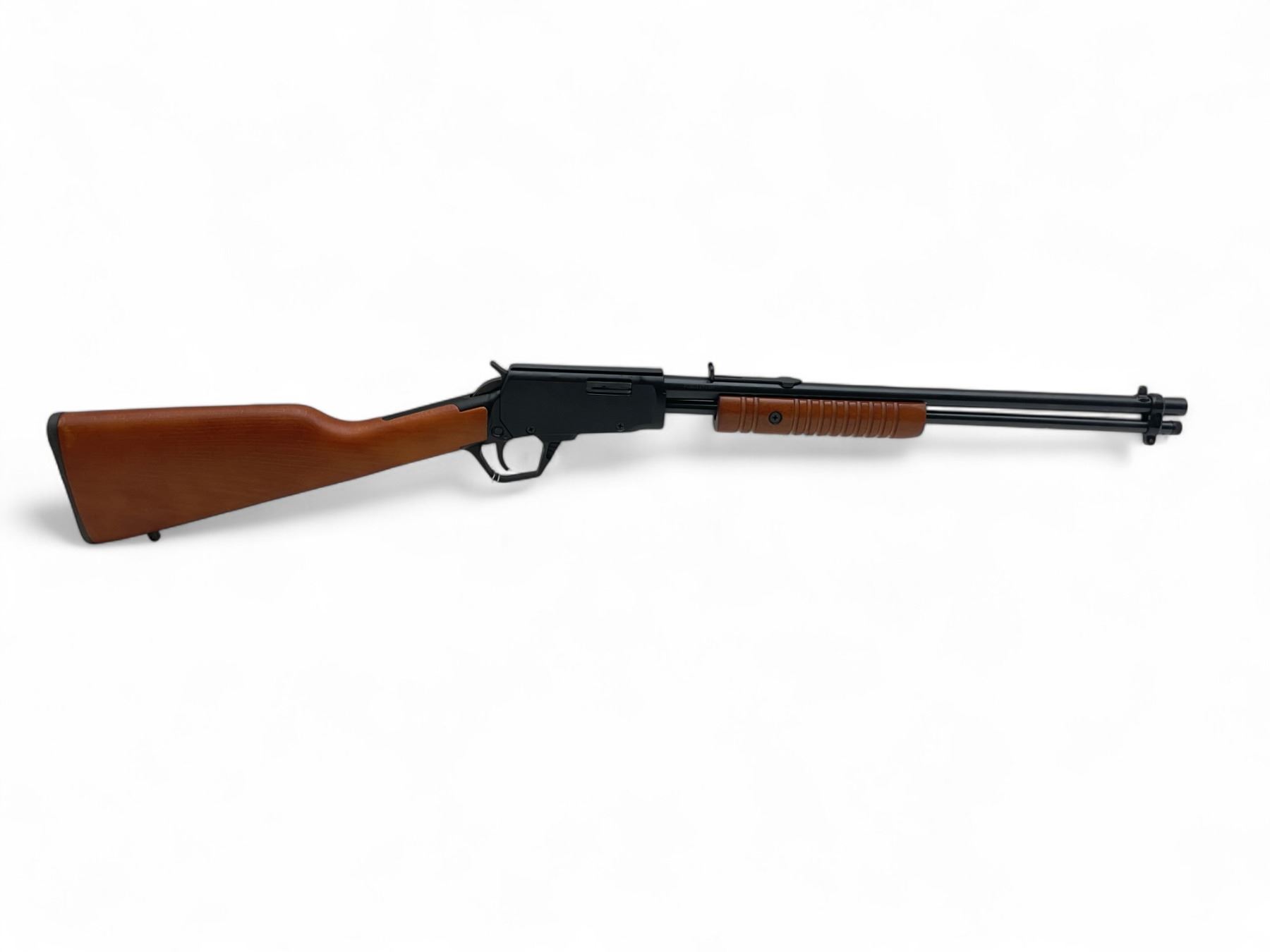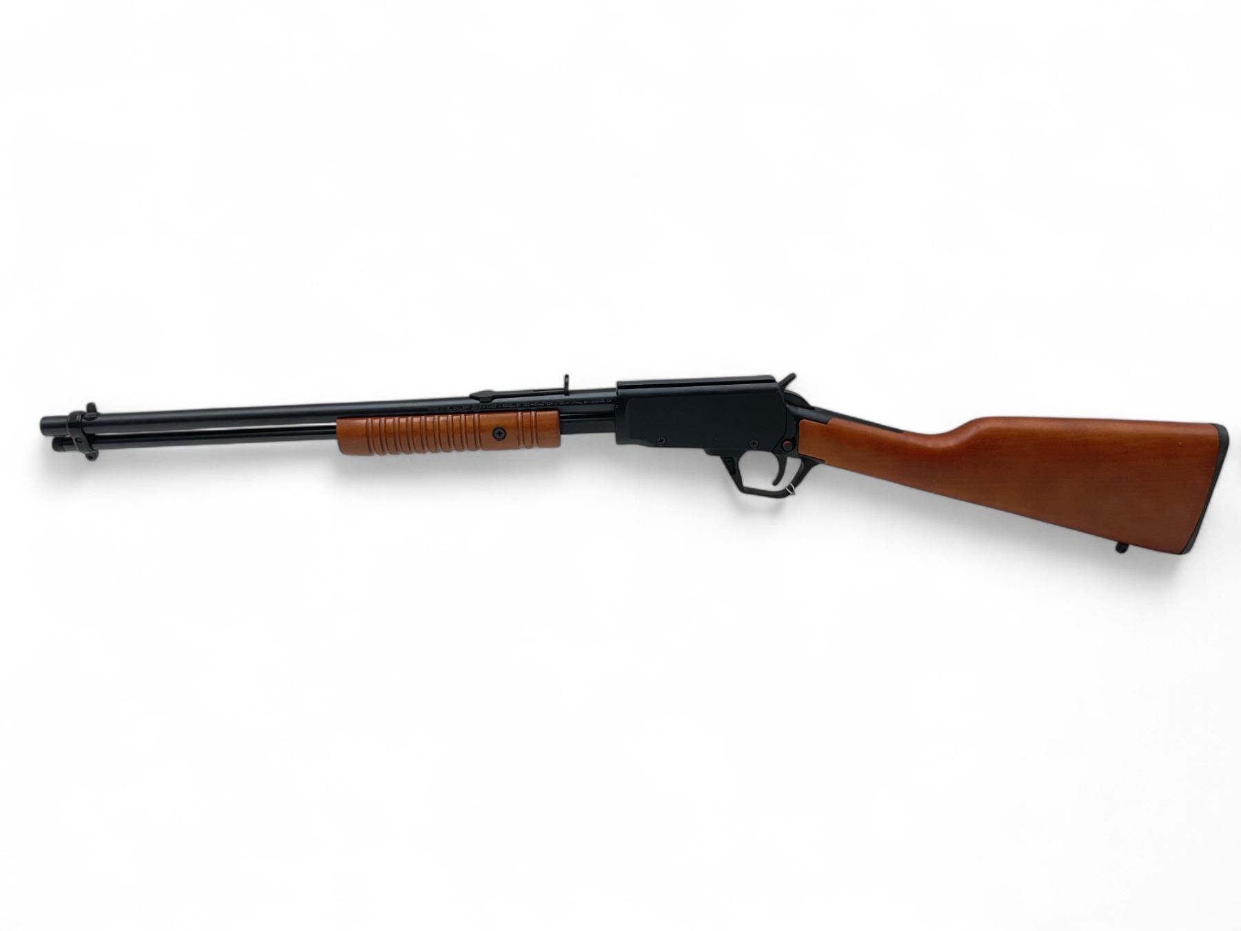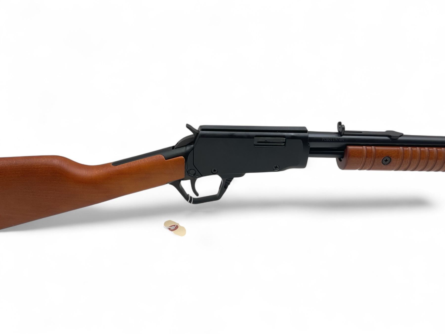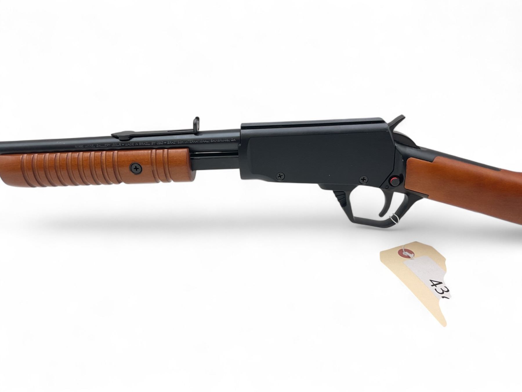 Rossi Gallery Model Pump Action Rifle .22LR 18" Barrel Wood Stock. Tubular magazine. Fixed front sight, rear sight missing elevator. This is a non-restricted firearm.