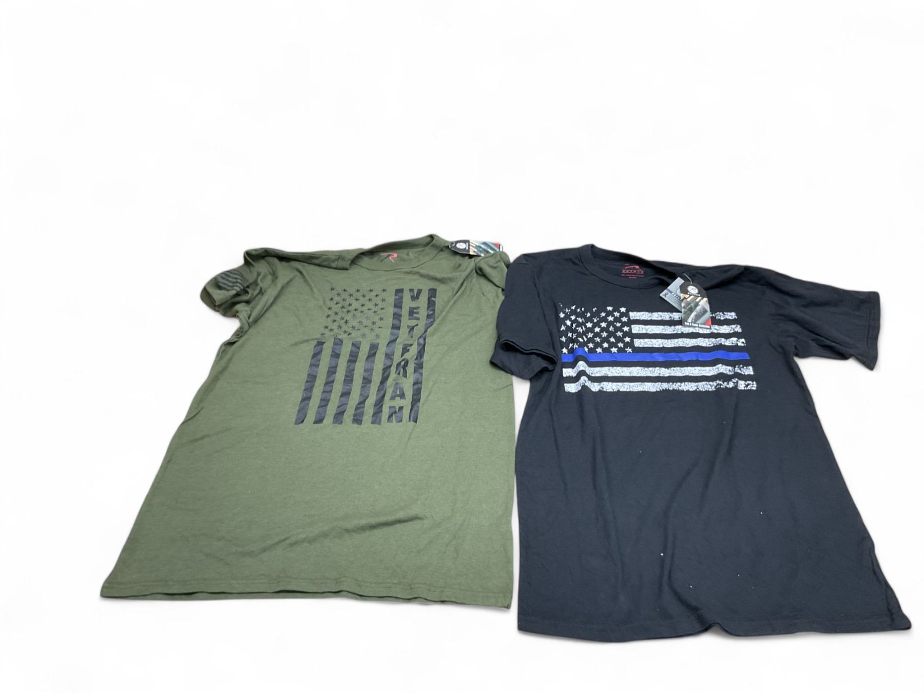 Rothco U.S Flag/ Veteran Shirt, Size: Large and Rothco U.S Flag "Thin Blue Line" Shirt, Size: Large