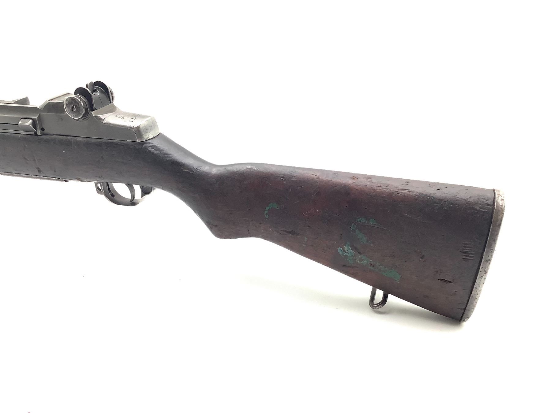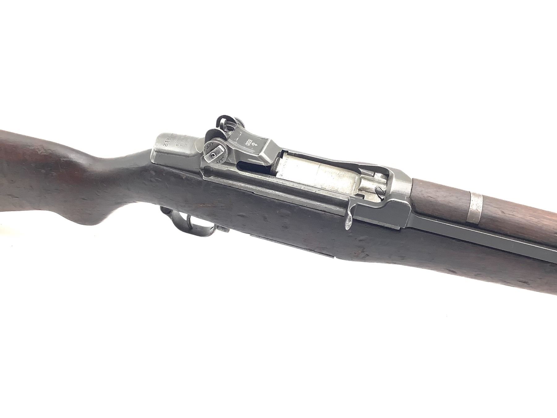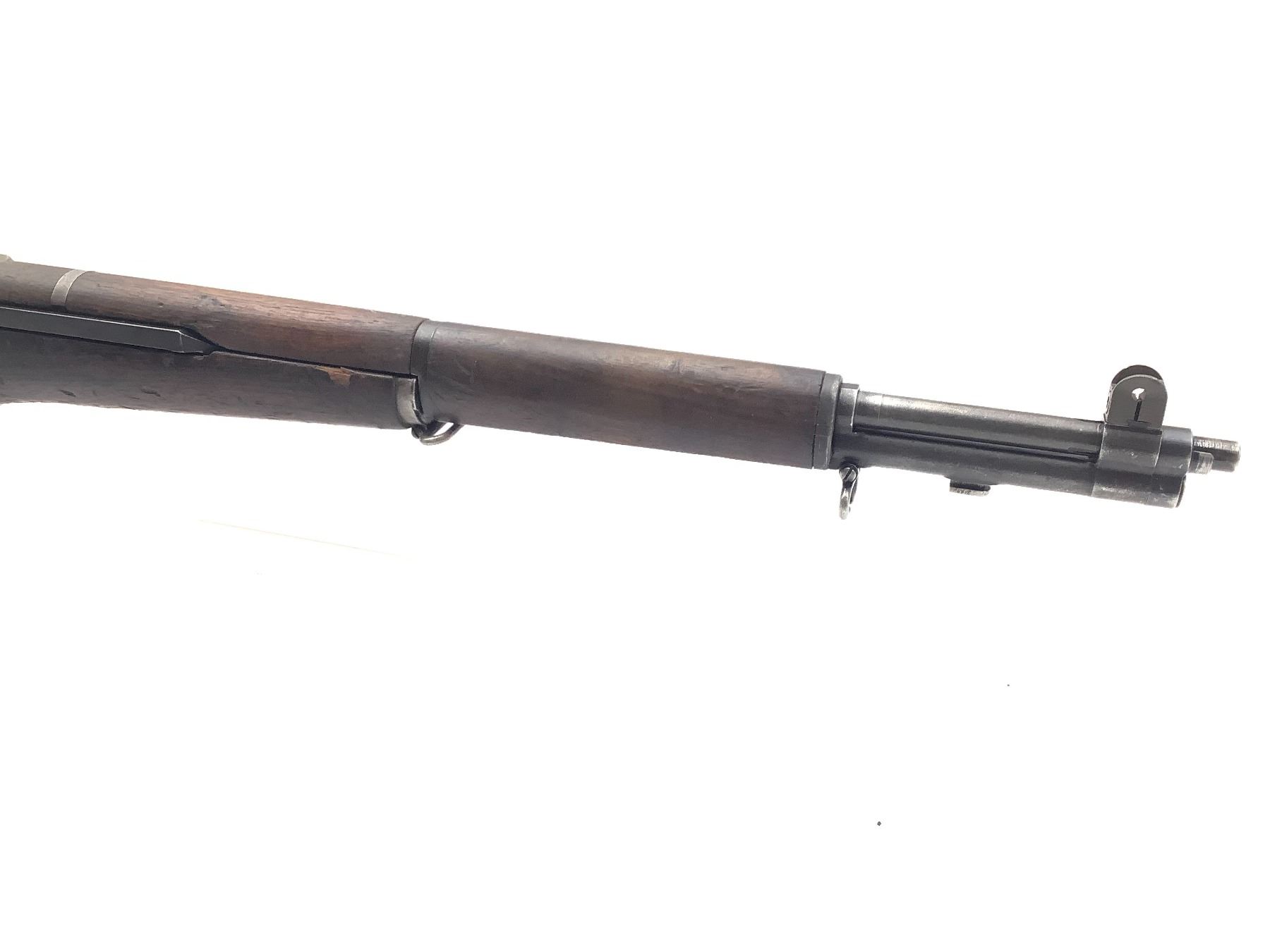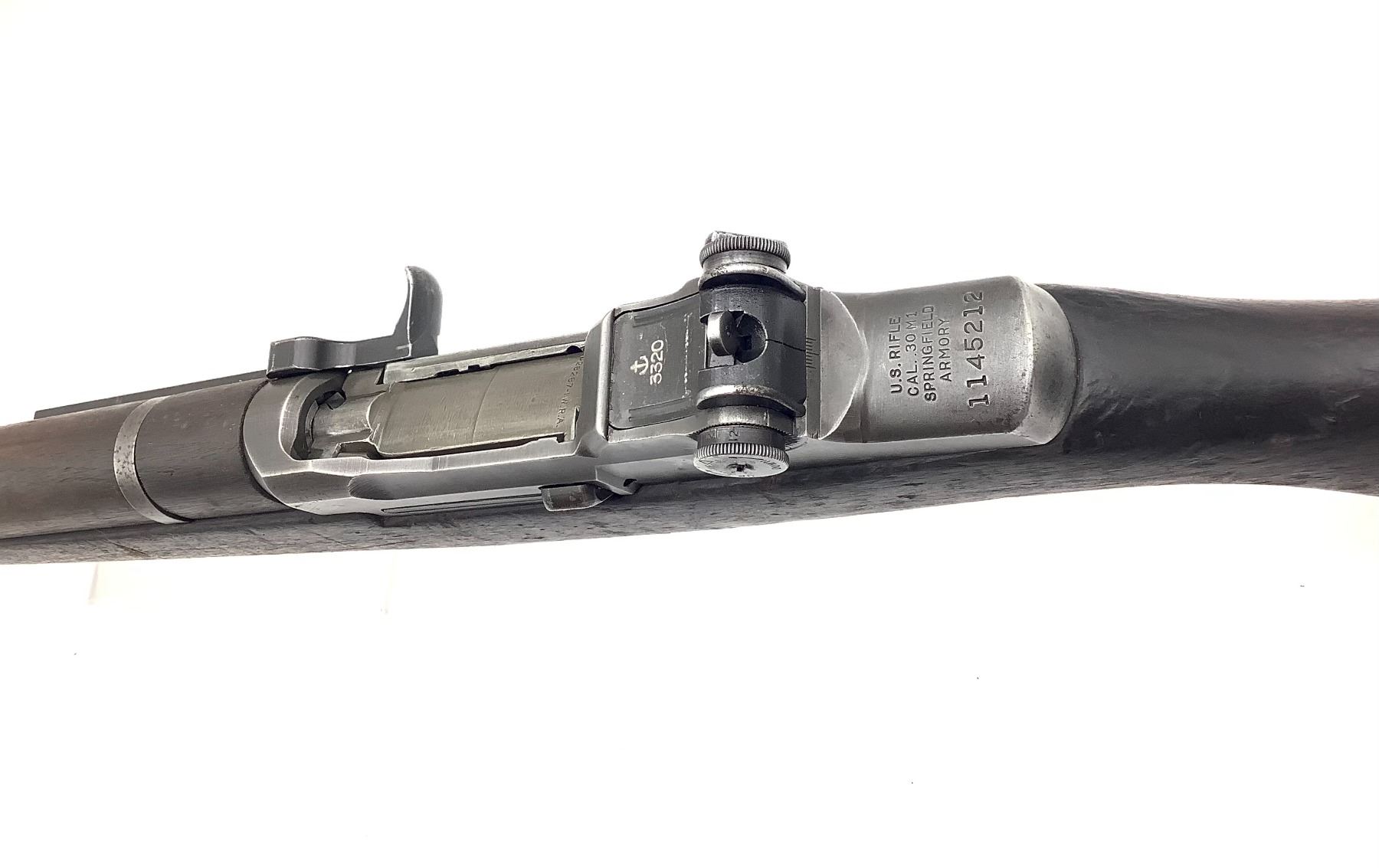 A Royal Danish Navy January 1943 Springfield-manufactured M1 Garand semi-automatic service rifle chambered in .30-06 Springfield. Good bore, original wartime sight. Has Royal Danish Navy anchor marking and secondary serial number engraved on the rear sight cover.