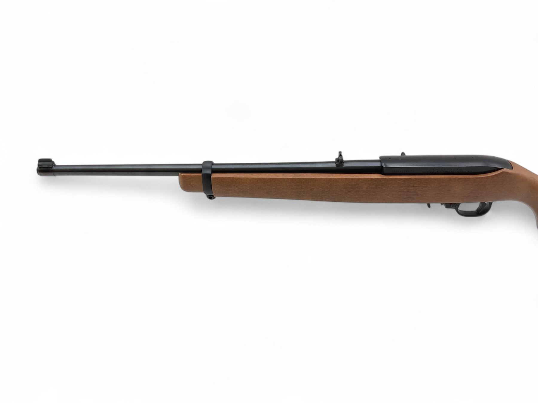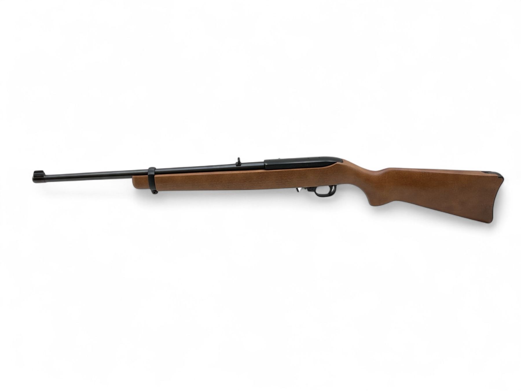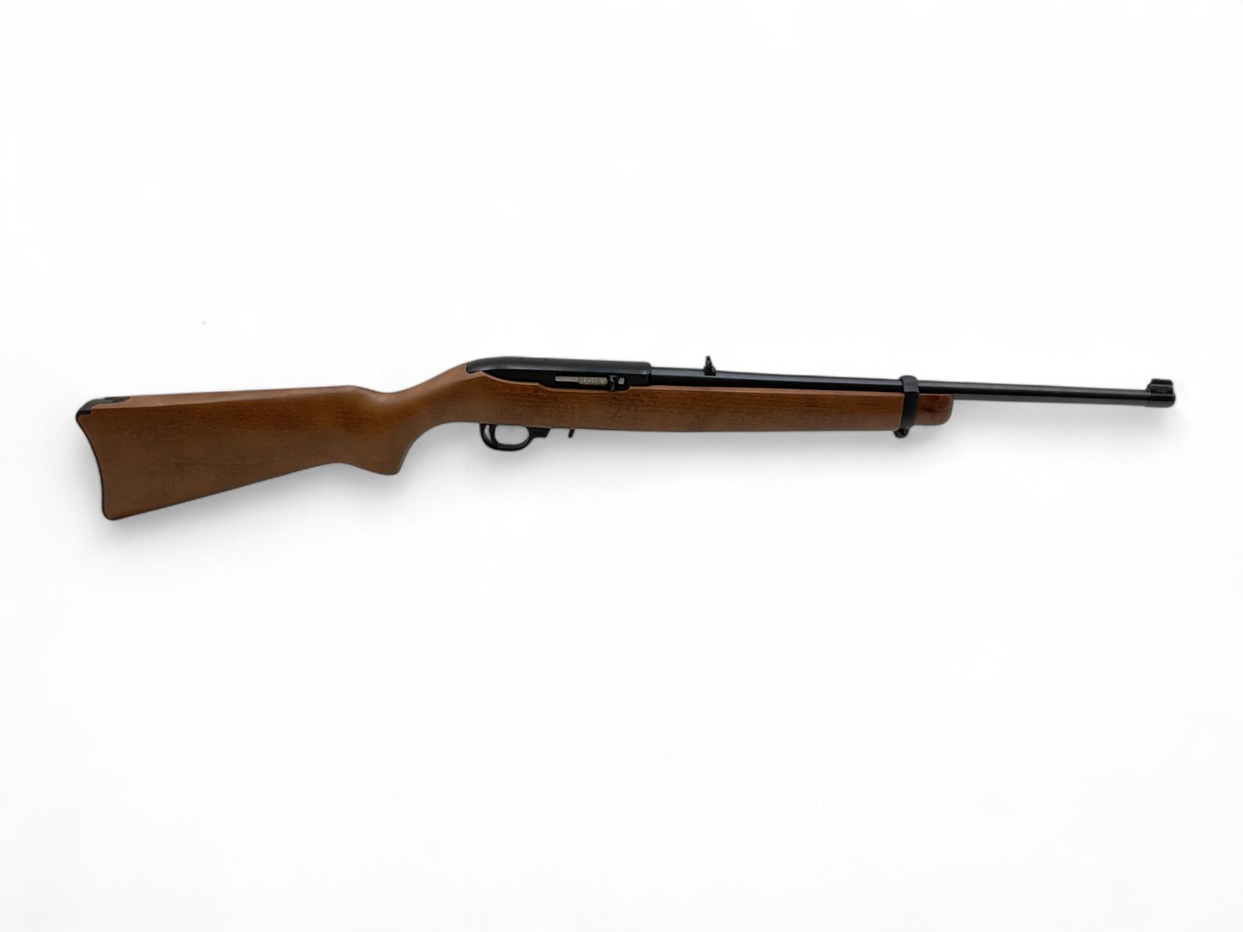 Ruger 10/22 Semi Auto Carbine 22 LR 18.5" Barrel Wood Stock. Comes with one detachable magazine. Fixed front sight, fold down rear sight. Receiver drilled and tapped. This is a non-restricted firearm.