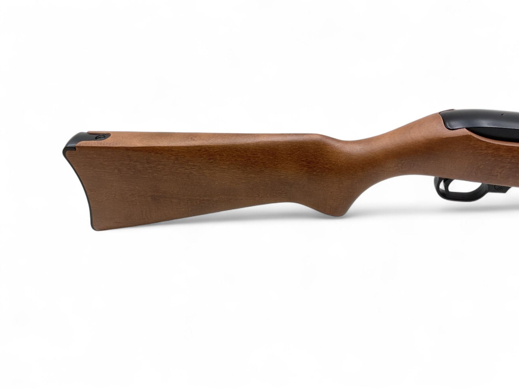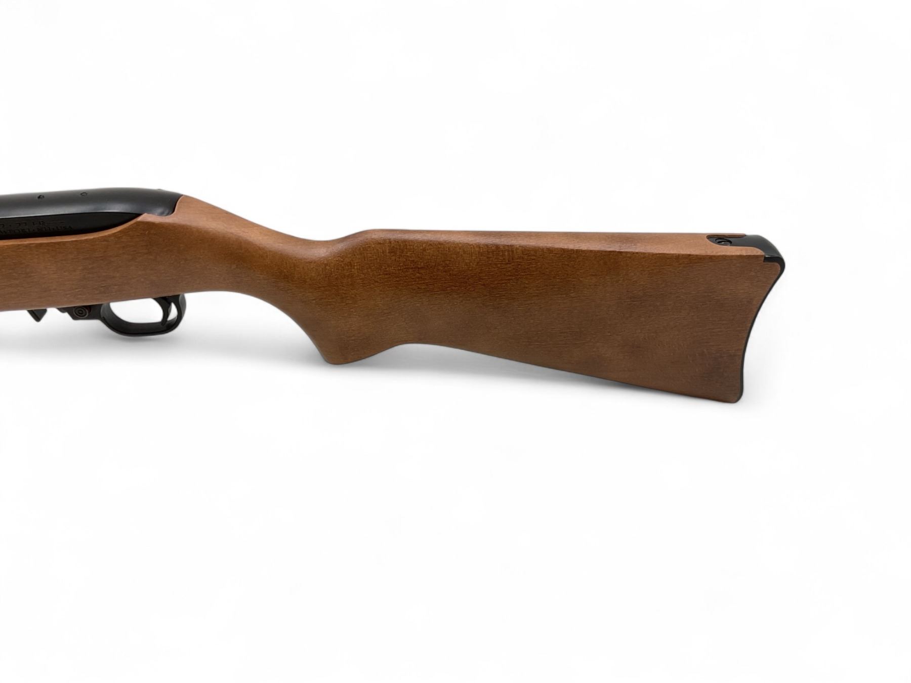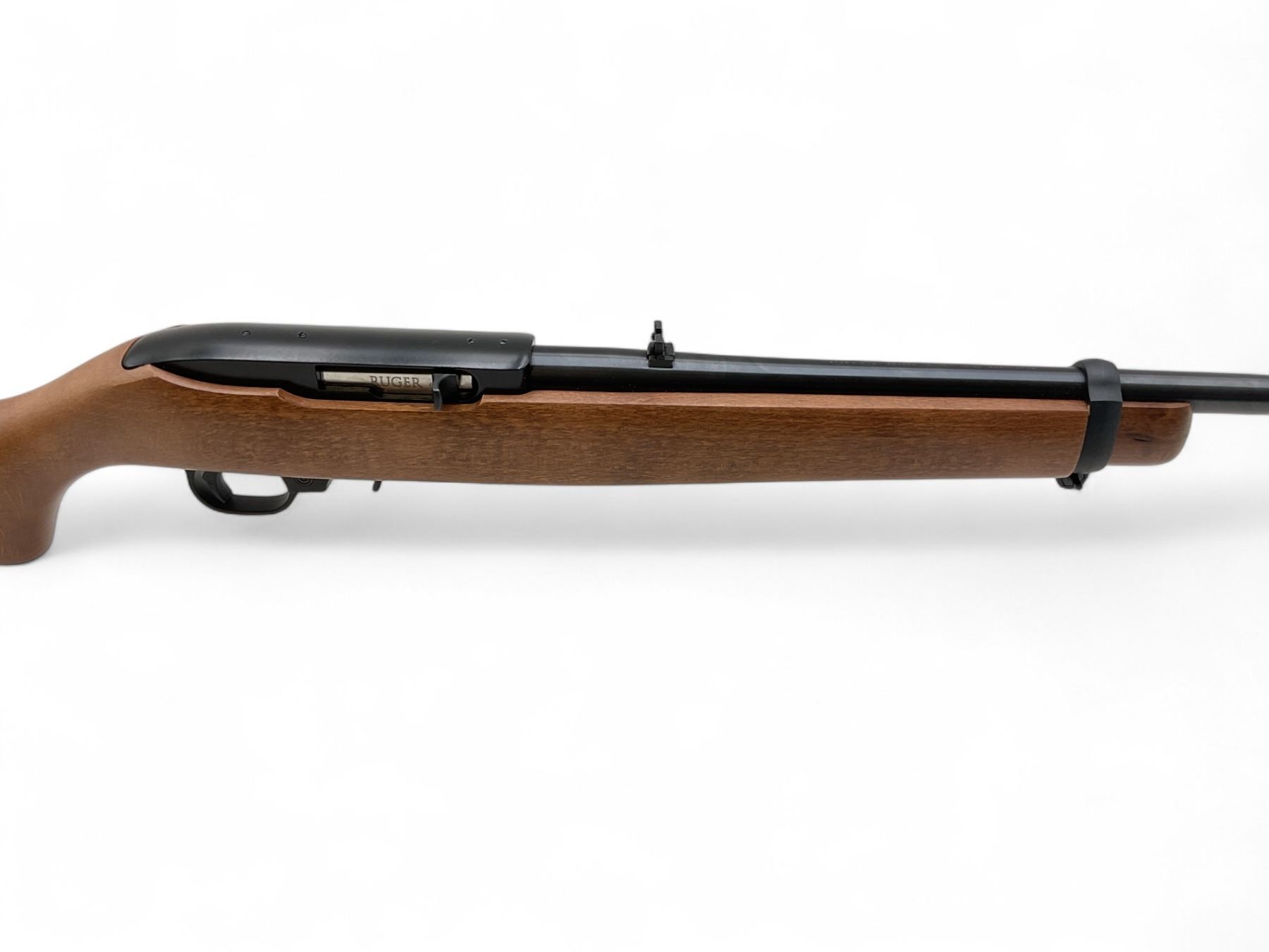 Ruger 10/22 Semi Auto Carbine 22 LR 18.5" Barrel Wood Stock. Comes with one detachable magazine. Fixed front sight, fold down rear sight. Receiver drilled and tapped. This is a non-restricted firearm.