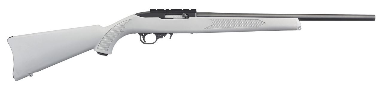Ruger 10/22 Semi Auto Carbine 22LR 18.5" Barrel Grey Synthetic Stock, New. Comes with one detachable magazine. Receiver drilled and tapped; comes with a one piece rail. This is a non-restricted firearm.