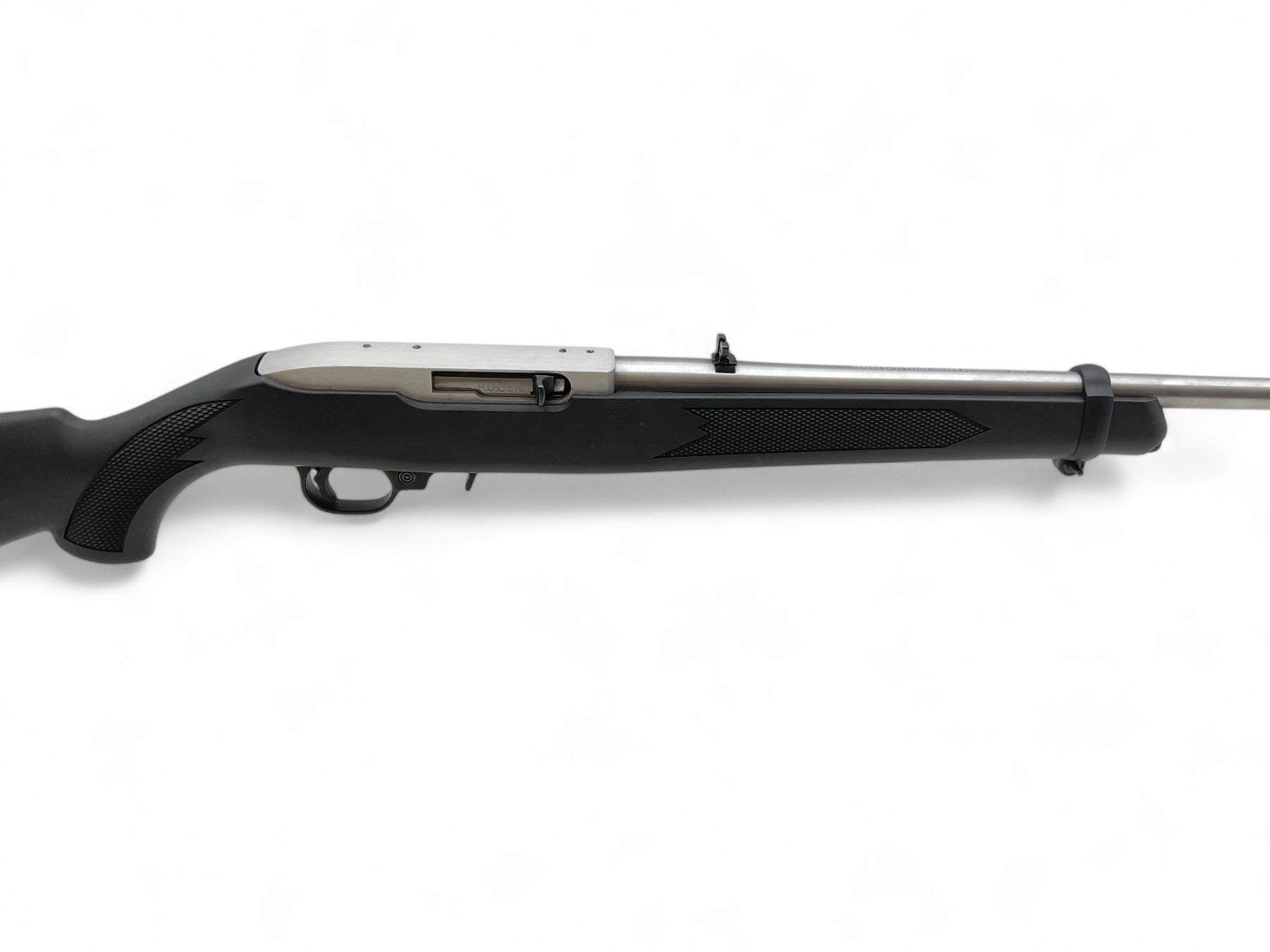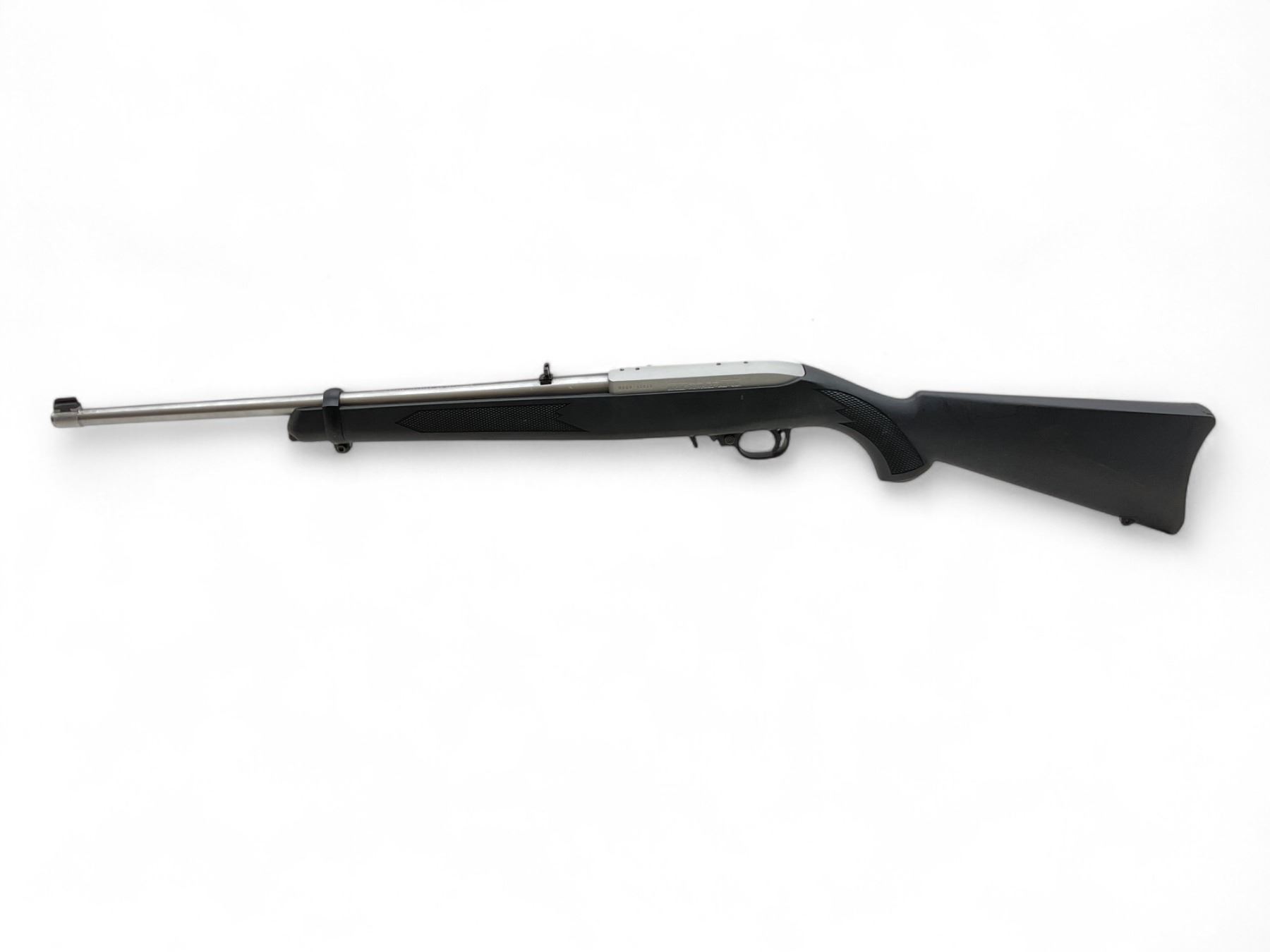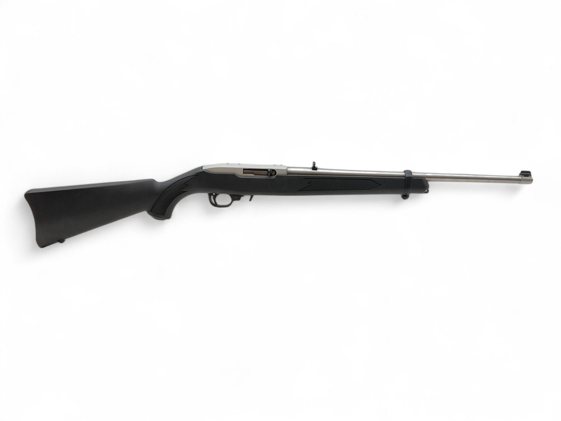 Ruger 10/22 Stainless Semi Auto Rifle 22 LR 18.5" Barrel Black Synthetic Stock. Comes with one detachable magazine. Factory open sights; receiver drilled and tapped. This is a non-restricted firearm.