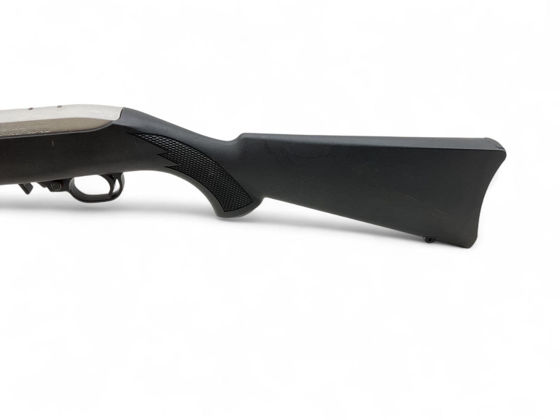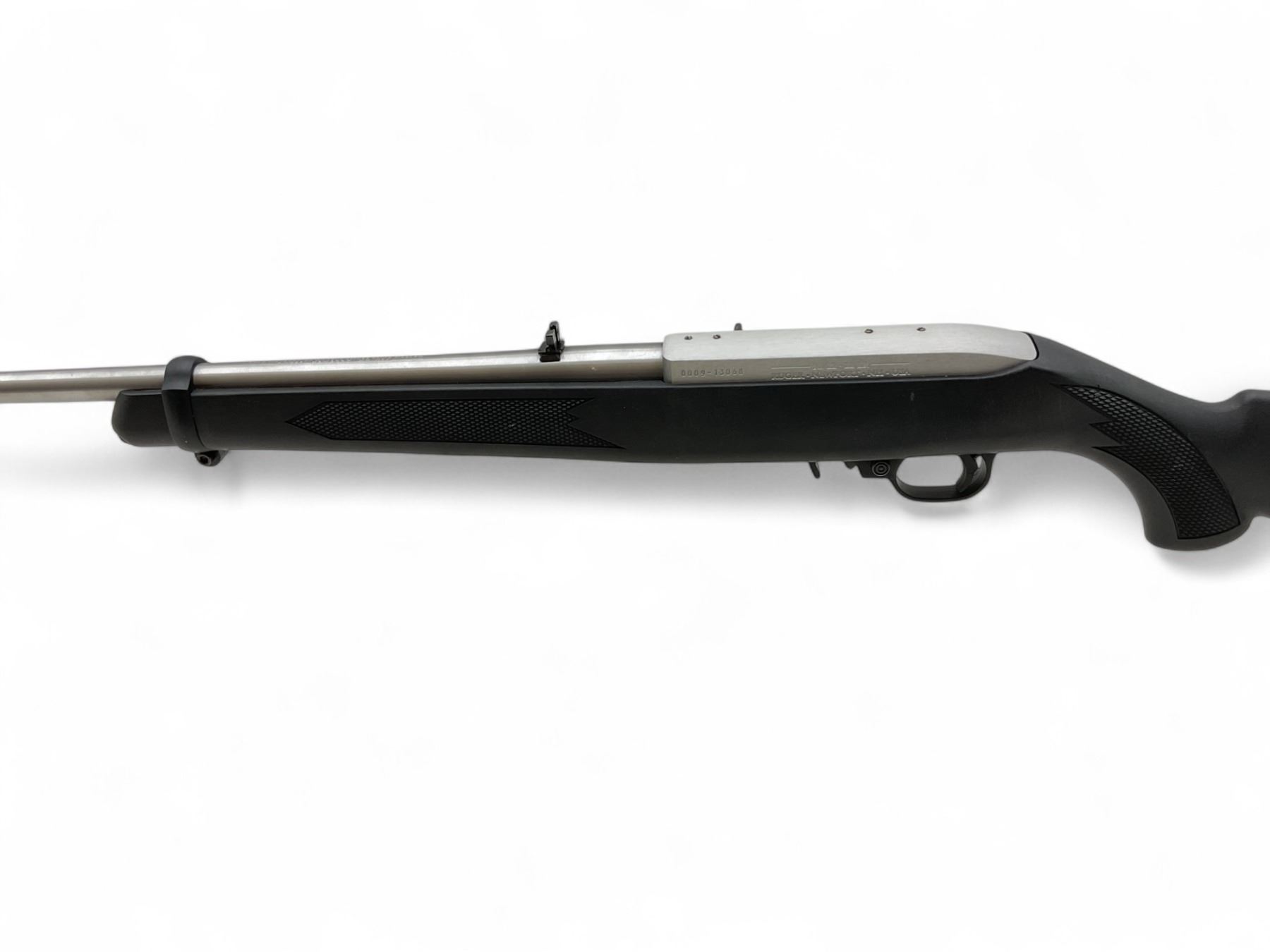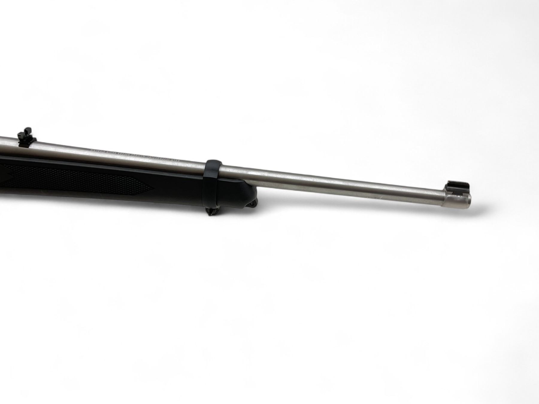 Ruger 10/22 Stainless Semi Auto Rifle 22 LR 18.5" Barrel Black Synthetic Stock. Comes with one detachable magazine. Factory open sights; receiver drilled and tapped. This is a non-restricted firearm.