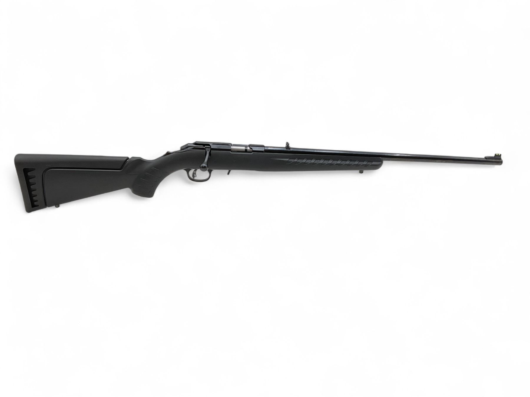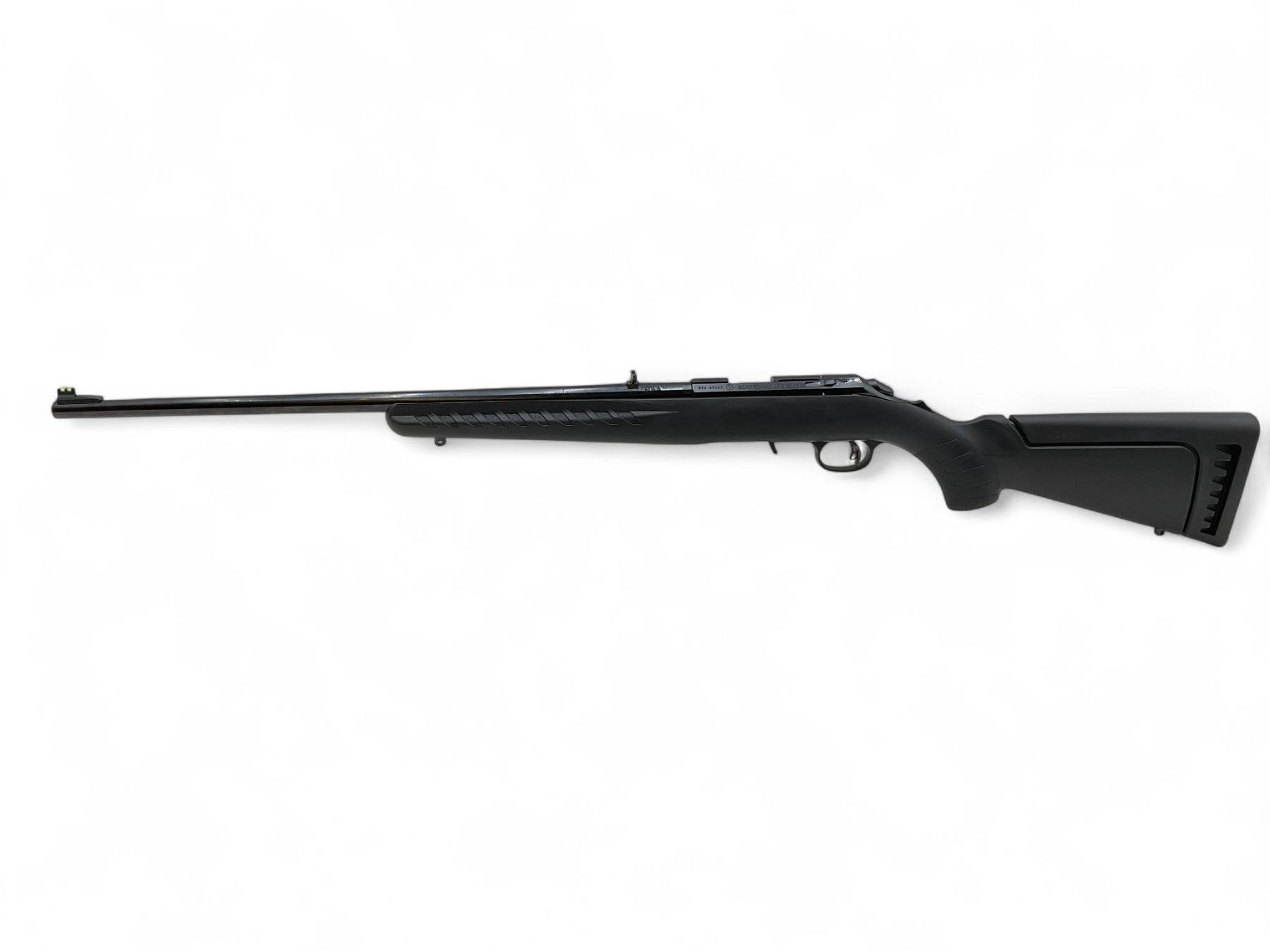Ruger American Bolt Action Rifle .22LR 22" Barrel Black Synthetic Stock, New. Comes with one detachable magazine. Fiber optic front sight; flip down rear sight. This is a non-restricted firearm.