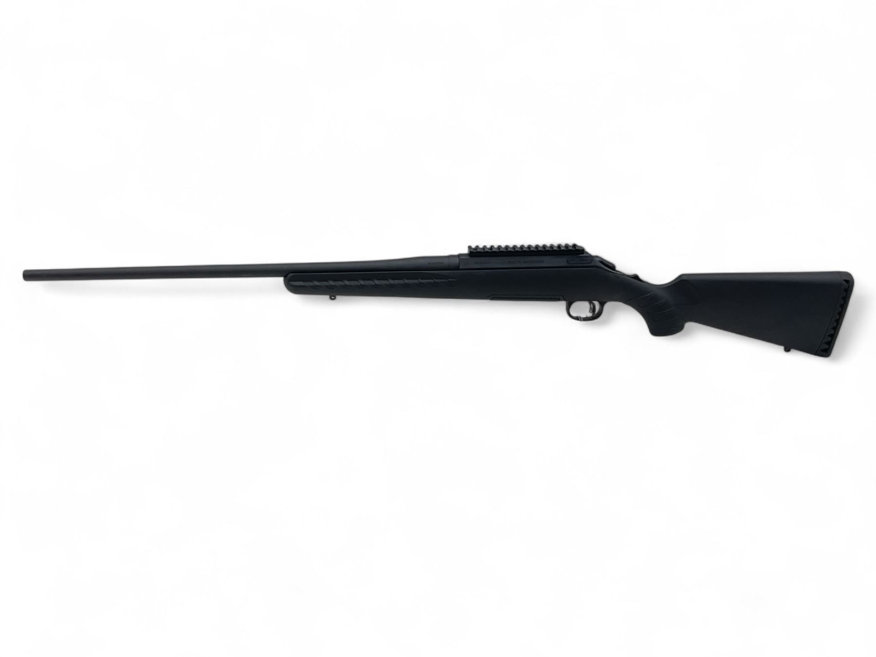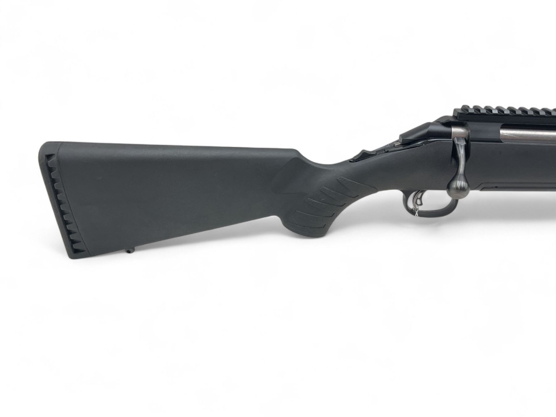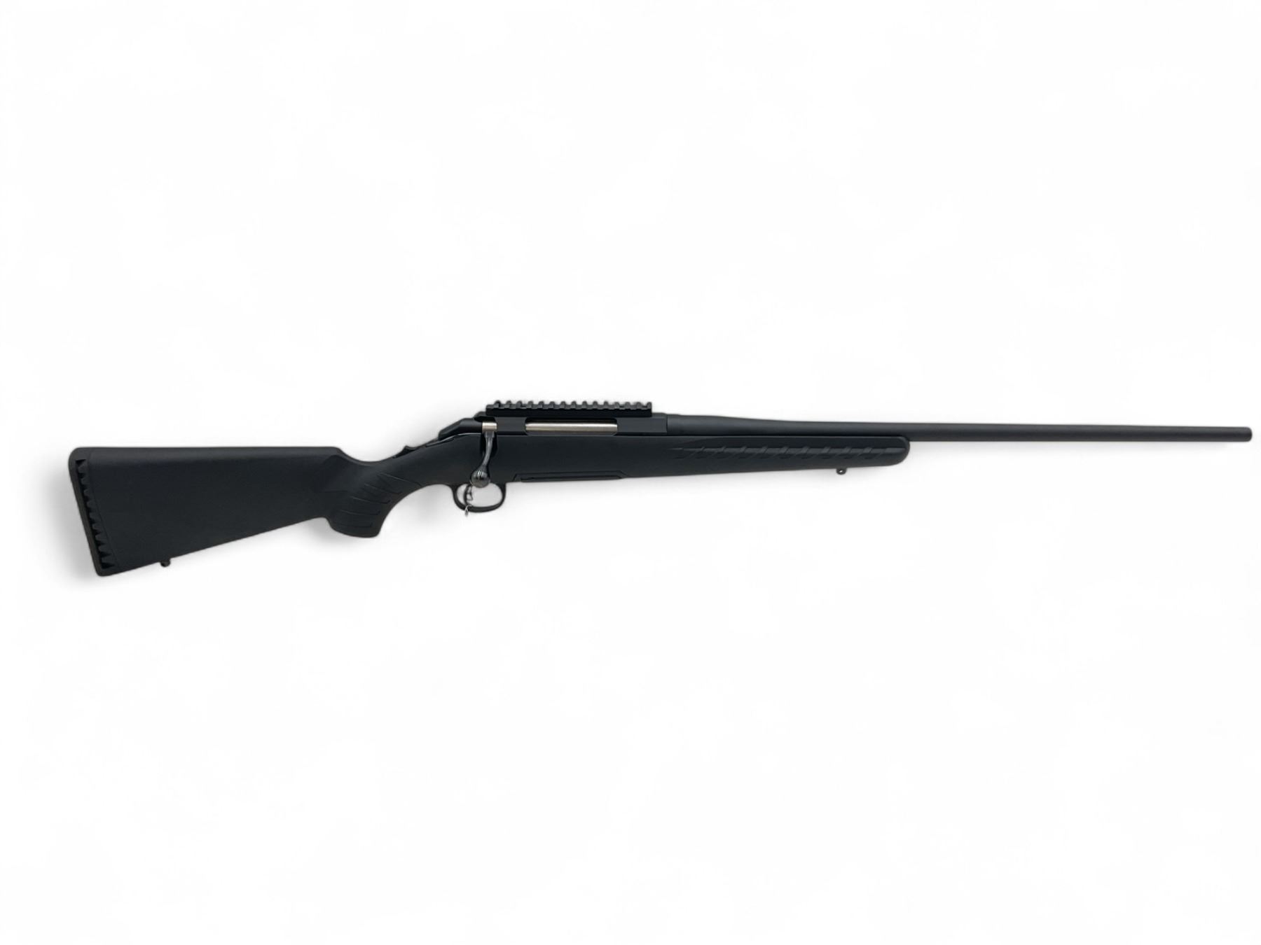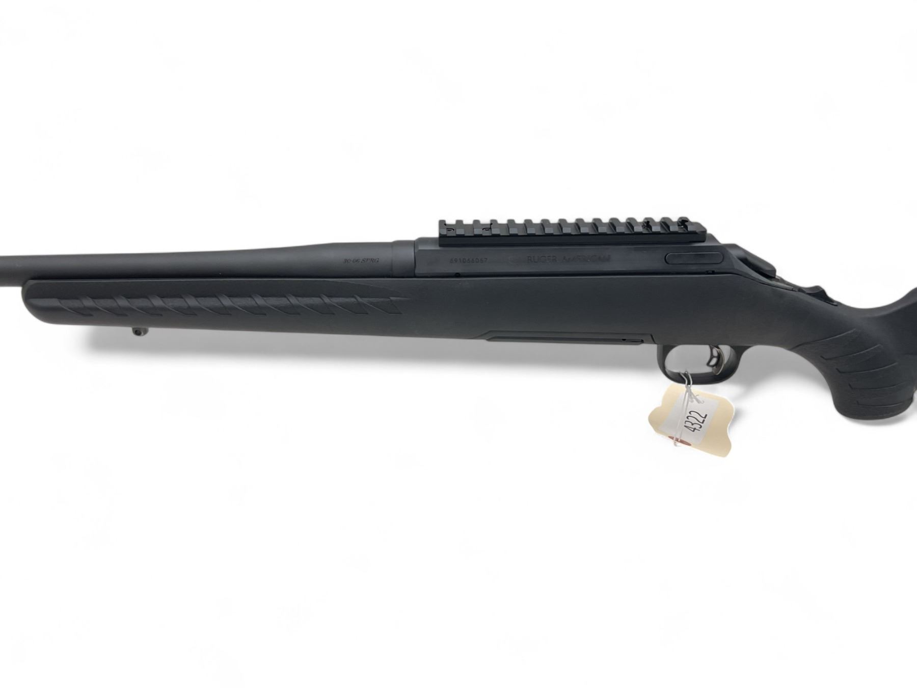 Ruger American Bolt Action Rifle 30-06 SPRG 22" Barrel Black Synthetic Stock. Comes with one detachable magazine. Receiver drilled and taped with one piece rail installed. Adjustable trigger; rubber butt pad. This is a non-restricted firearm.