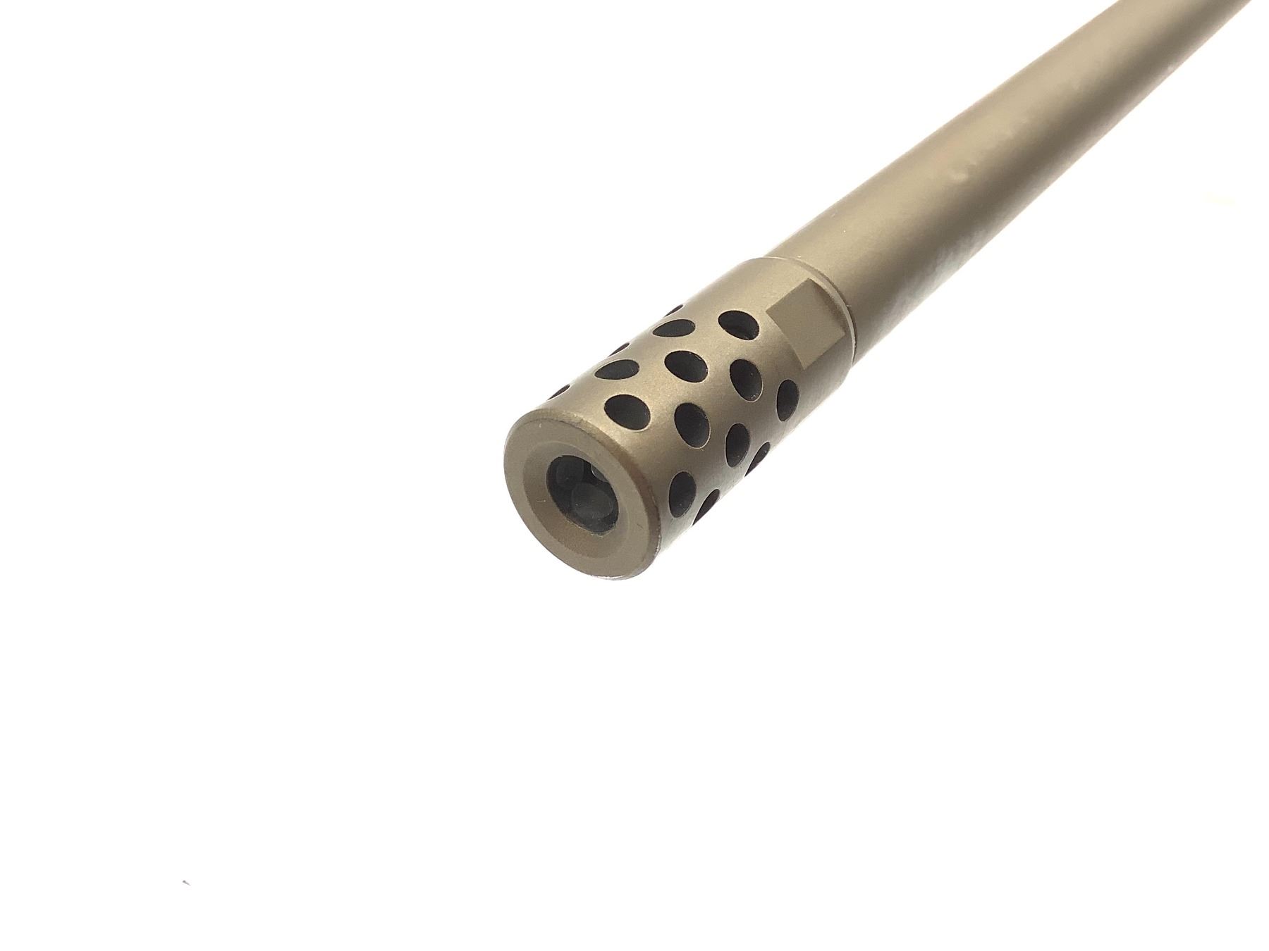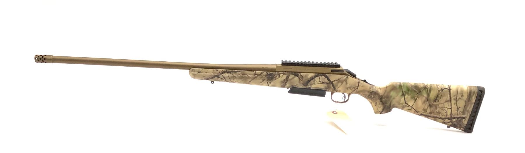 Ruger American Bolt Action Rifle 6.5 PRC 24" Barrel Go Wild Camo With Cerakote Bronze, Display Model. Some handling marks present. Detachable magazine, rail mounted on receiver. Adjustable trigger, rubber butt pad. This is a non-restricted firearm.