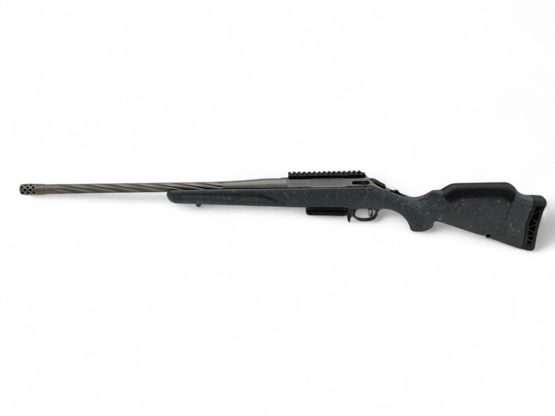 Ruger American Gen II Bolt Action Rifle .308 Winchester 20" Threaded and Fluted Barrel Gray Splatter Synthetic Stock, New. Gun metal grey Cerakote finish. Detachable magazine, adjustable trigger. Receiver drilled and tapped with one piece rail installed. This is a non-restricted firearm.
