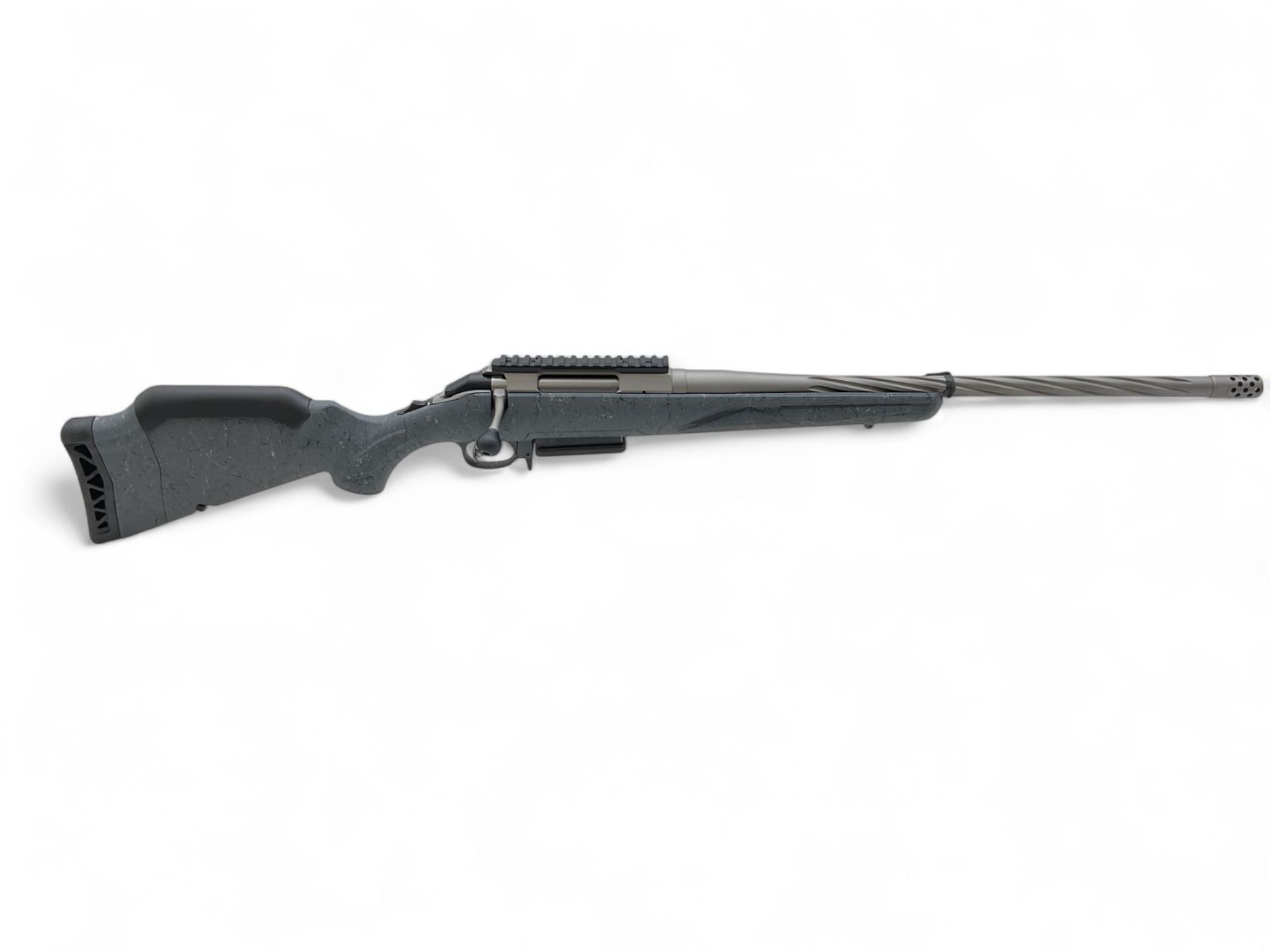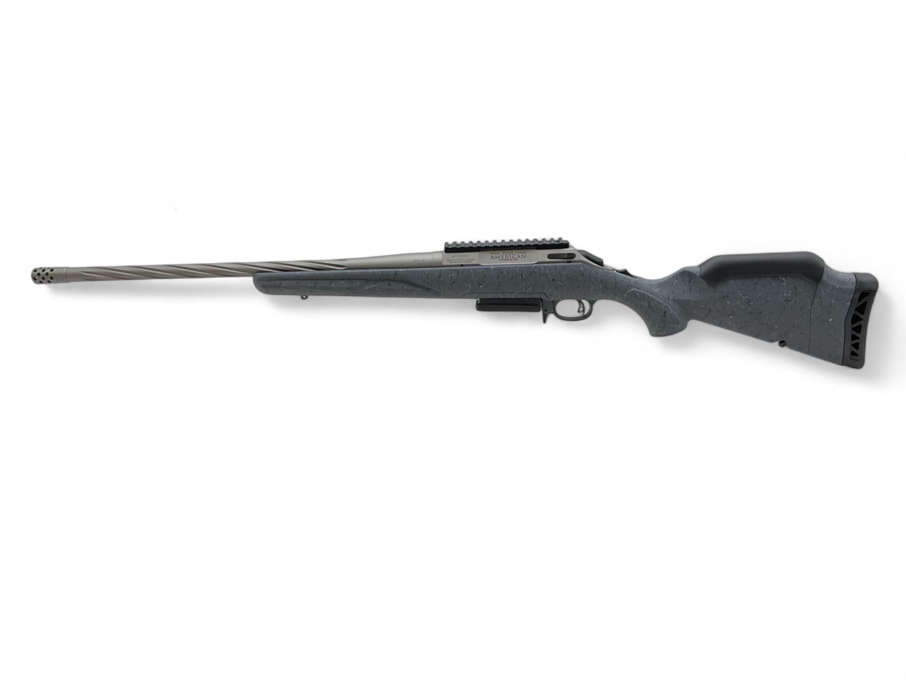 Ruger American Gen II Bolt Action Rifle 7MM-08 Rem 20" Threaded Barrel Gray Splatter Synthetic Stock, New. Gun metal grey Cerakote finish. Detachable magazine, adjustable trigger. Receiver drilled and tapped with one piece rail installed. This is a non-restricted firearm.