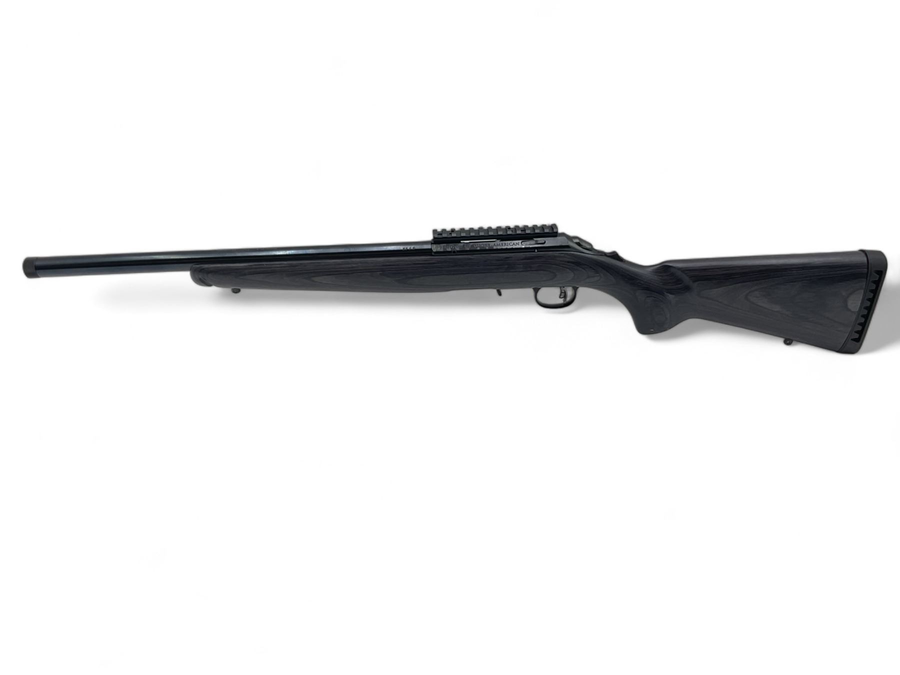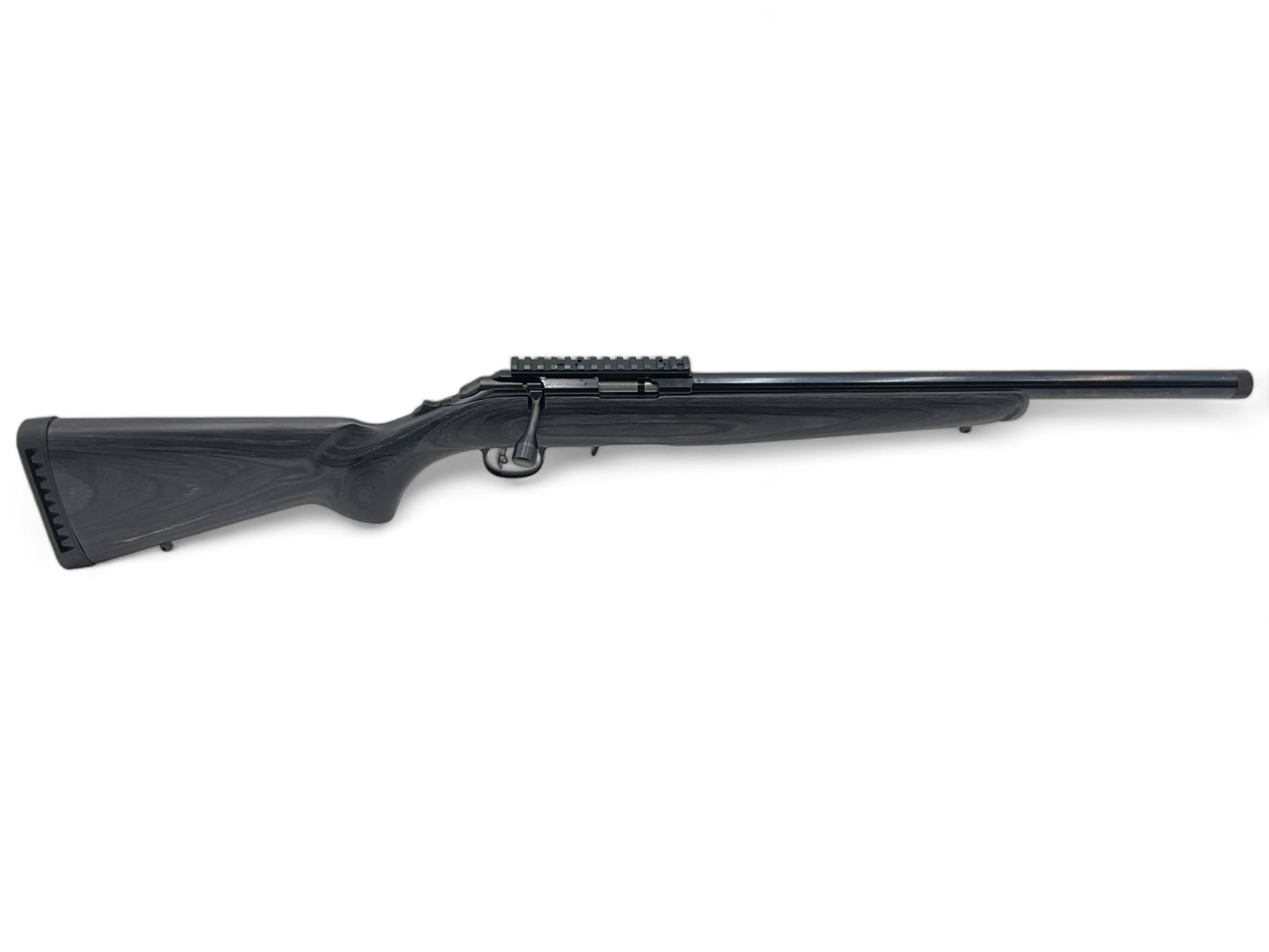 Ruger American Rimfire Target Bolt Action Rifle 22LR 18" Threaded Barrel Black Laminate Stock, New. Includes one detachable magazine; adjustable trigger. Receiver drilled and tapped with one piece rail installed. This is a non-restricted firearm.