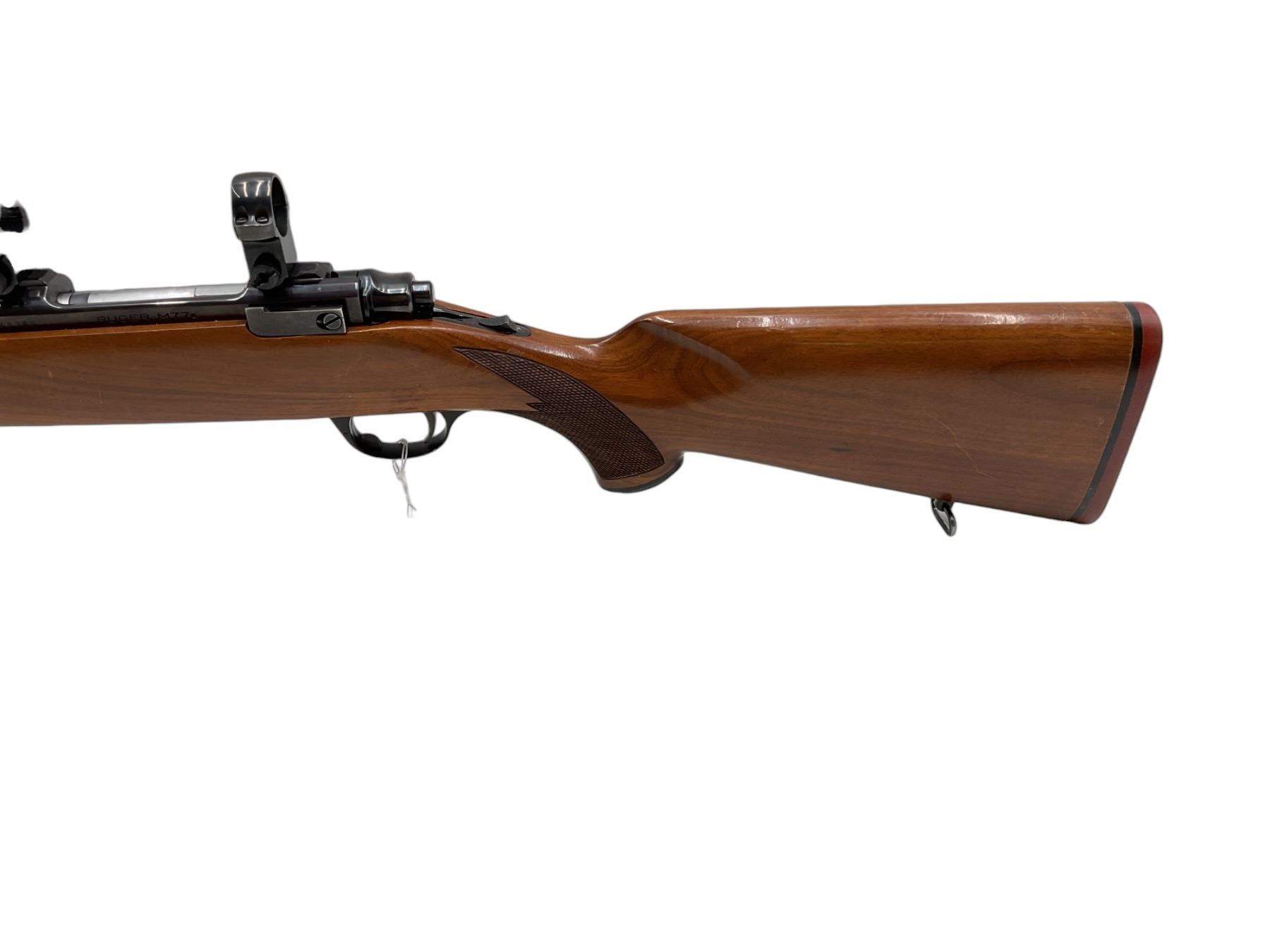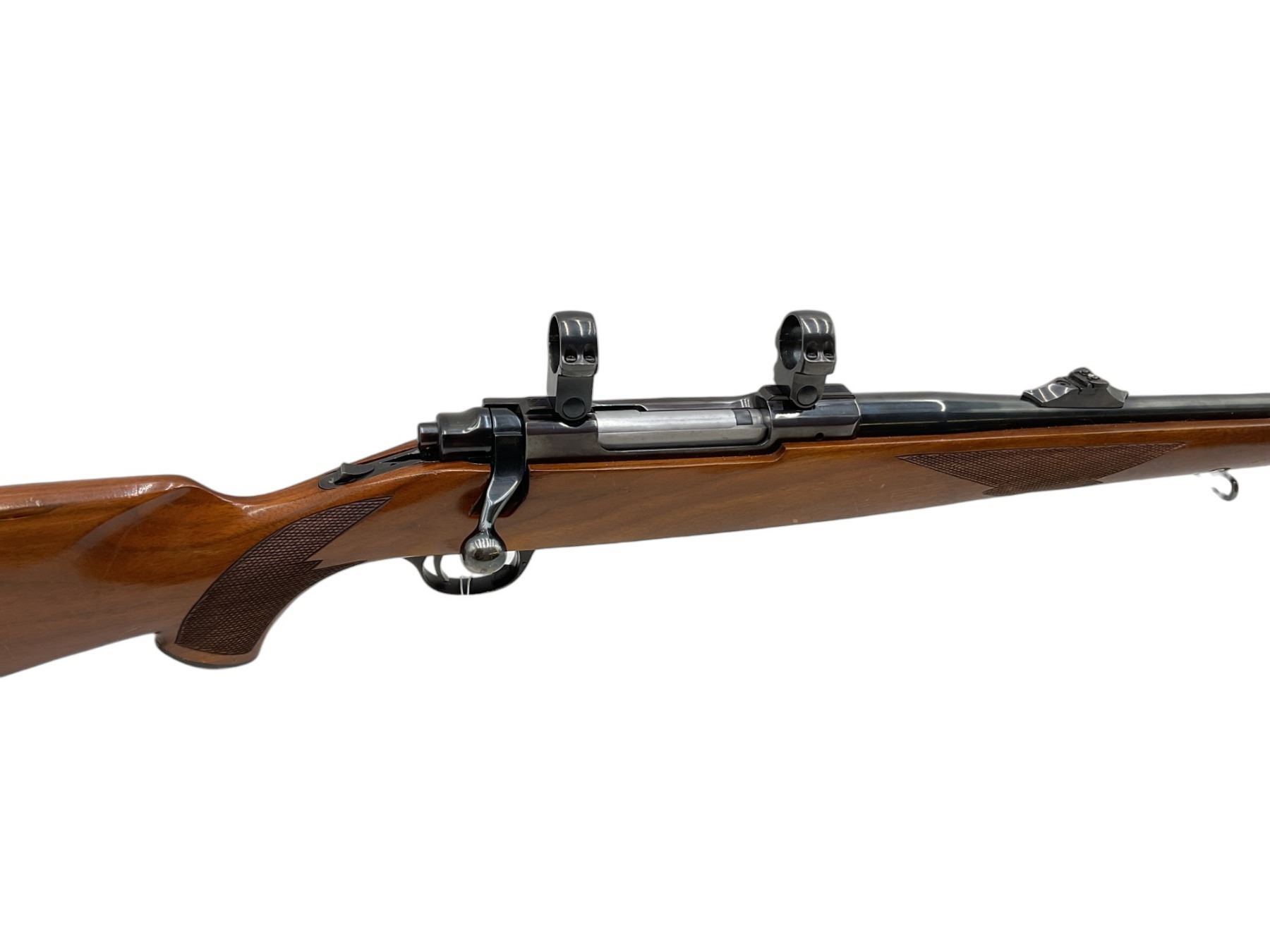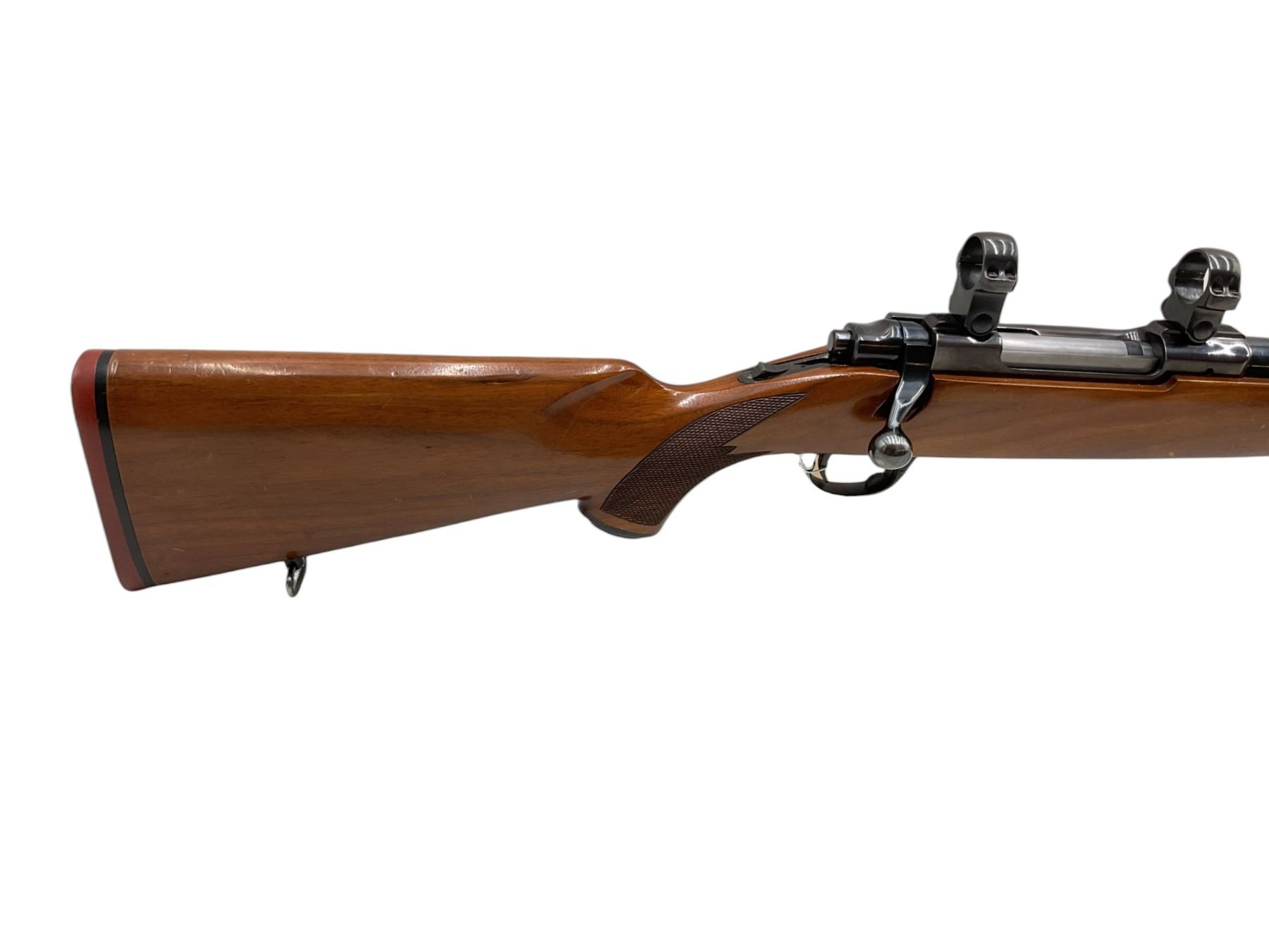 Ruger M77 Bolt Action Rifle 30-06 SPRG 22" Barrel Wood Stock. Fixed front sight, adjustable rear sight. Internal magazine with hinged floor plate. Includes rings. This is a non-restricted firearm.
