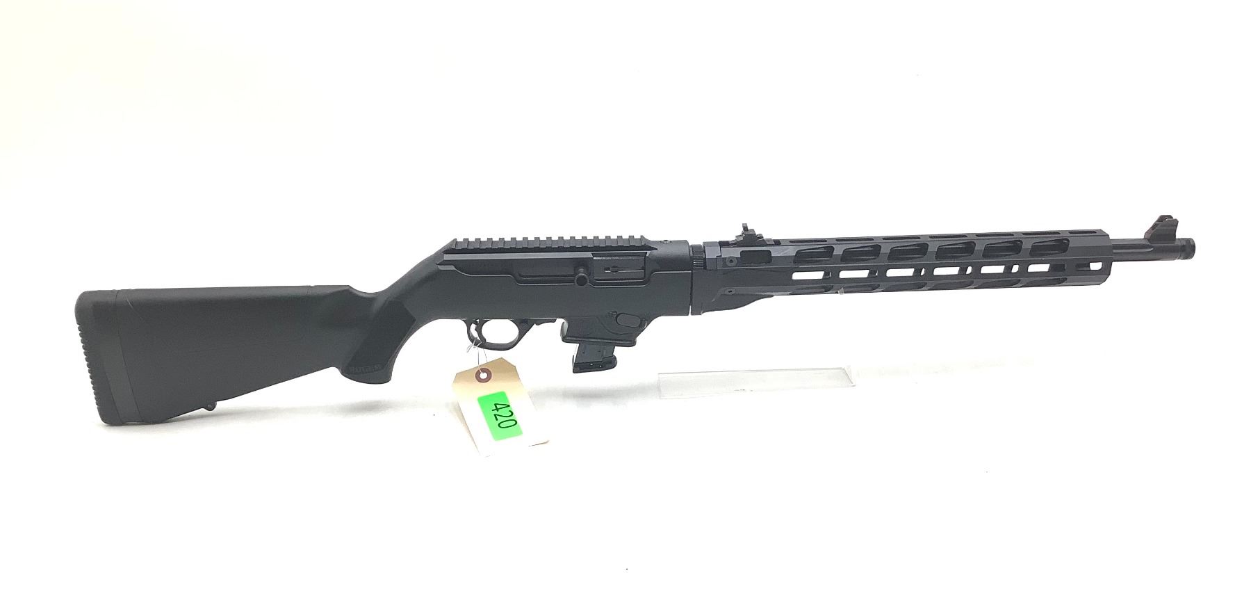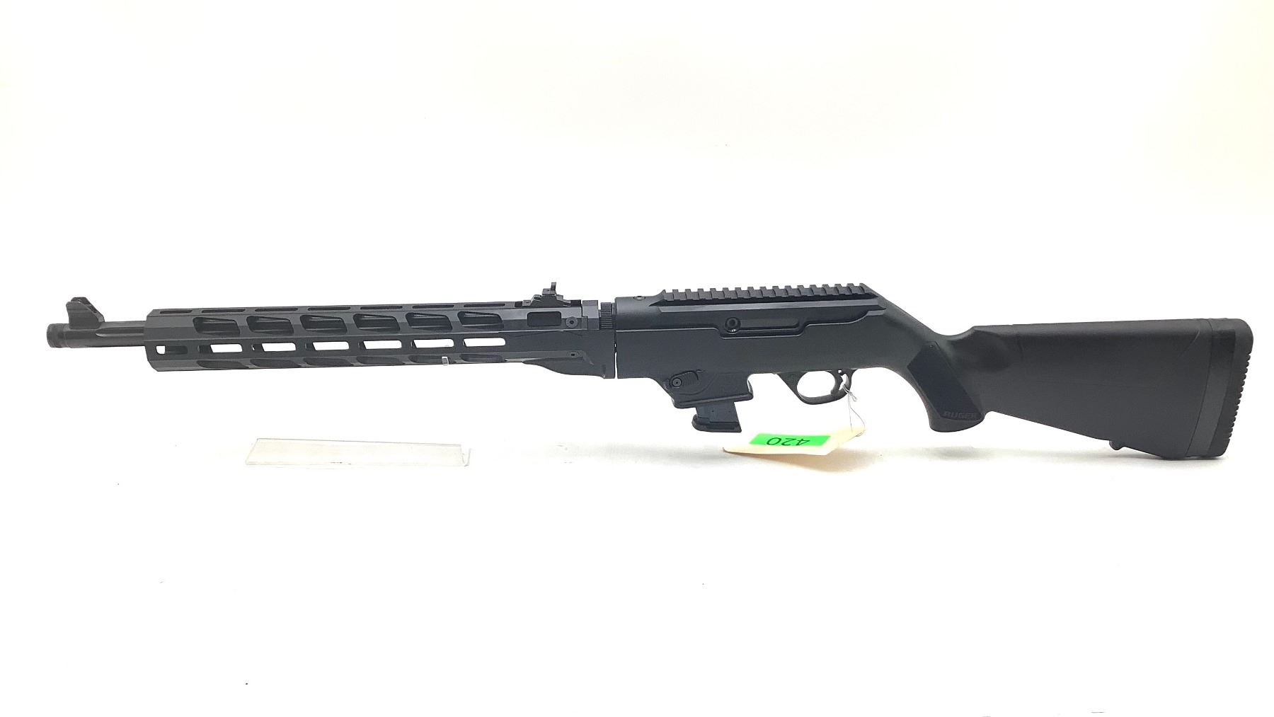 Ruger PC Carbine Semi Auto Rifle 9mm 18.6" Threaded Barrel Takedown Black. Consignor indicates gun was fired very little. Detachable magazine (includes magwell adapter for Glock magazines). Factory open sights, rubber butt pad. This is a non-restricted firearm.