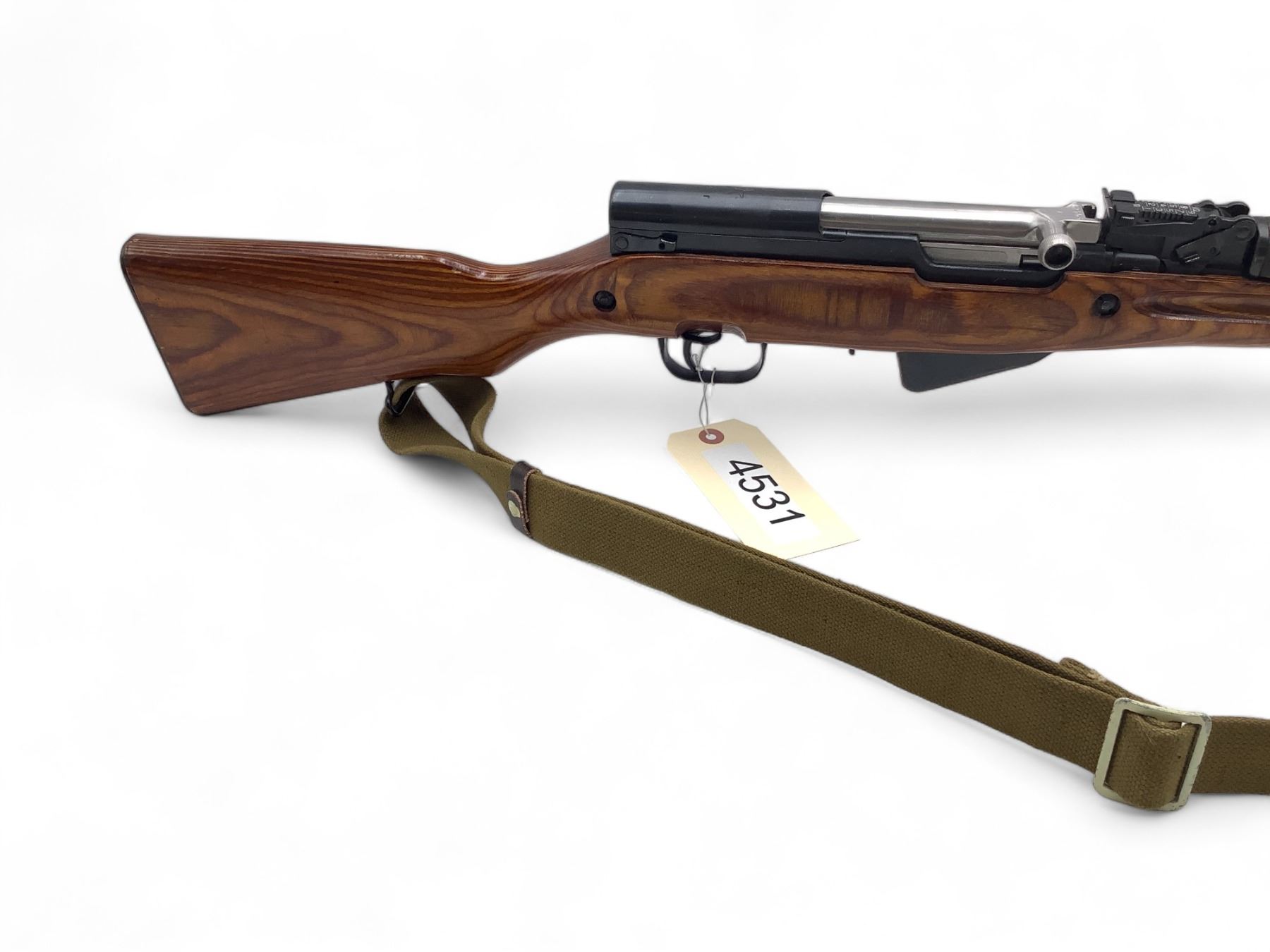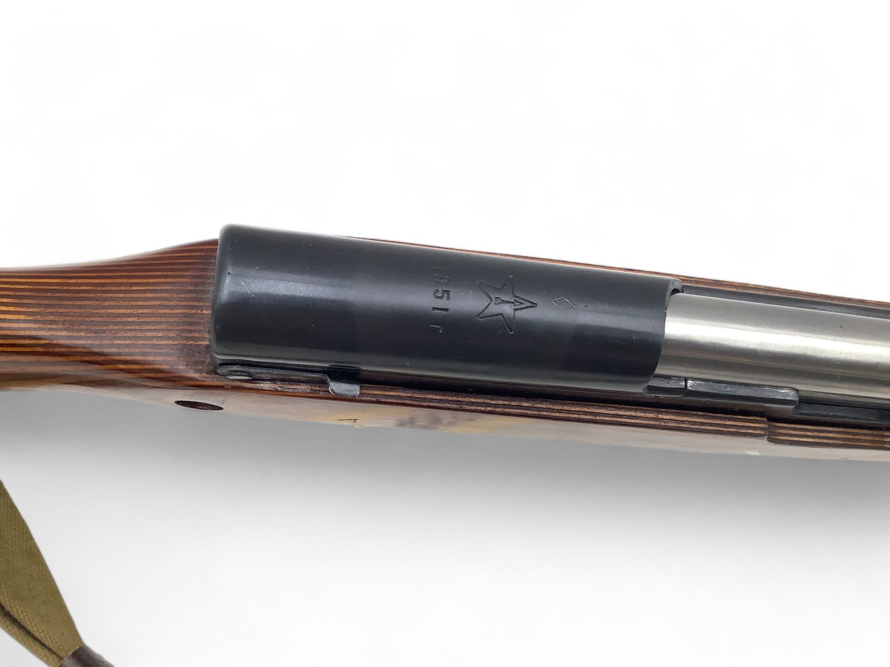 Russian SKS Semi Auto Rifle 7.62X39 20" Barrel Laminated Stock. Internal magazine, factory open sights. Includes sling; upper handguard is birch. This is a non-restricted firearm.