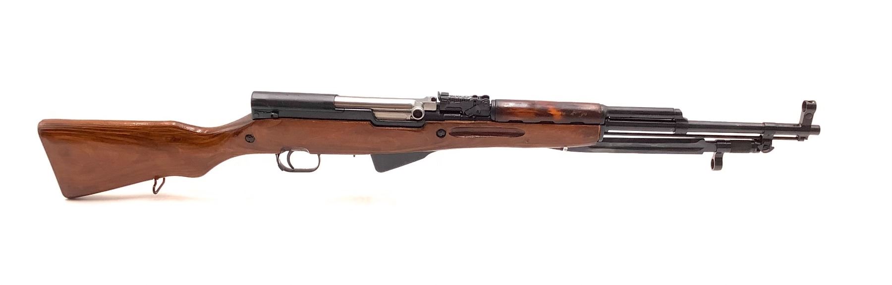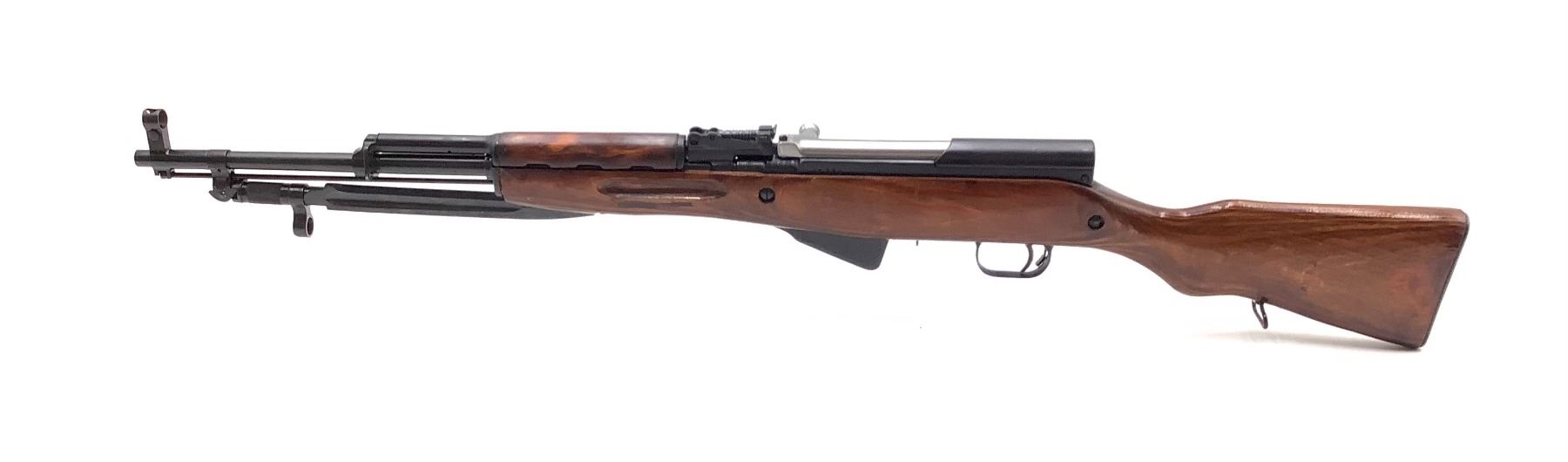 Russian SKS Semi Auto Rifle 7.62X39 Laminate Stock Tula Manufactured 1954. Internal magazine, folding bayonet. Good condition, appears to be an earlier import. This is a non-restricted firearm.