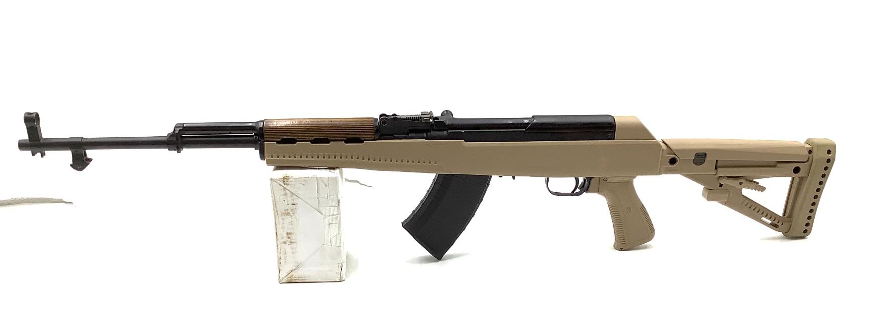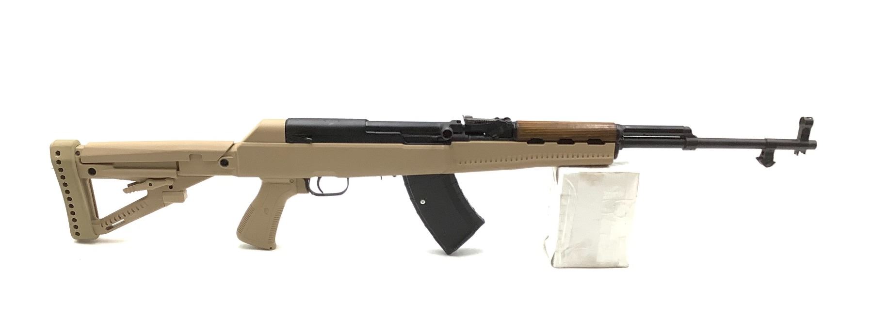 Russian SKS Semi Auto Rifle 762X39 20" Barrel With Tan Archangel Stock. Tapco detachable magazine, wood upper handguard. Adjustable stock. This is a non-restricted firearm.