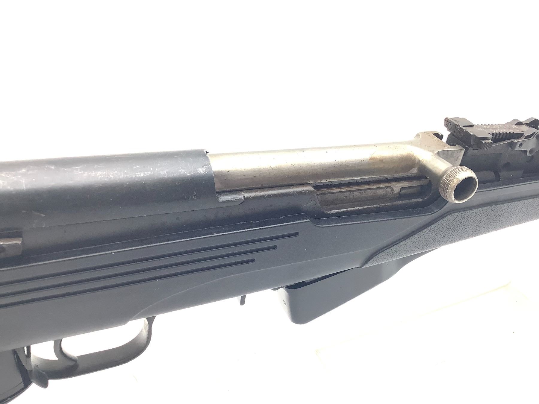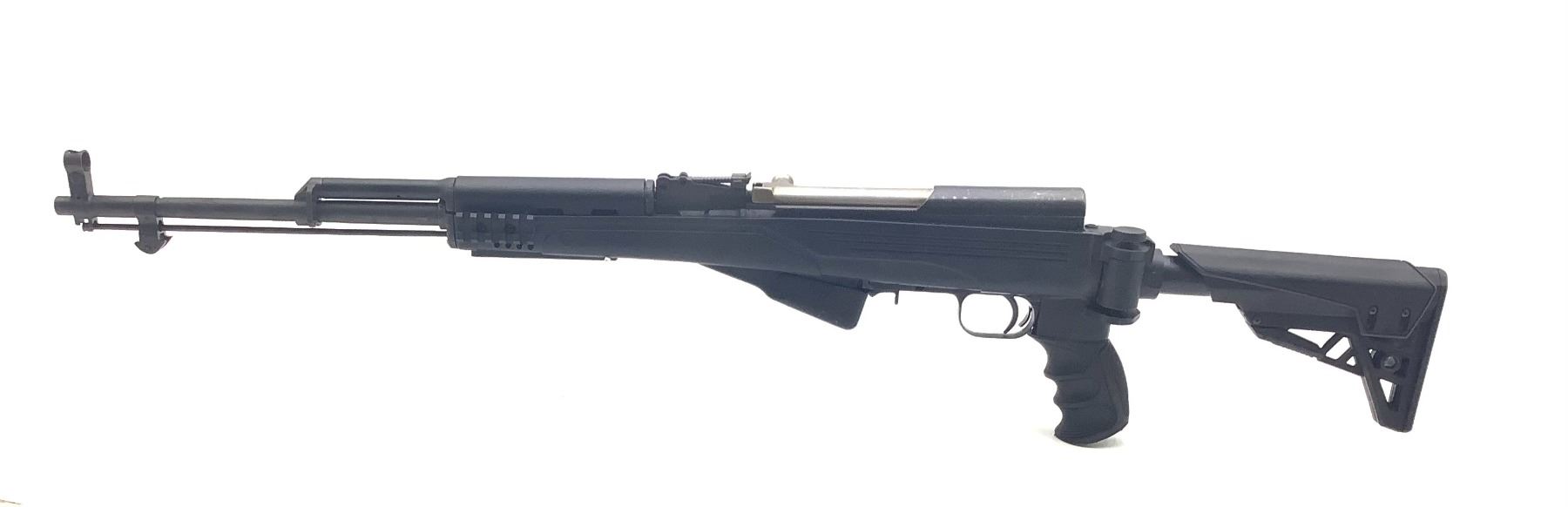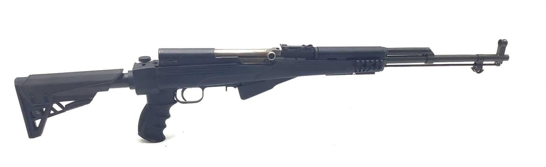 Russian SKS Semi Auto Rifle 762x39 20" Barrel Black ATI Stock. Fixed sights, collapsible stock. Some rust/pitting on receiver. This is a non-restricted firearm.