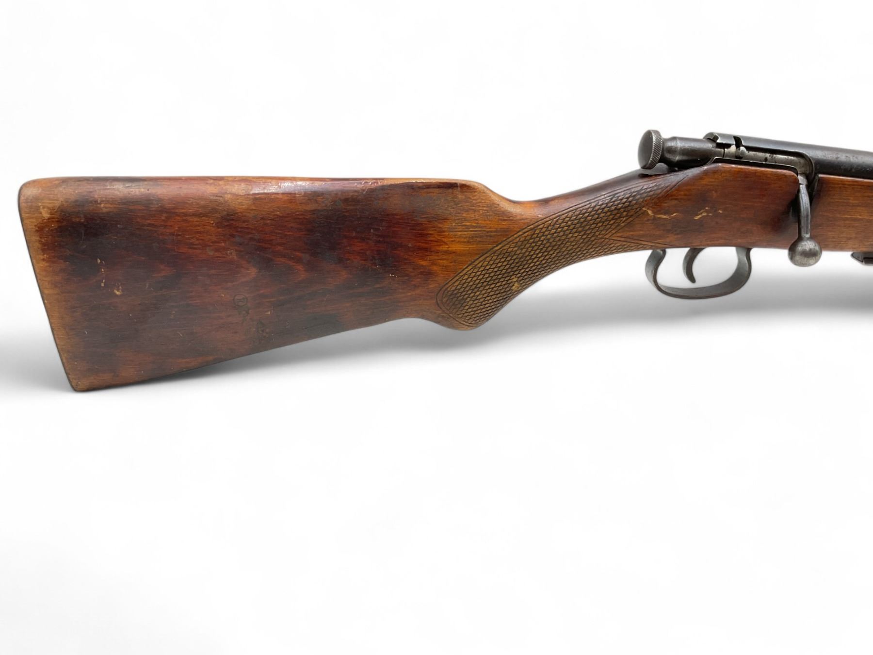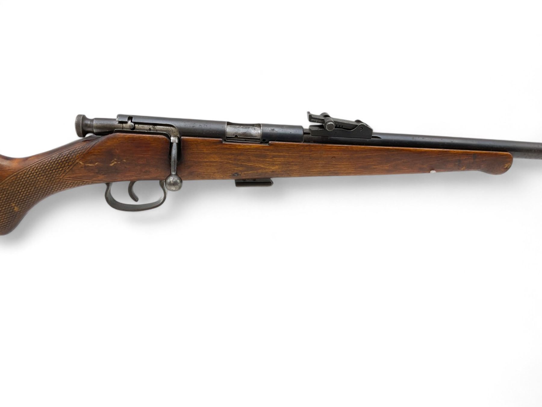 Russian Tula Bolt Action Rifle 22LR 21" Barrel Wood Stock. Magazine appears to be permanently attached to firearm. Fixed front sight. adjustable rear sight. This is a non-restricted firearm.
