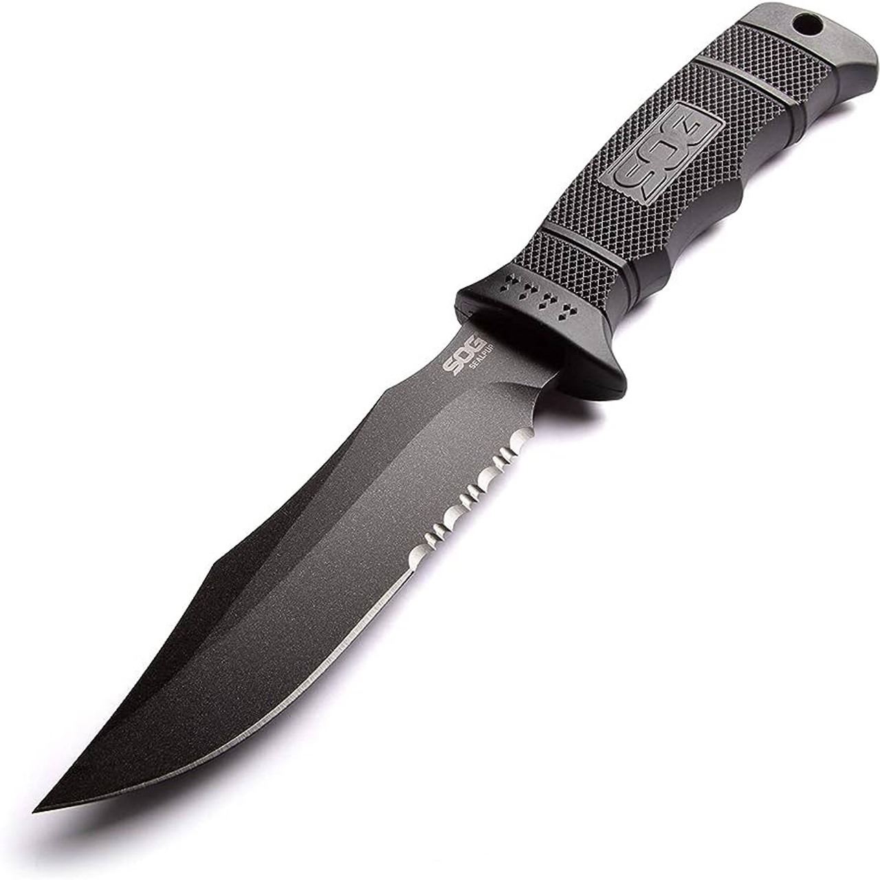 SOG Seal Pup Fixed 4-3/4" Blade Knife, Partially Serrated Black Powdercoat Blade, Nylon Sheath, New