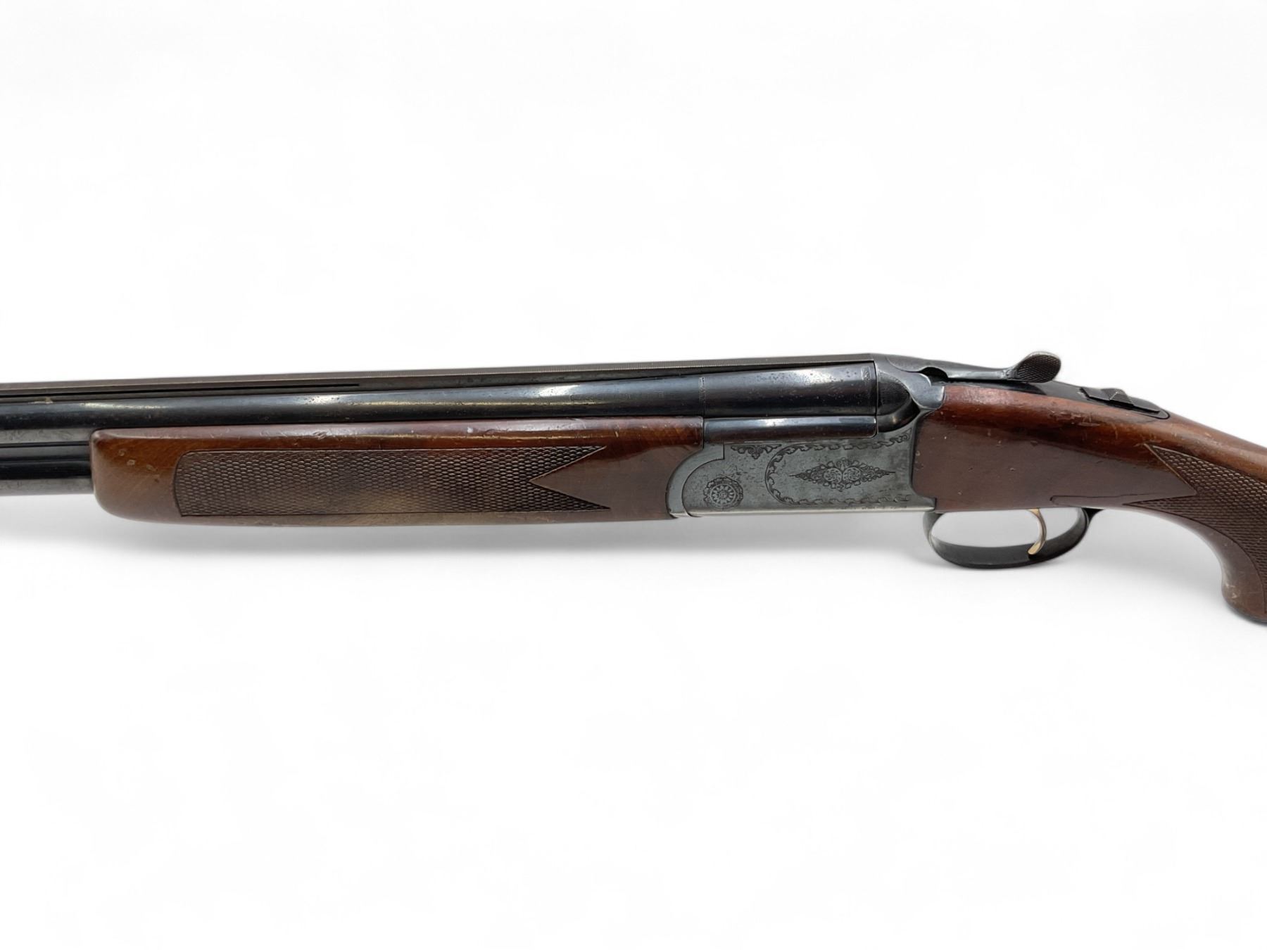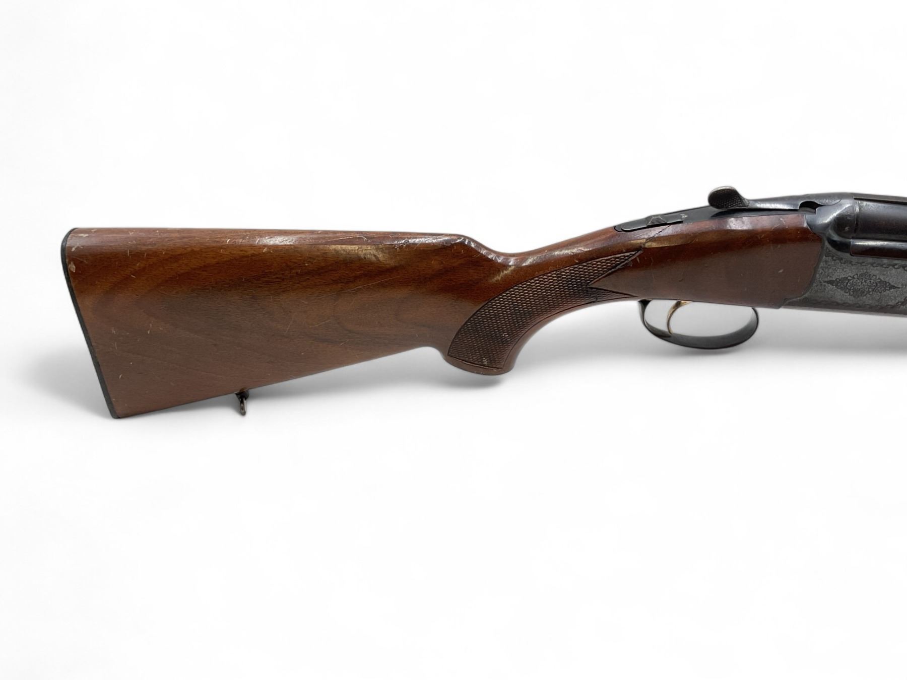 Sabatti Classic Over Under Shotgun 12Ga 28" Barrels Wood Stock. Vent rib with bead sight; fixed chokes. Rear stock cracked by trigger. This is a non-restricted firearm.