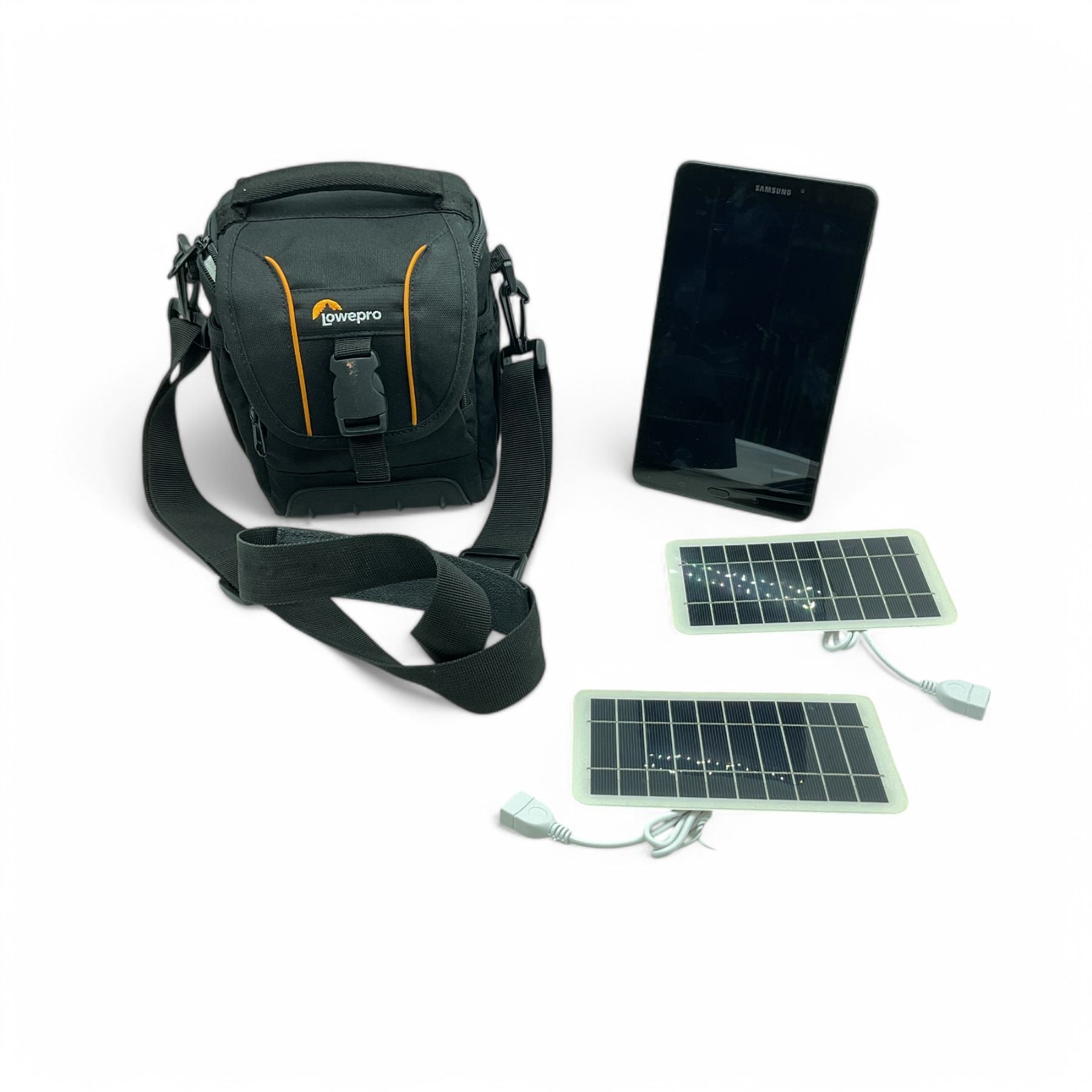 Samsung Galaxy Tablet, No Charging Cable Included, Solar Panels, 5 Volt X 2 and Lowepro Camera Bag