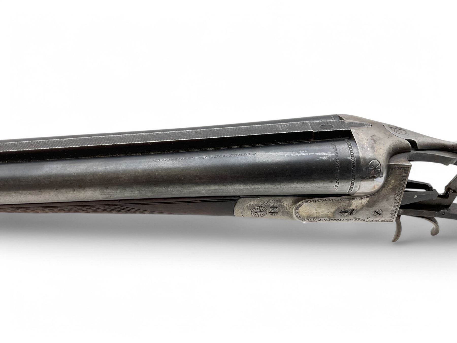 Sauer And Sohn Side By Side Shotgun 12Ga 2.75" Chambers 29" Barrels No Rear Stock. Bead sight; fixed chokes. Double triggers; missing trigger guard assembly and complete rear stock. May be missing other parts. This is a non-restricted firearm.