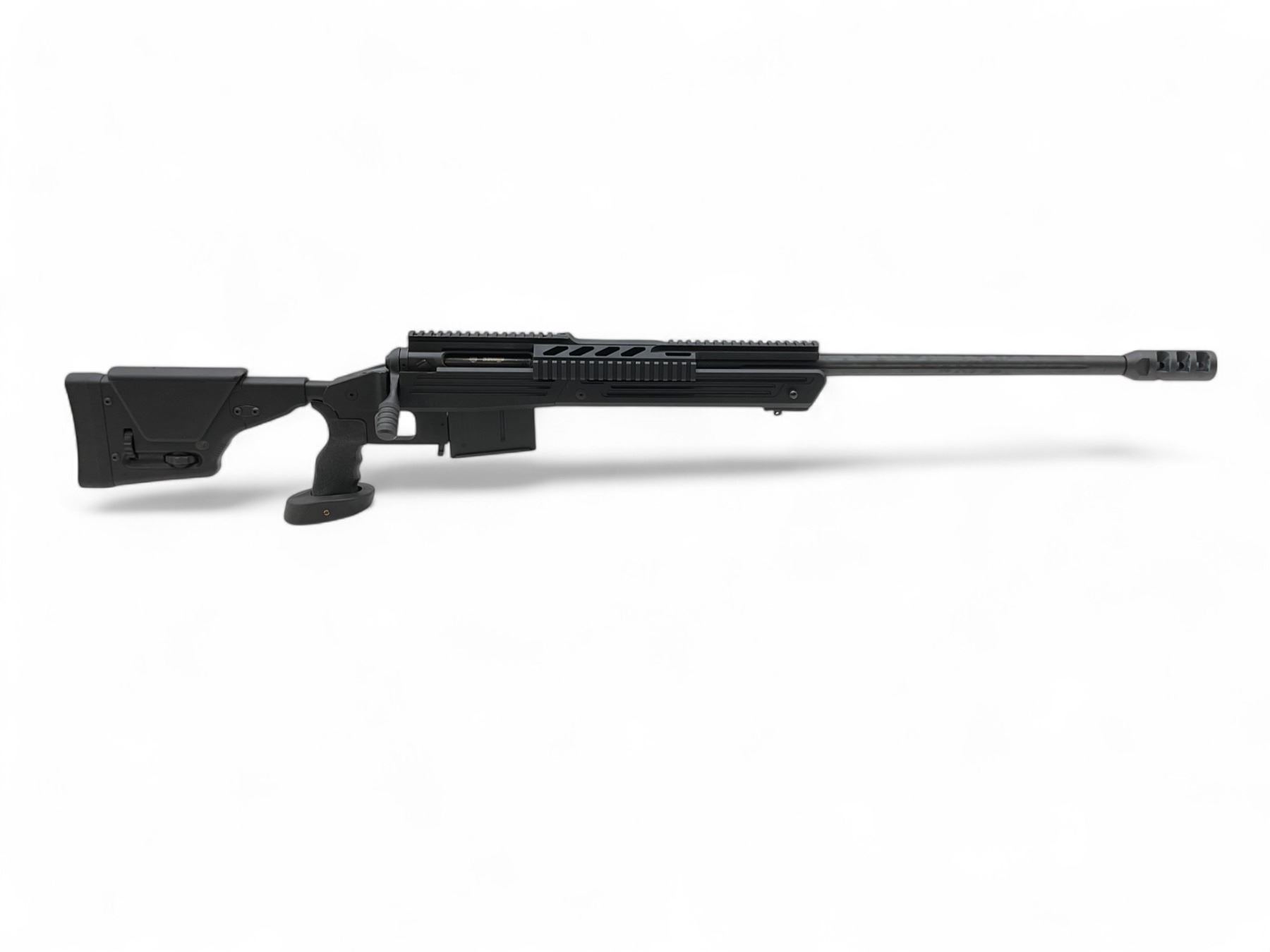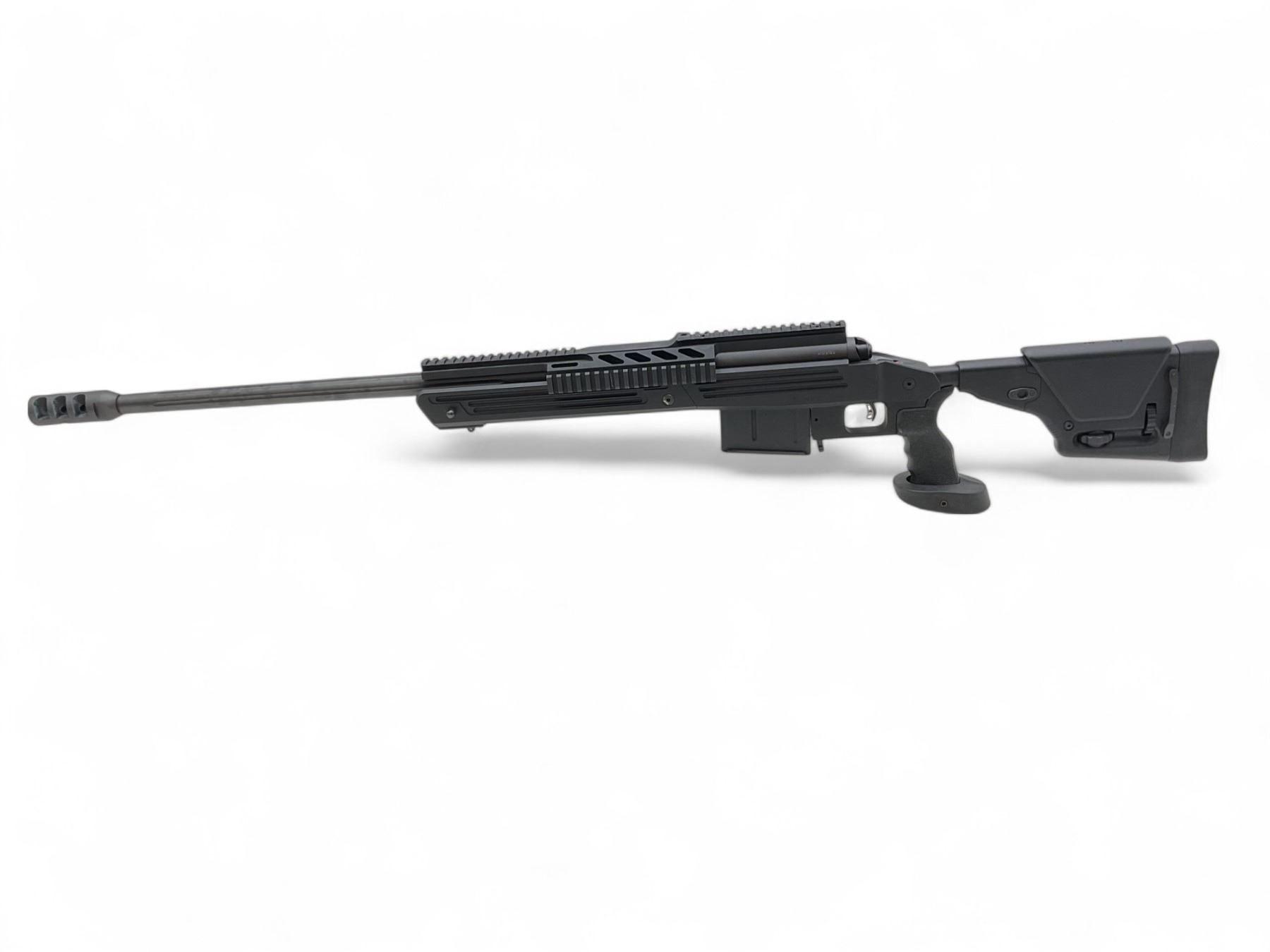 Savage 110 BA Bolt Action Rifle 300 Win Mag 26" Threaded Barrel Chassis With Adjustable Stock. Comes with one removable magazine. Threaded barrel has brake installed; over size bolt knob. Pistol grip with base; cheek riser is adjustable as is rear butt pad. Receiver drilled and tapped with one piece rail and handguard included. Adjustable trigger. This is a non-restricted firearm.