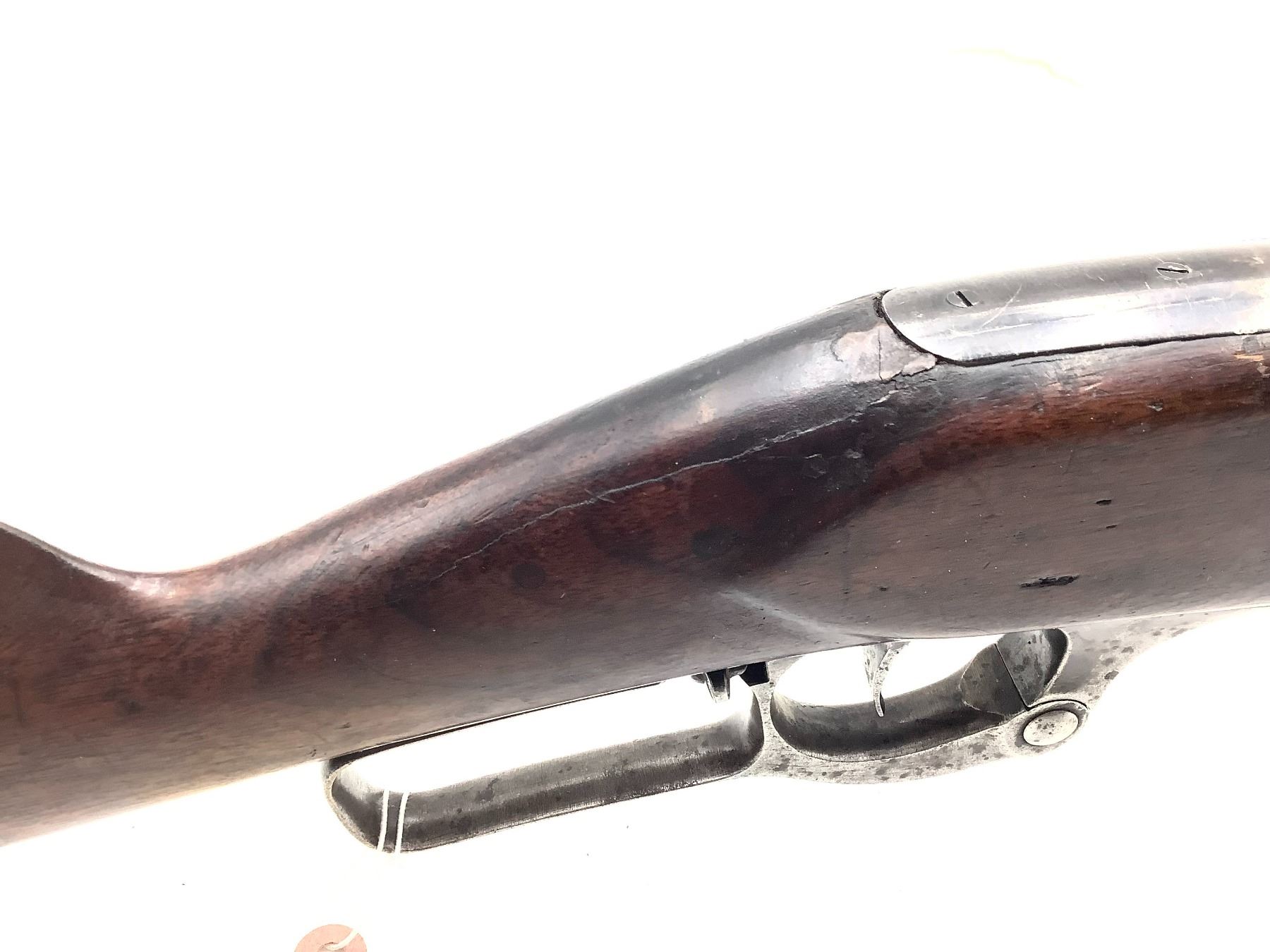 Savage 1899 Lever Action Rifle 303 Savage 25.5" Octagon/Round Barrel Wood Stock. Steel butt plate, open sights. Rear sight elevator missing. Stock cracked and metal finish is worn. Serial number 37.934. This is a non-restricted firearm.