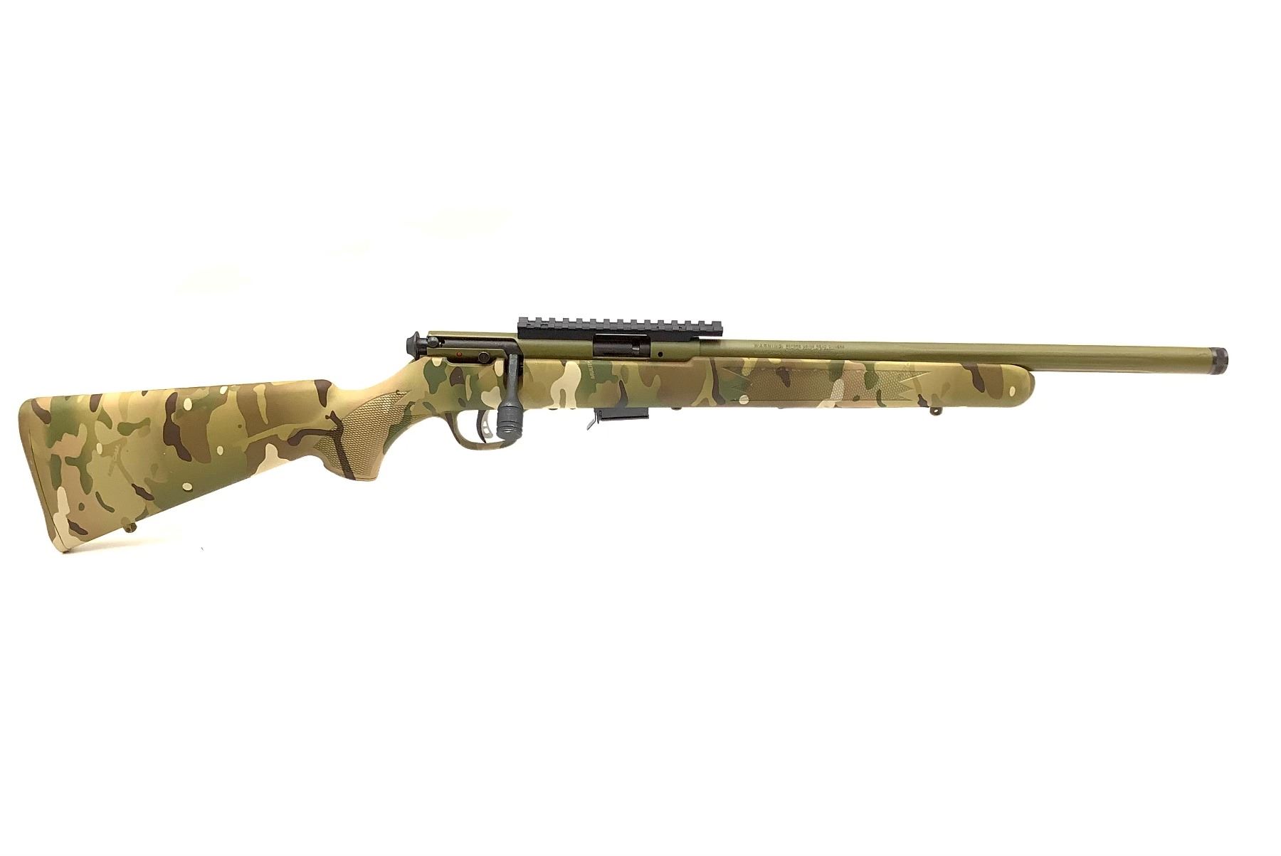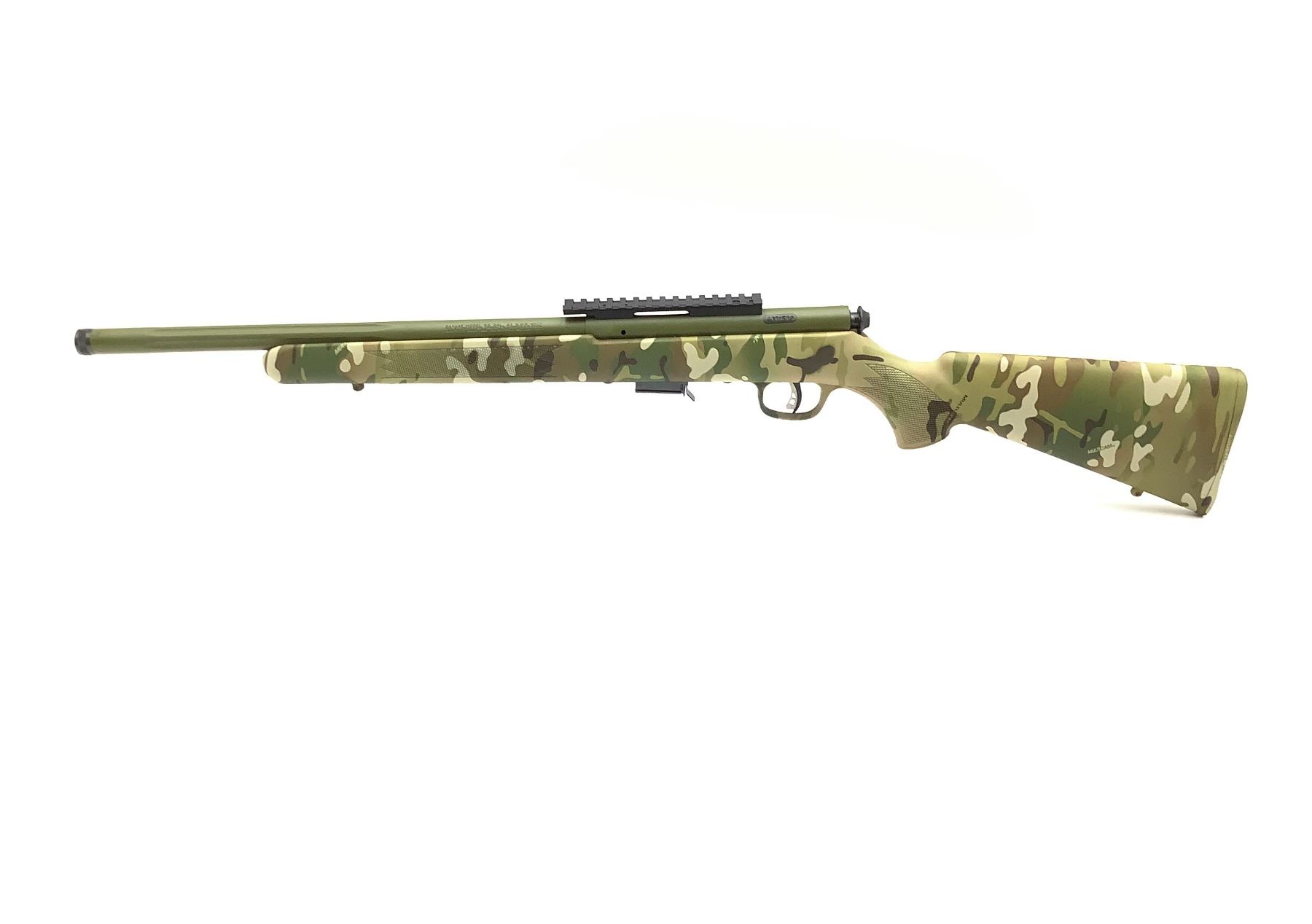 Savage 93 FV-SR 22 WMR Bolt Action Rifle 16.5" Barrel Bazooka Green Synthetic Stock, New. Threaded barre, rail mounted on receiver. Includes one detachable magazine. This is a non-restricted firearm.