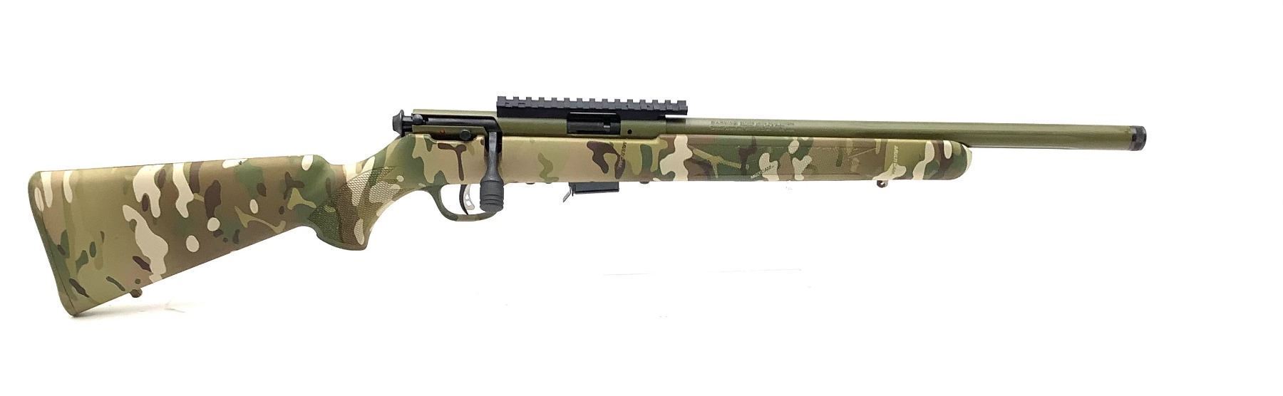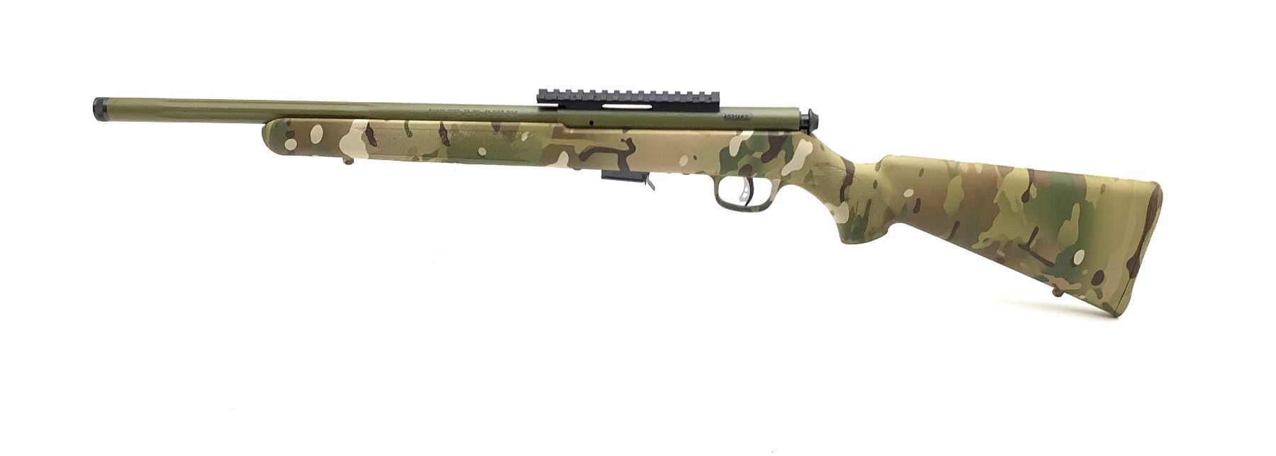 Savage 93 FV-SR 22 WMR Bolt Action Rifle 16.5" Threaded Barrel Bazooka Green Synthetic Stock, New. Adjustable trigger, detachable magazine. Comes with rail mounted on receiver. This is a non-restricted firearm.