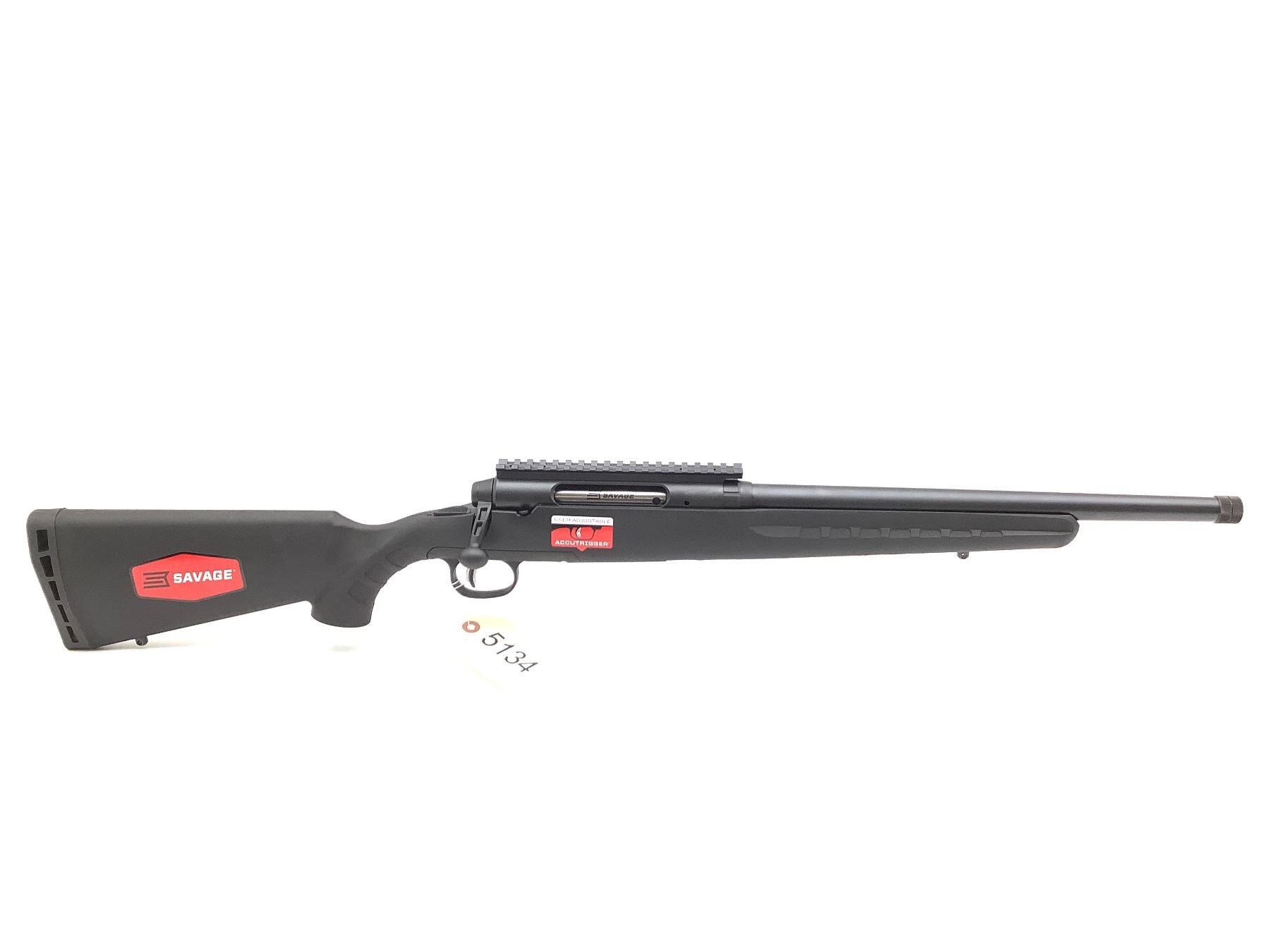 Savage Axis Bolt Action Rifle 300 BLK 16" Threaded Barrel Synthetic Stock. Adjustable trigger, detachable magazine. Comes with rubber butt pad and sling mounts. Receiver drilled and tapped with rail installed. This is a non-restricted firearm.