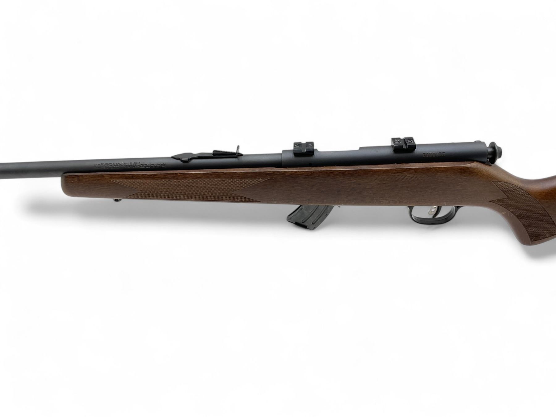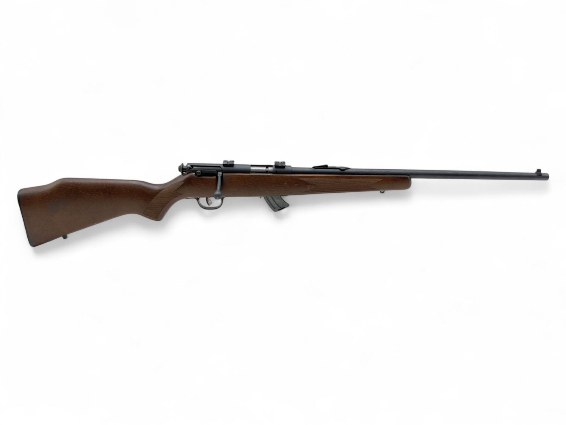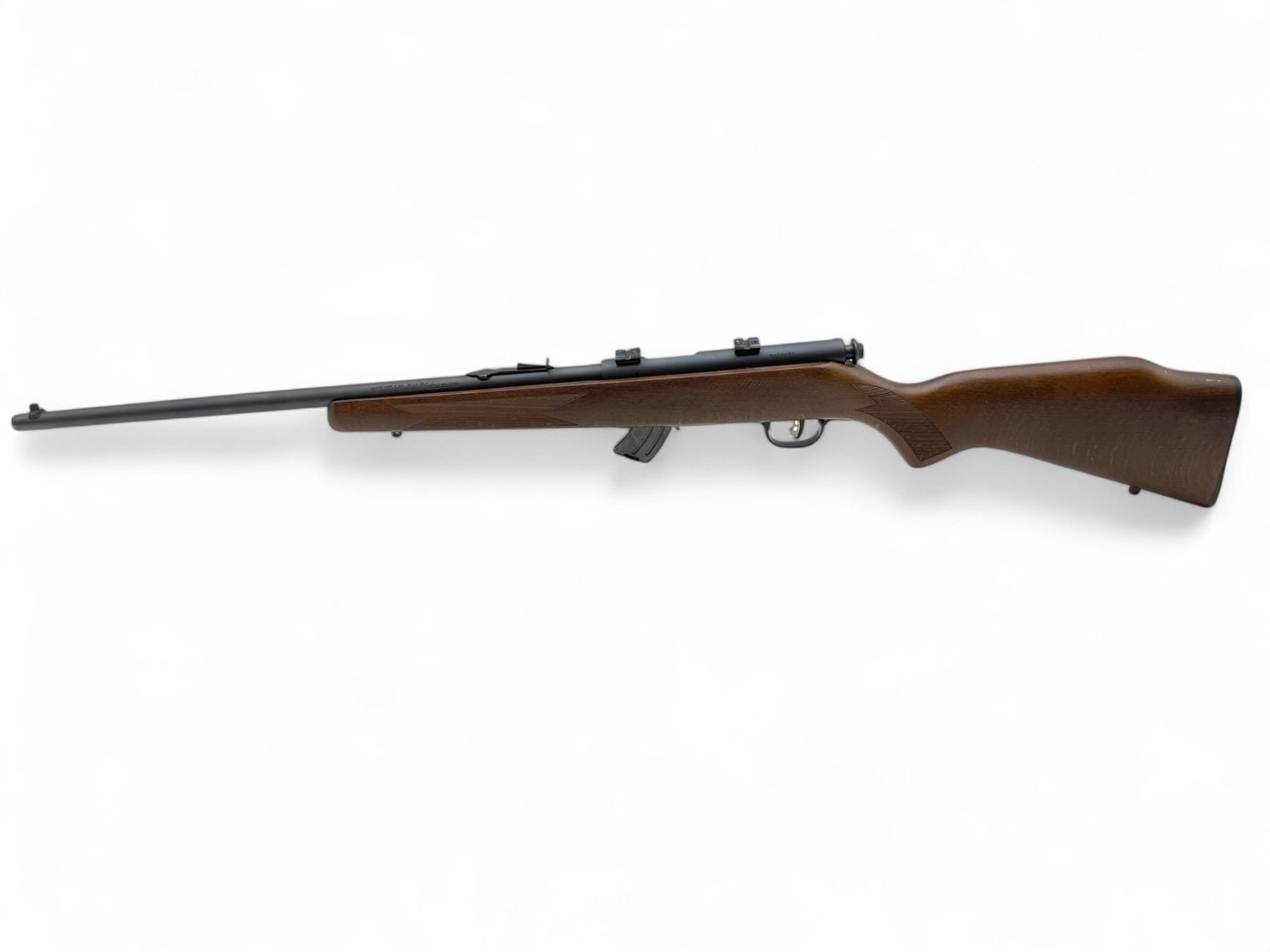 Savage Mark II Bolt Action Rifle 22LR 21" Barrel Wood Stock. Comes with one detachable magazine. Fixed front sight, adjustable rear sight. Adjustable trigger. This is a non-restricted firearm.