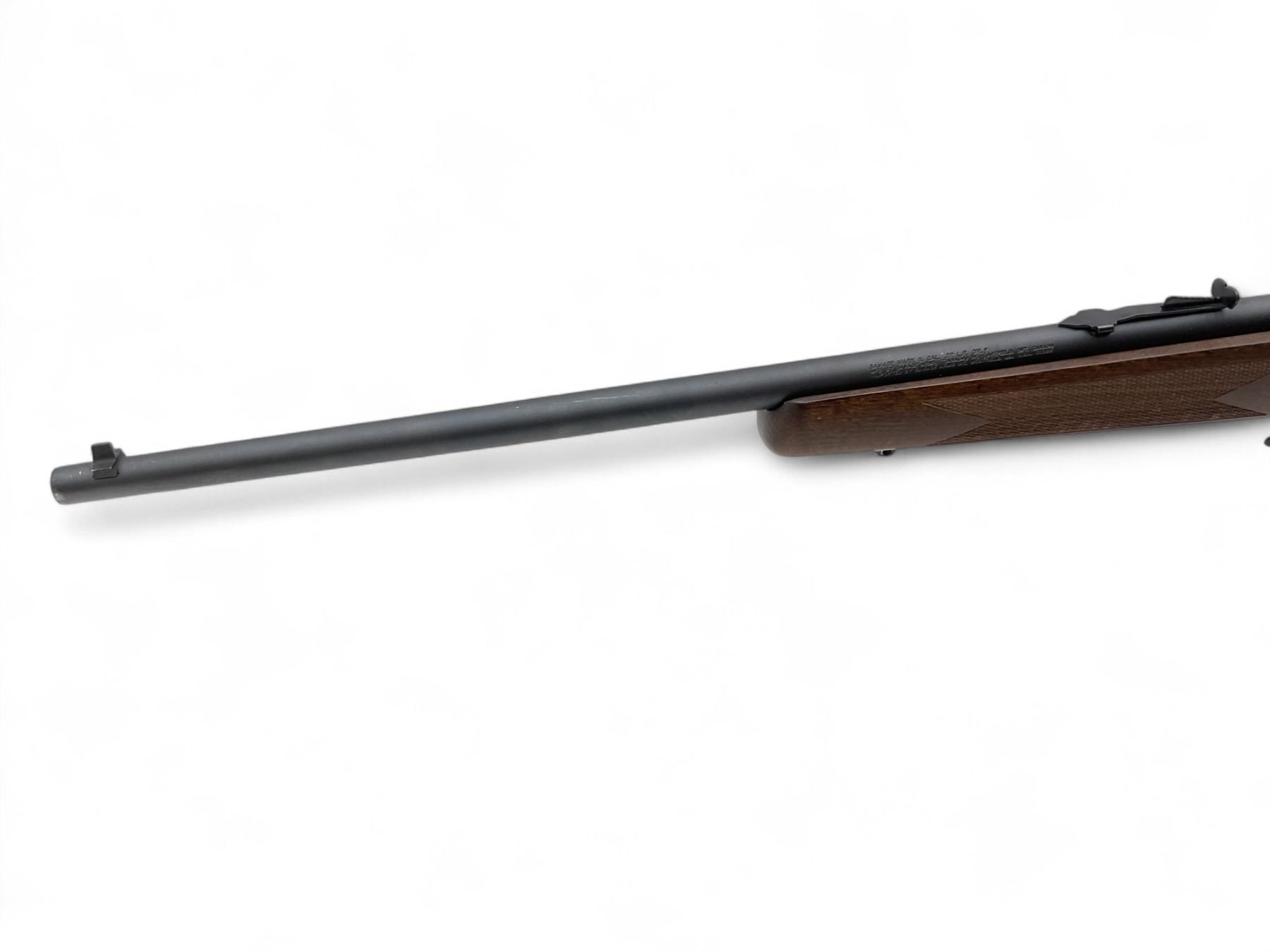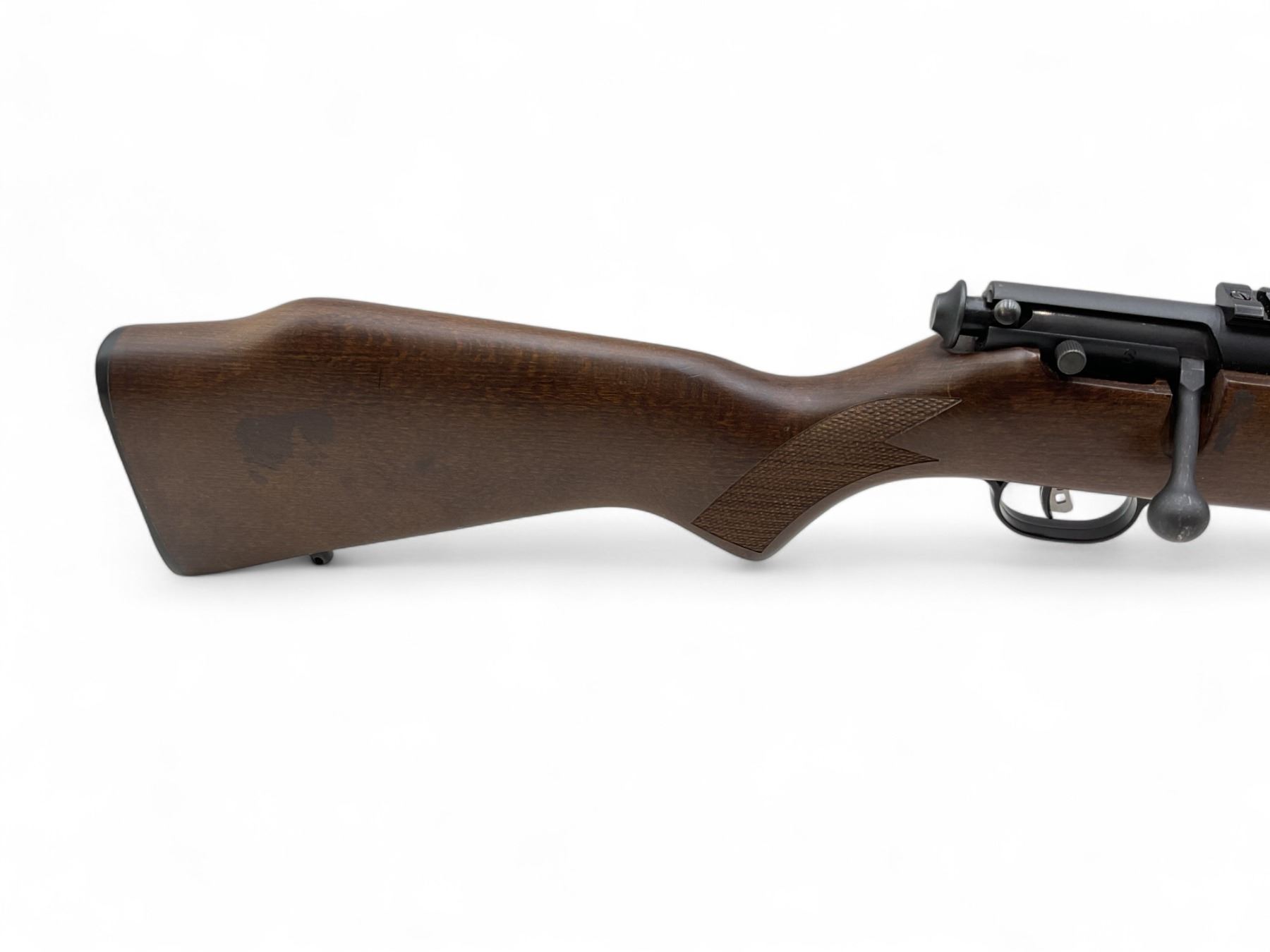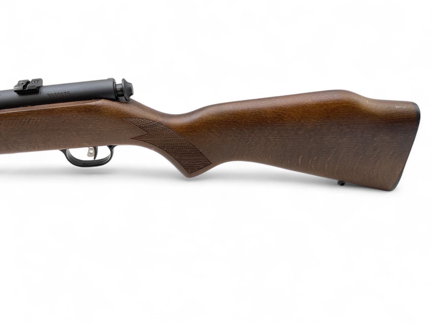 Savage Mark II Bolt Action Rifle 22LR 21" Barrel Wood Stock. Comes with one detachable magazine. Fixed front sight, adjustable rear sight. Adjustable trigger. This is a non-restricted firearm.