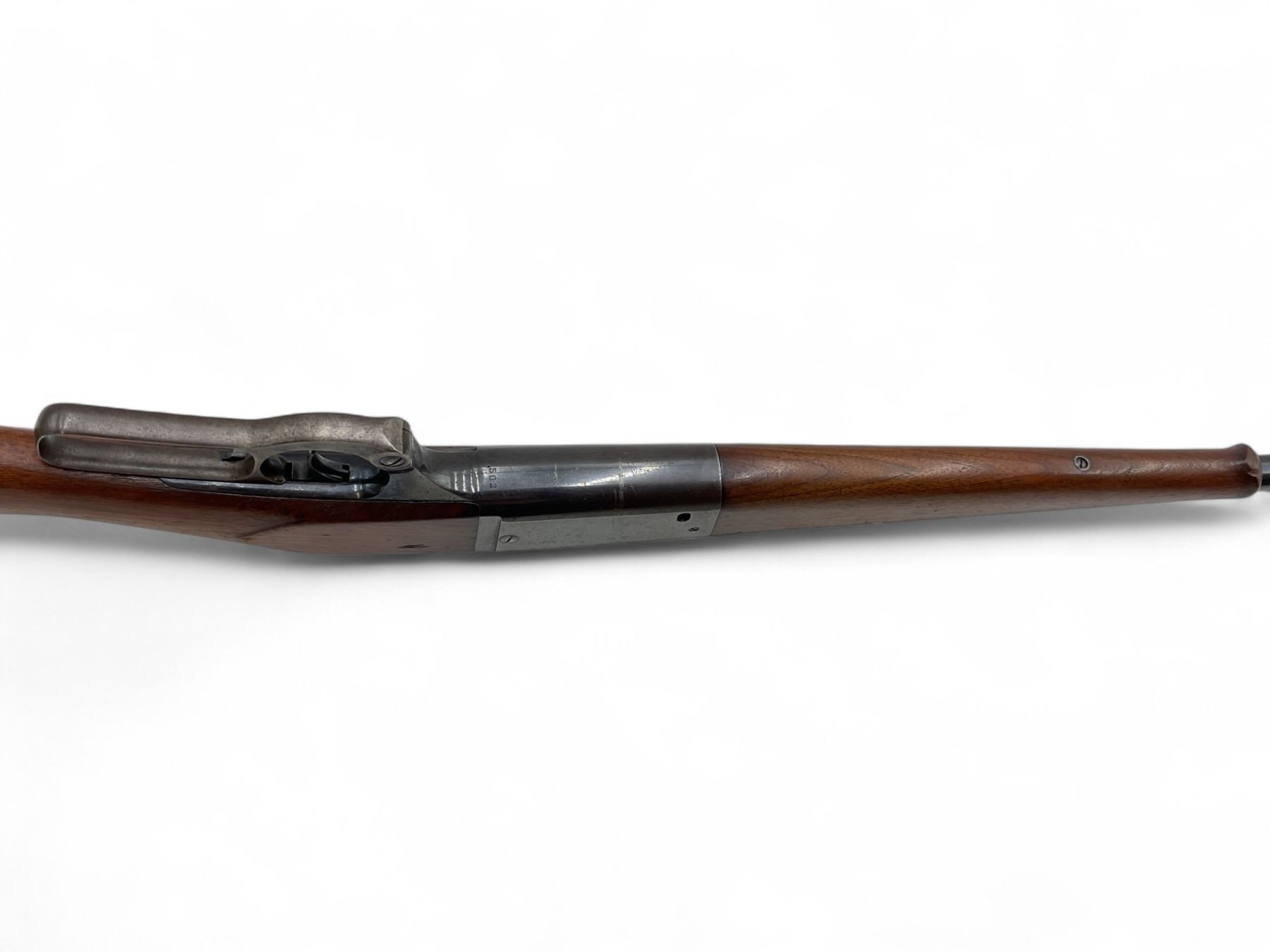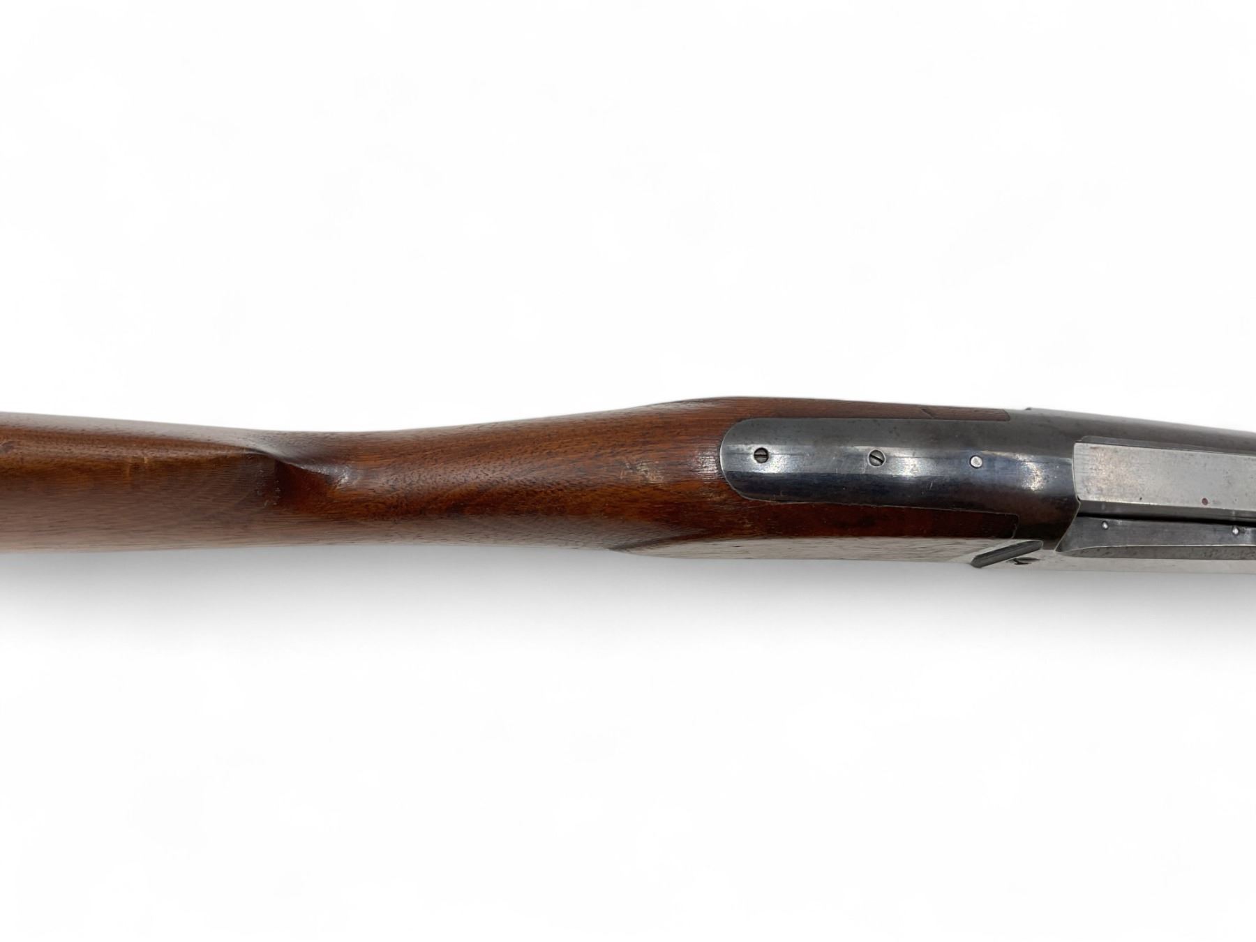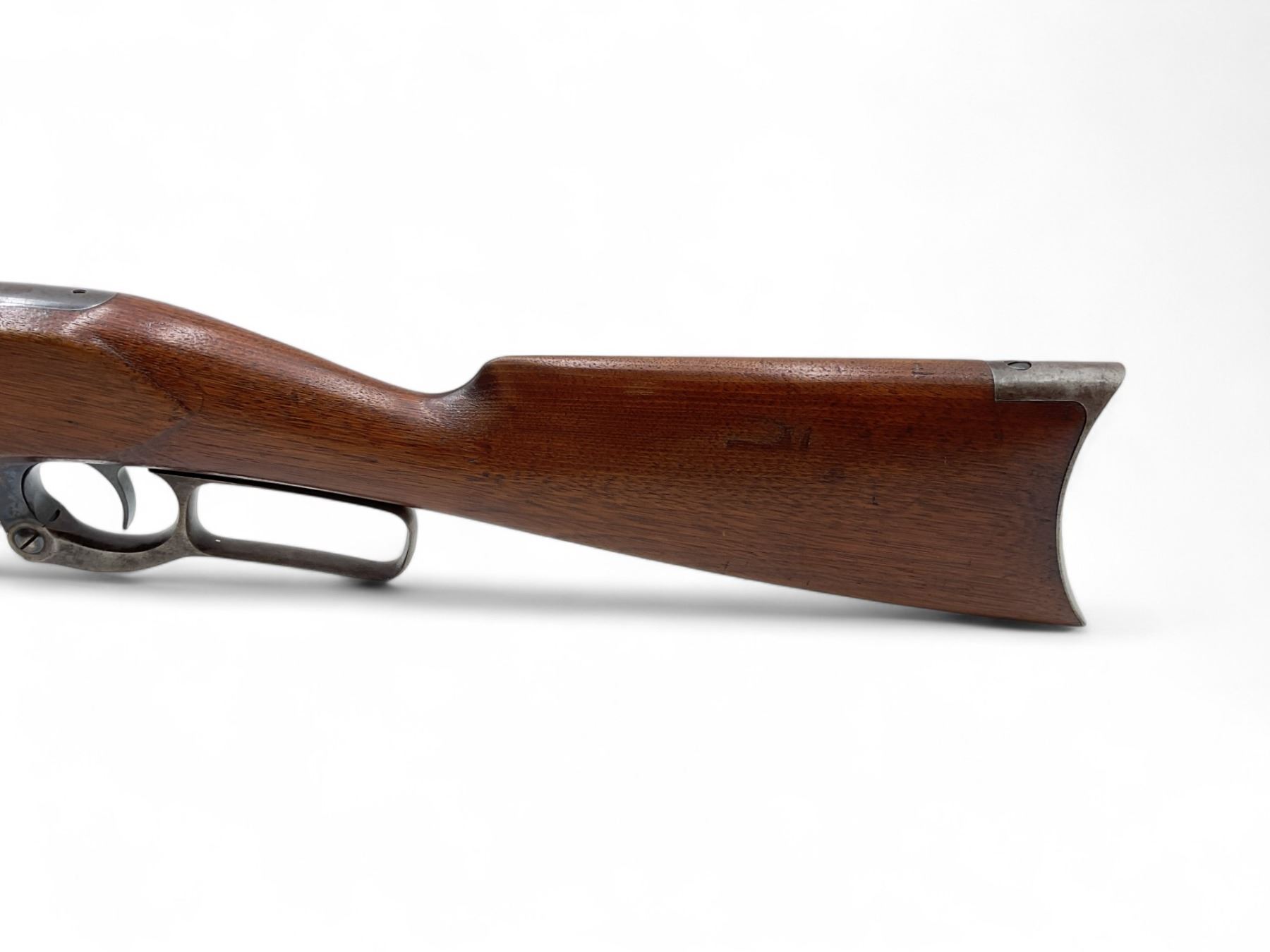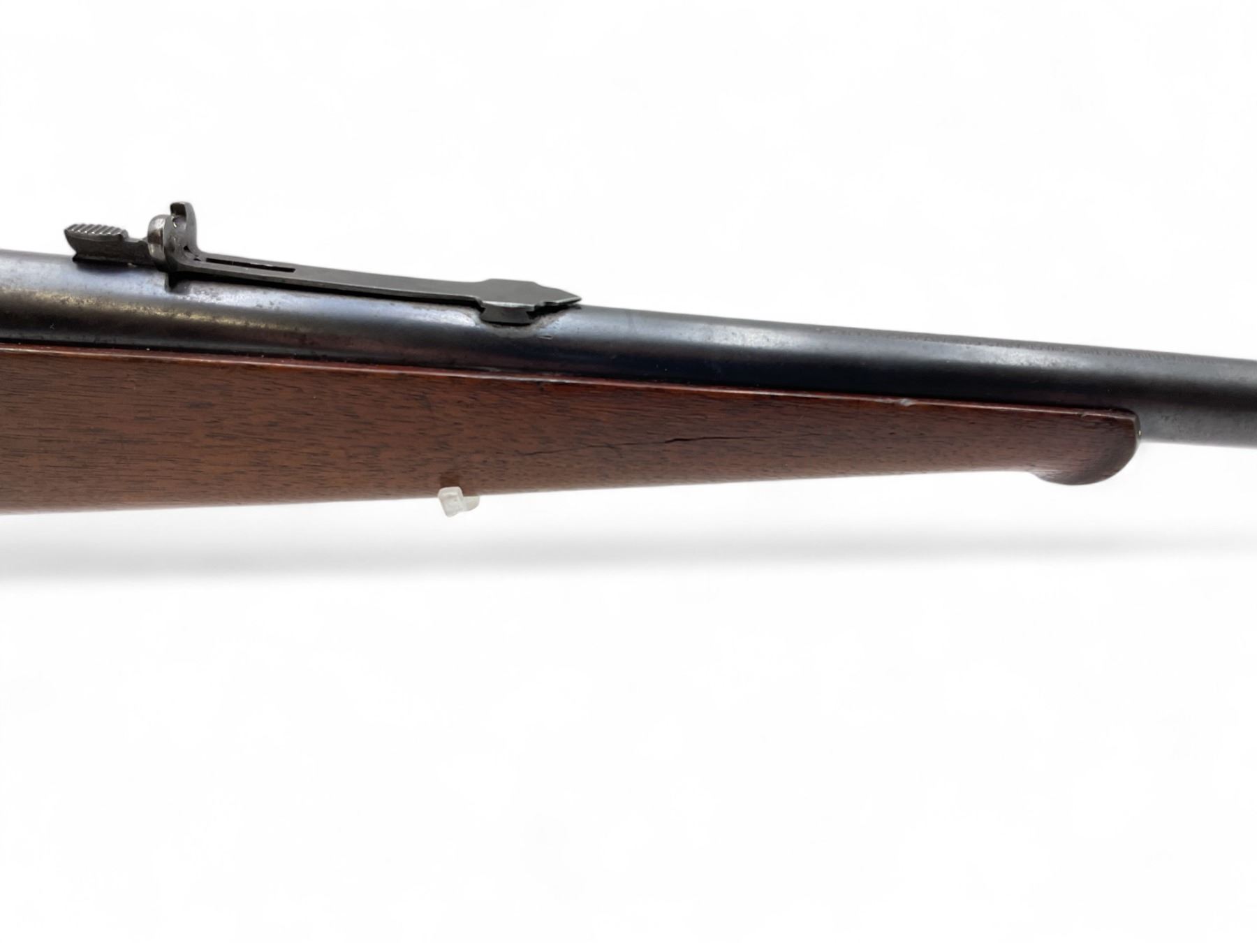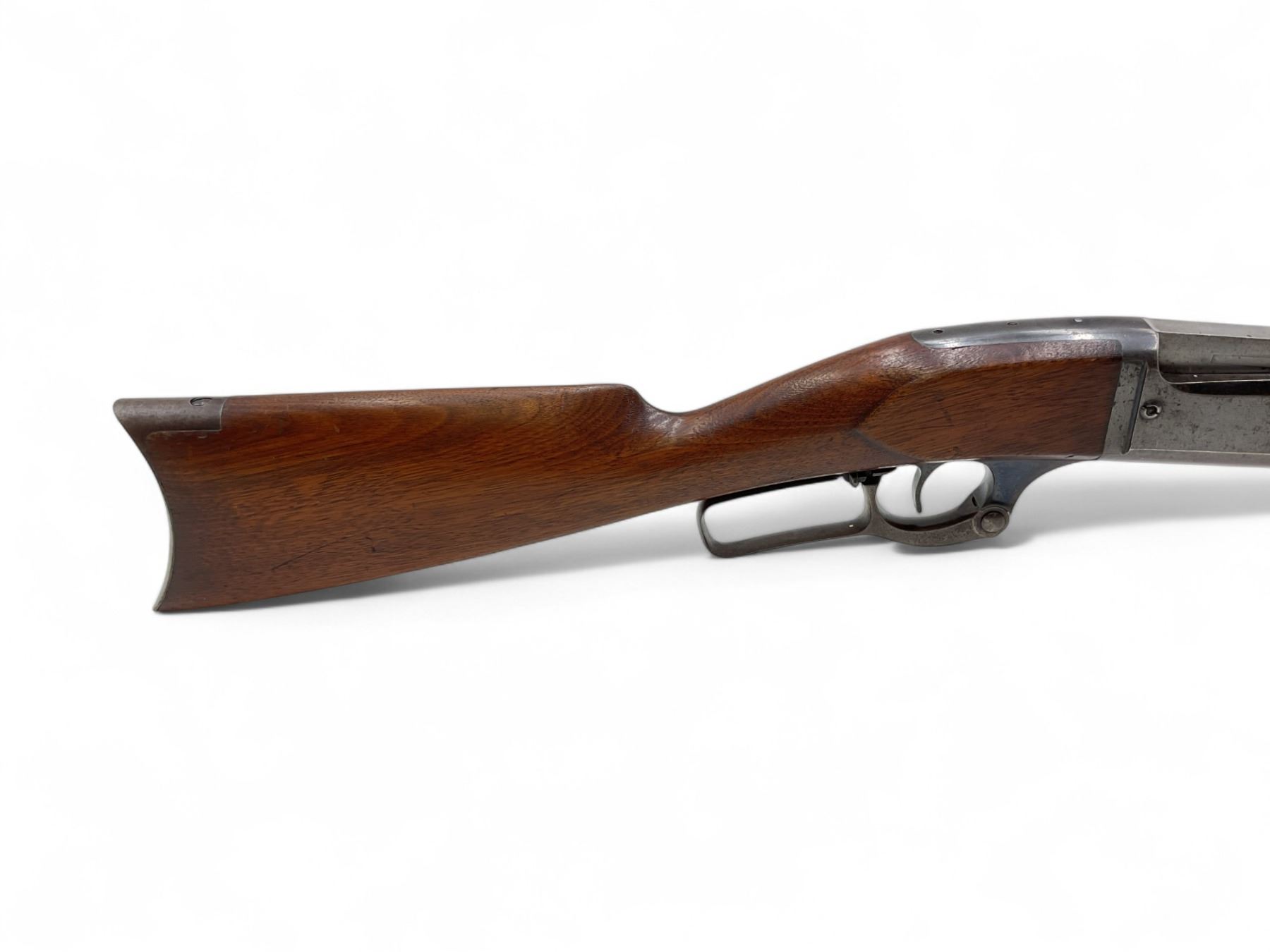 Savage Model 1899 Lever Action Rifle .303 Savage 26" Barrel Wood Stock. Front sight appears to have been replaced; adjustable rear sight. Internal magazine with counter; loaded chamber indicator. Schnabel forend has small crack. Serial number 92502. This is a non-restricted firearm.
