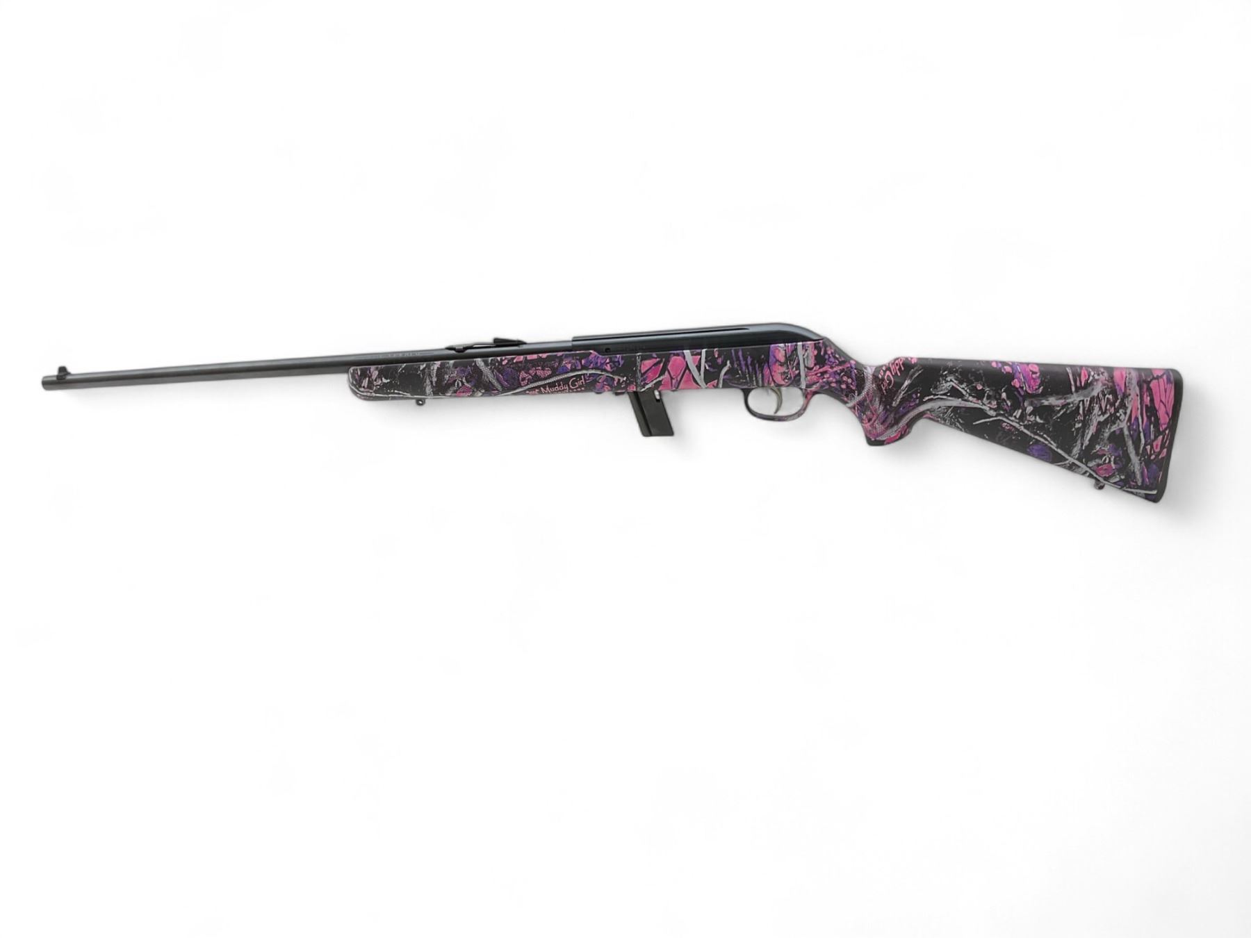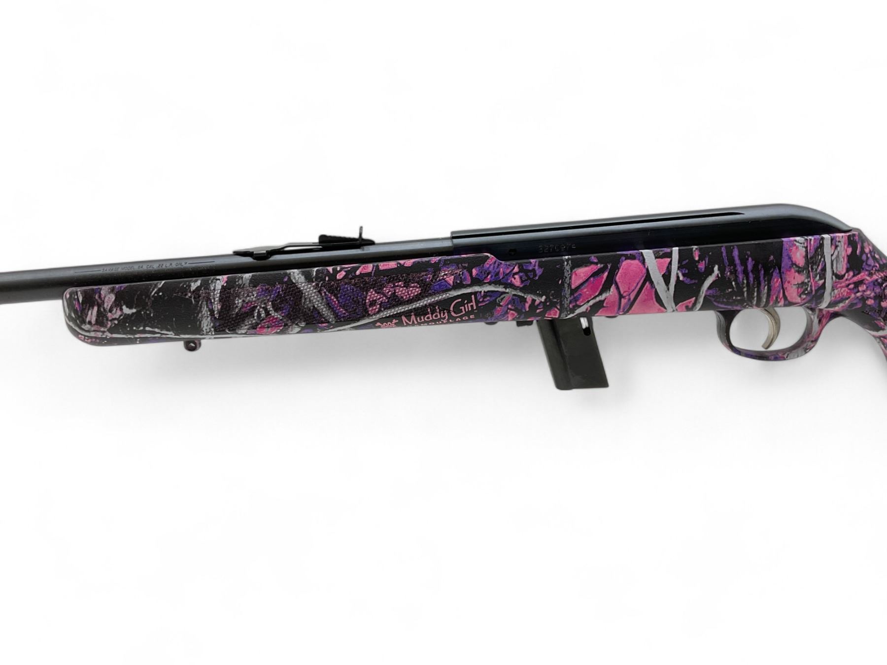 Savage Model 64 Semi Auto Rifle 22LR 21" barrel Muddy Girl Camo Stock. Comes with one detachable magazine. Fixed front sight, adjustable rear sight. This is a non-restricted firearm.