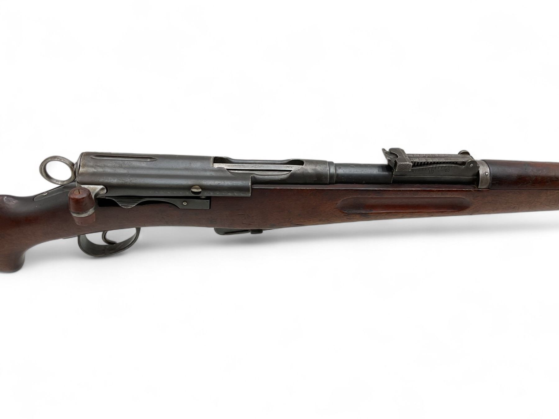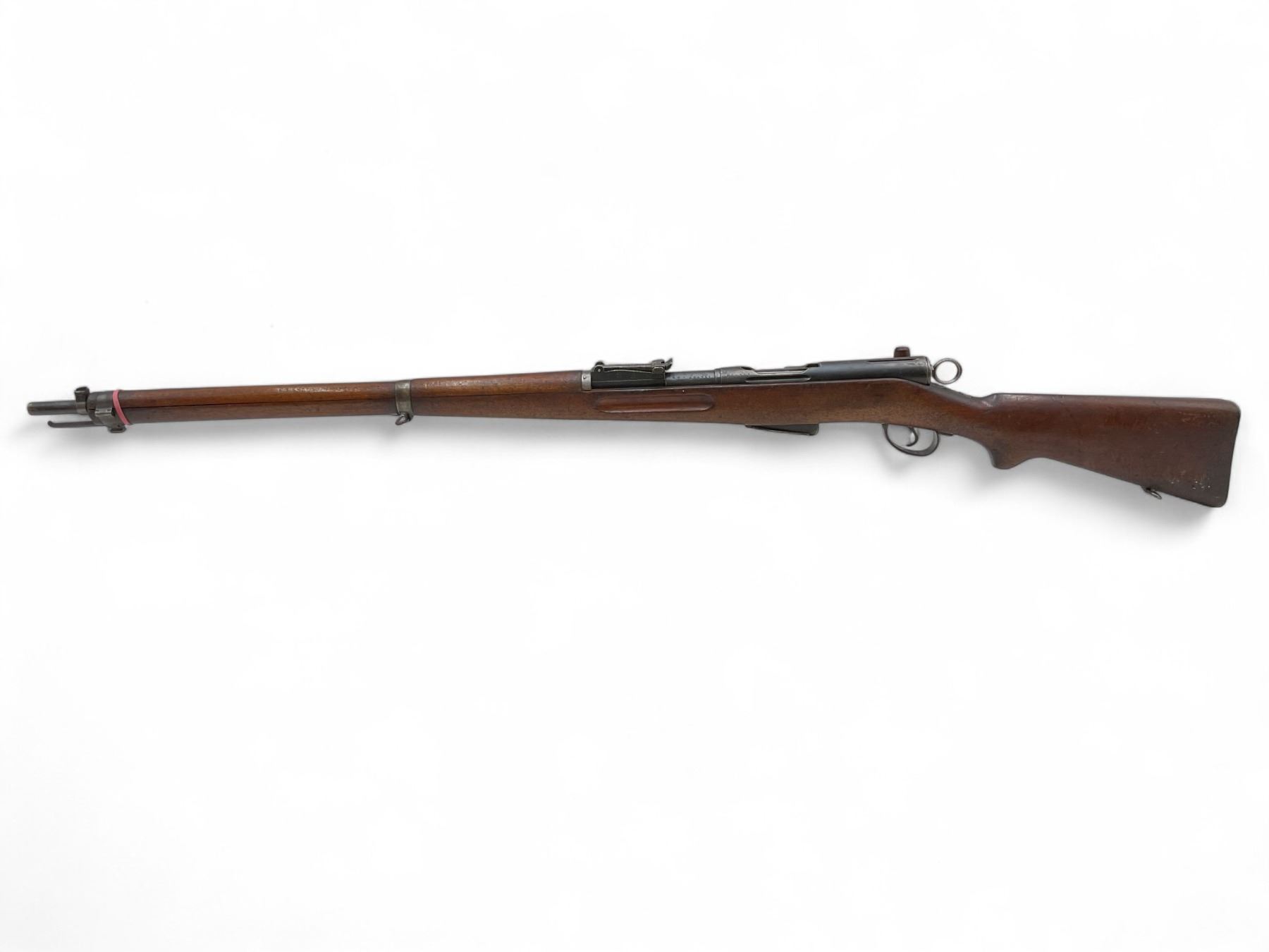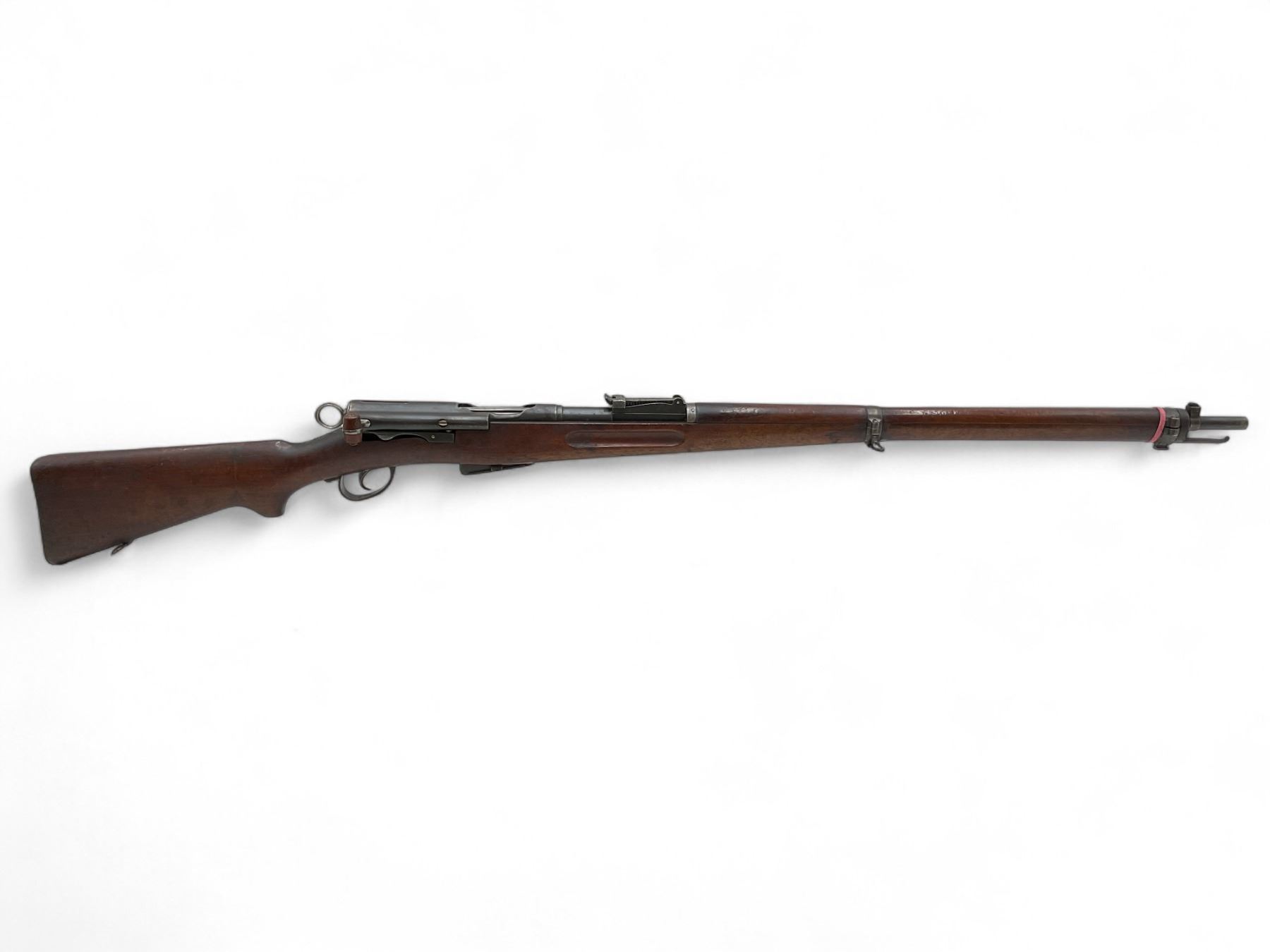 Schmidt Rubin 1911 Straight Pull Rifle 7.5 Swiss 31" Barrel Wood Stock. Comes with one detachable magazine. Fixed front sight, adjustable rear sight. Serial number 424351. This is a non-restricted firearm.