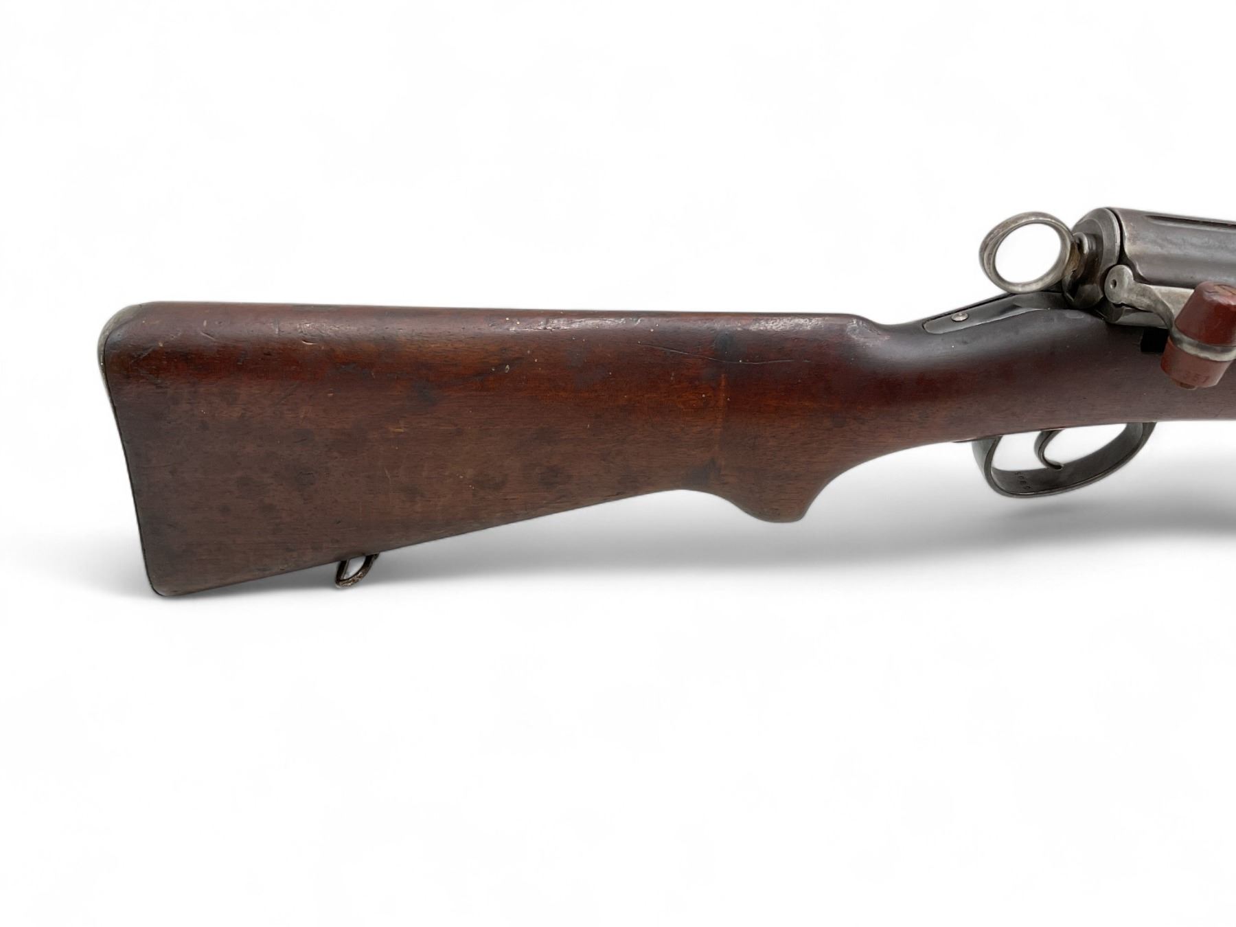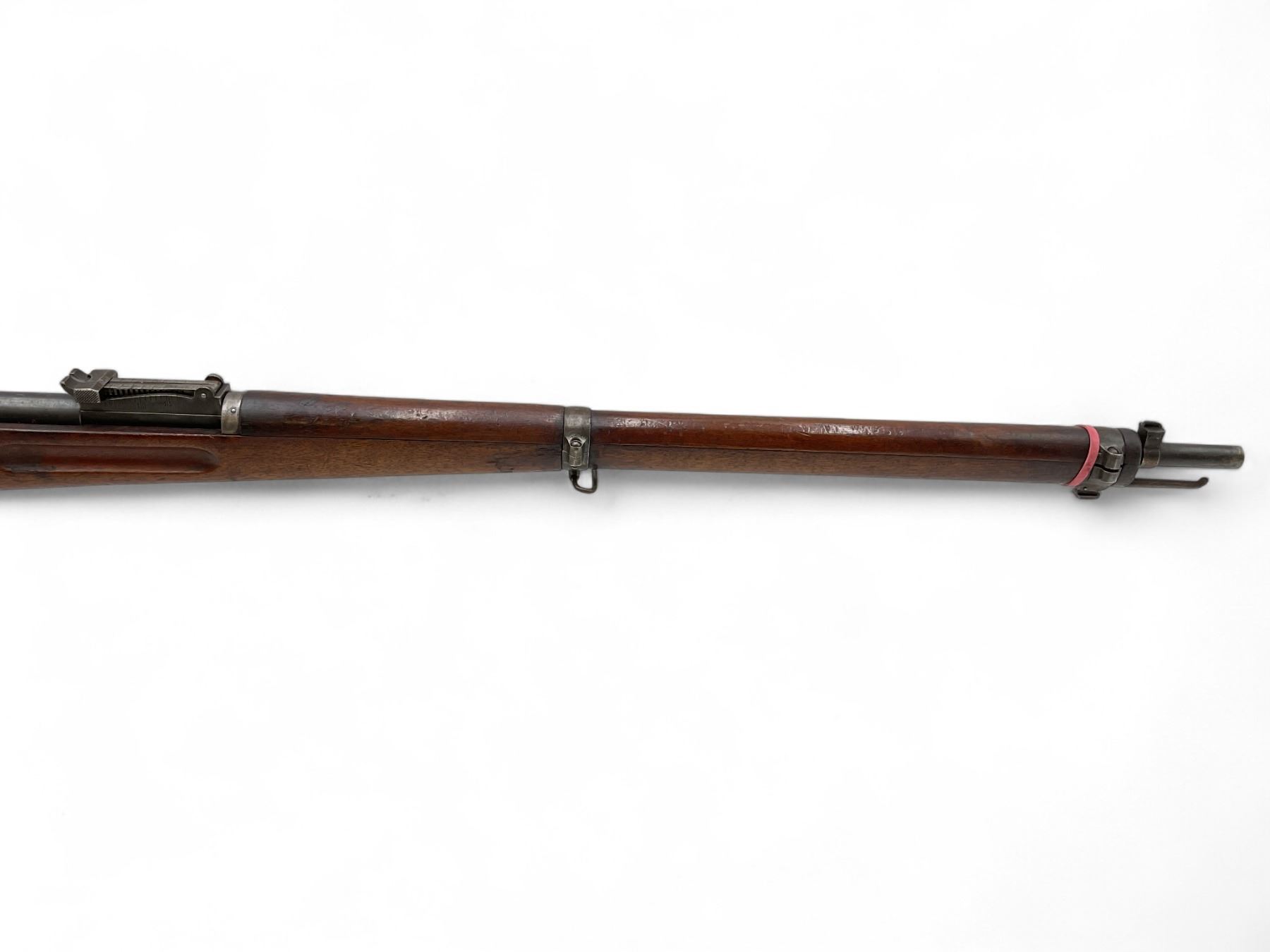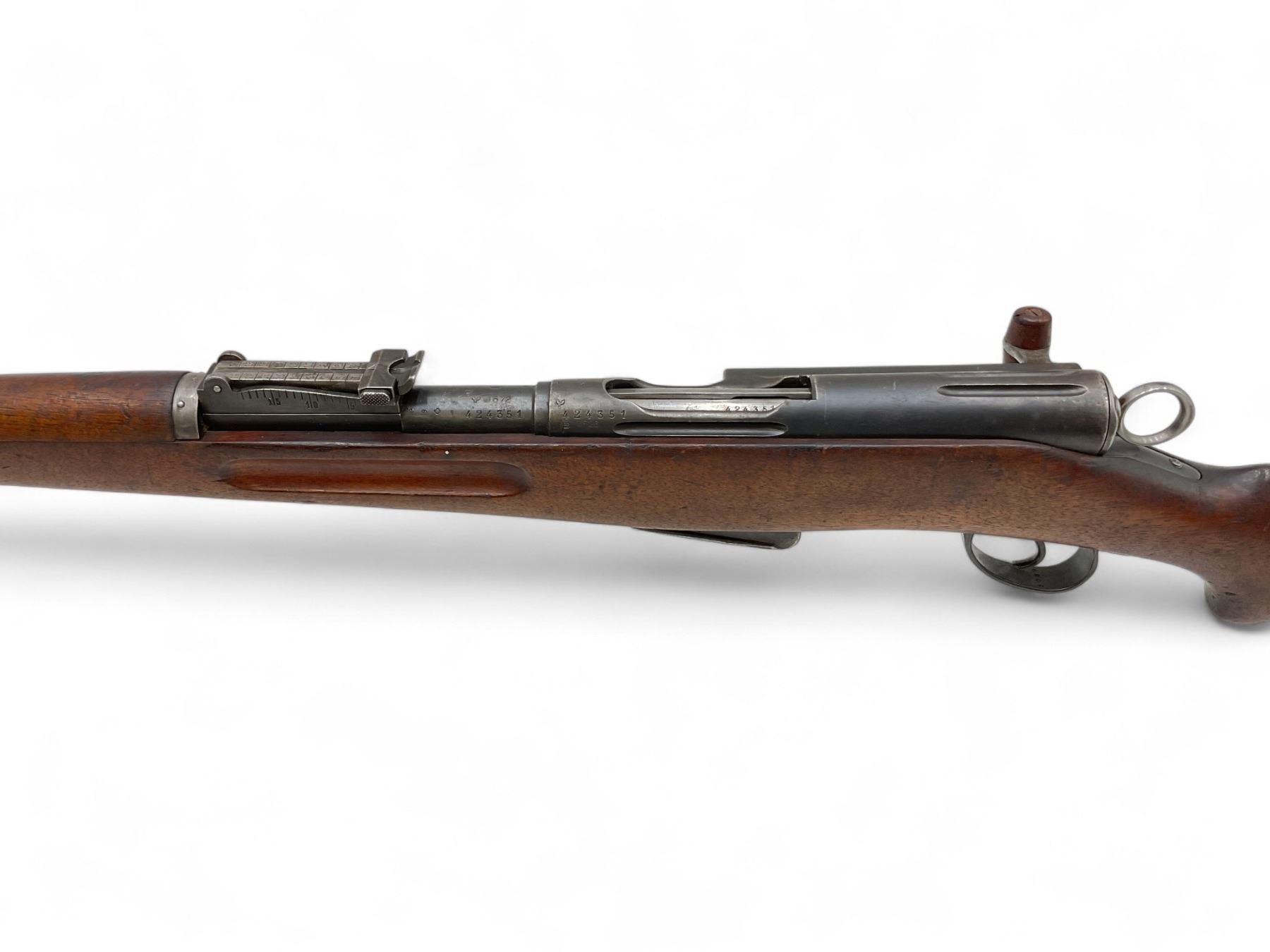 Schmidt Rubin 1911 Straight Pull Rifle 7.5 Swiss 31" Barrel Wood Stock. Comes with one detachable magazine. Fixed front sight, adjustable rear sight. Serial number 424351. This is a non-restricted firearm.