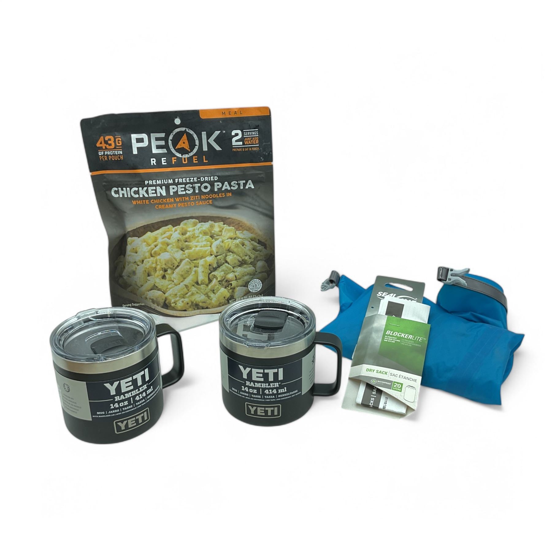 Seal Line Dry Bag, Chicken Pesto Pasta Freezedried Meal for 2, Yeti Rambler Tumbler, 14 Oz X 2