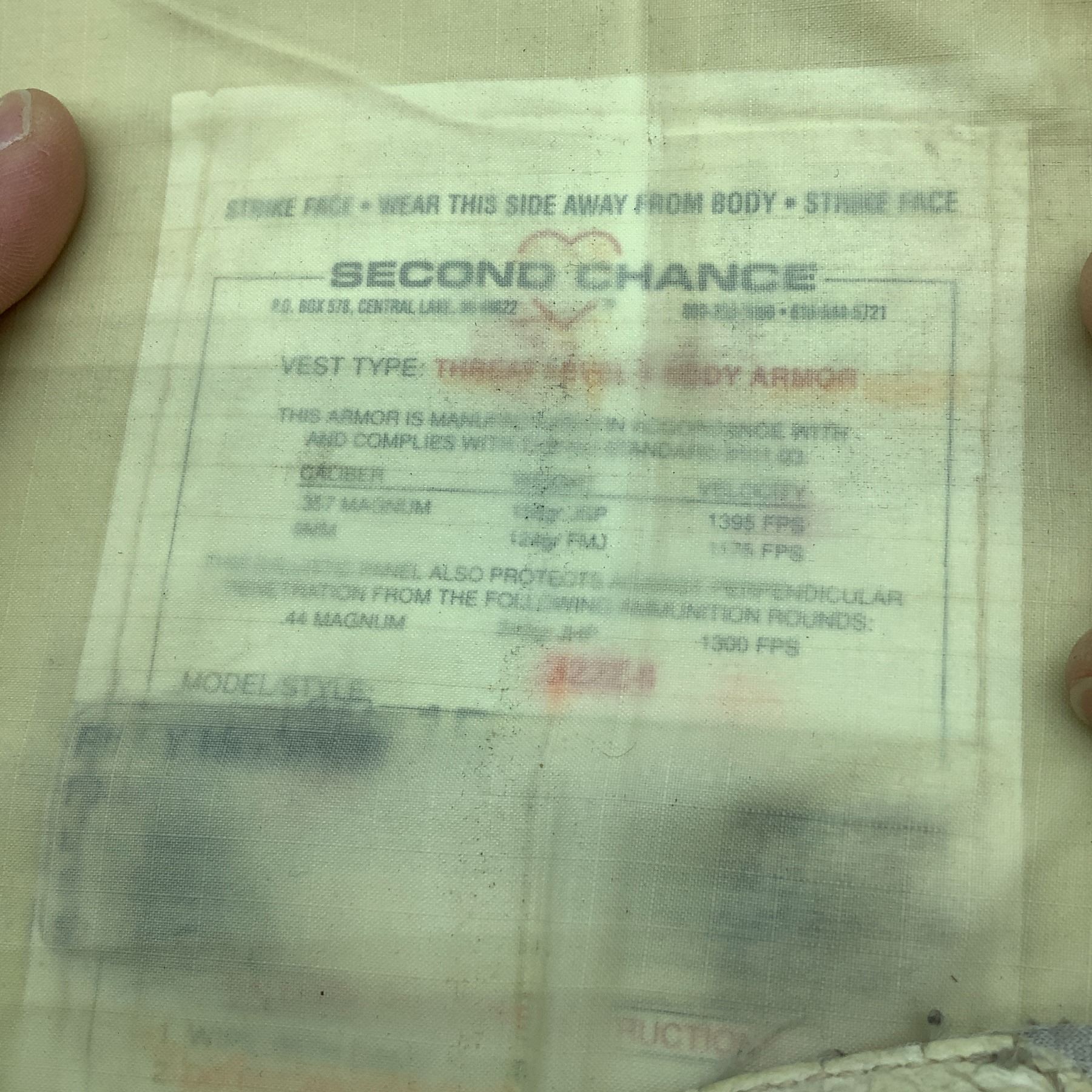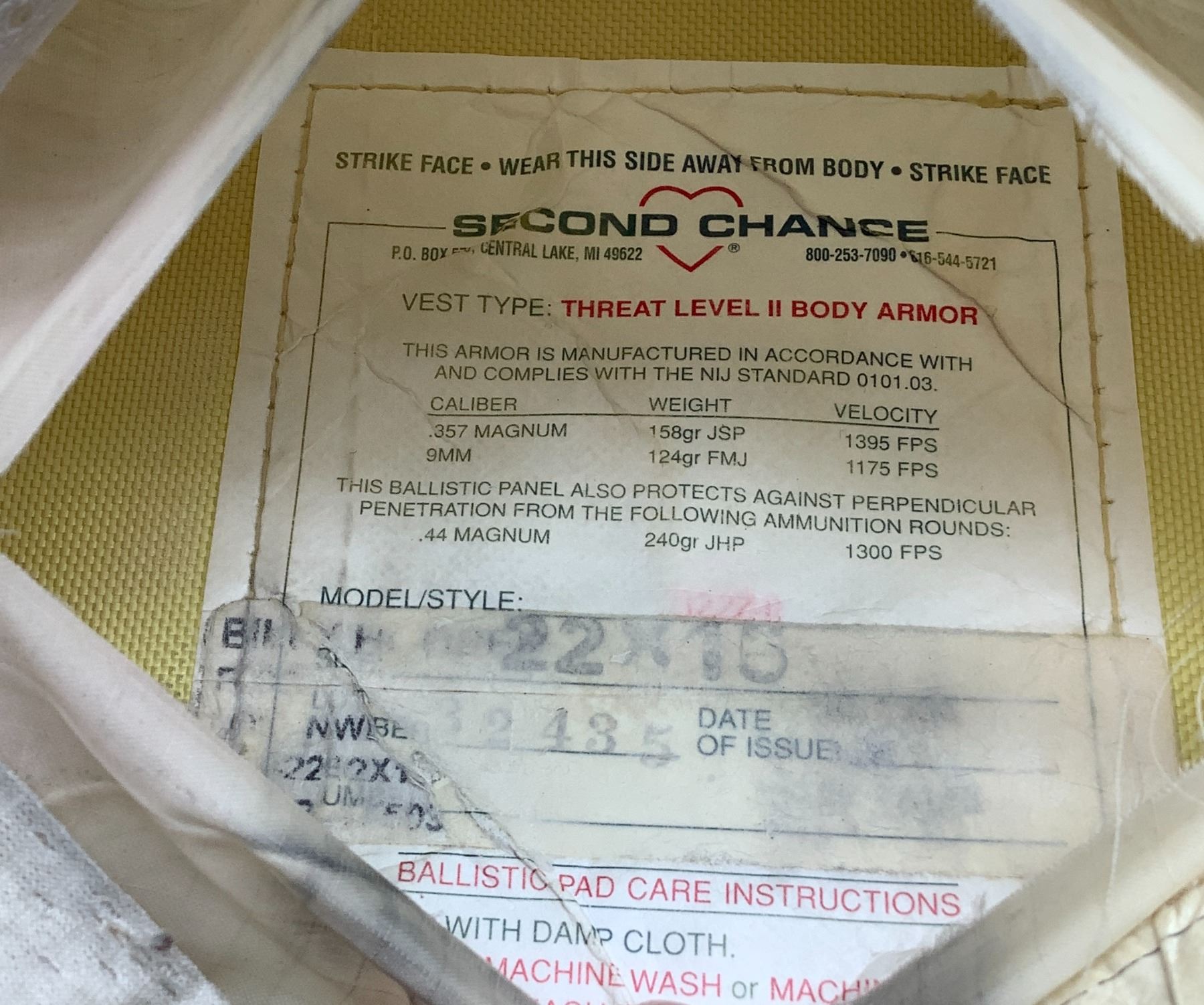 Second Chance Ballistic Vest Size 12" X 15" with Level II Plates